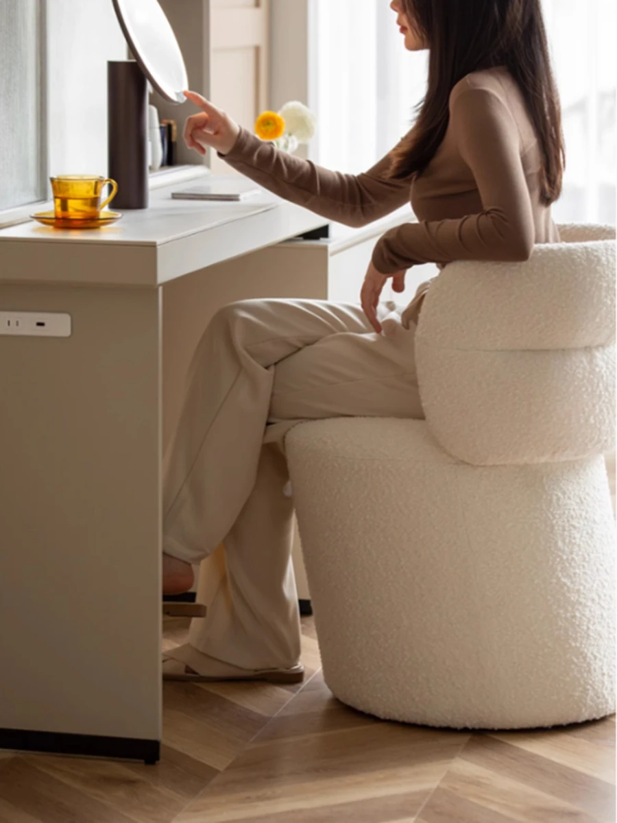 デザイナーアートサムグーストール メイクアップスツール クリーミーな布製メイクチェア 回転可能なドレッサースツールで、優雅な化粧体験を提供!おしゃれで快適な空間を演出します。
