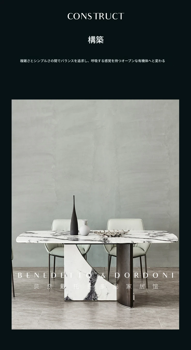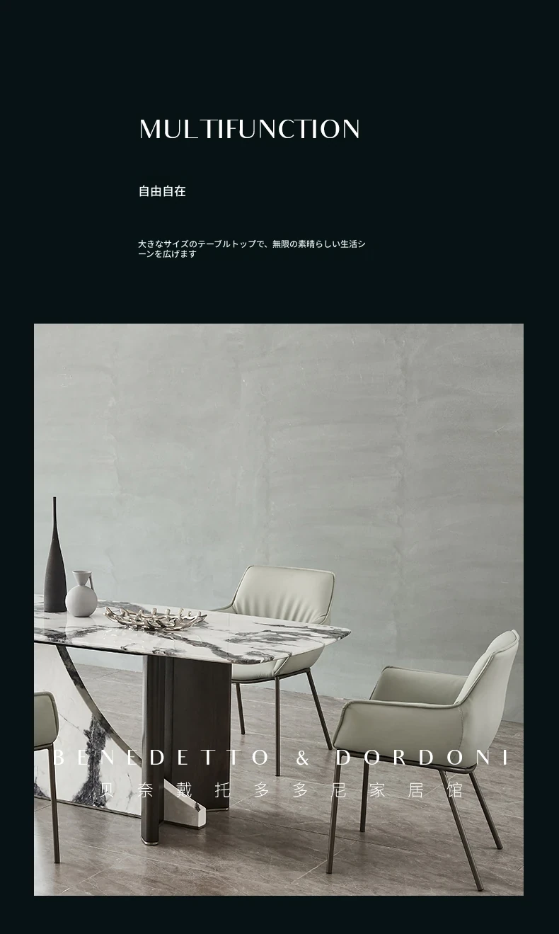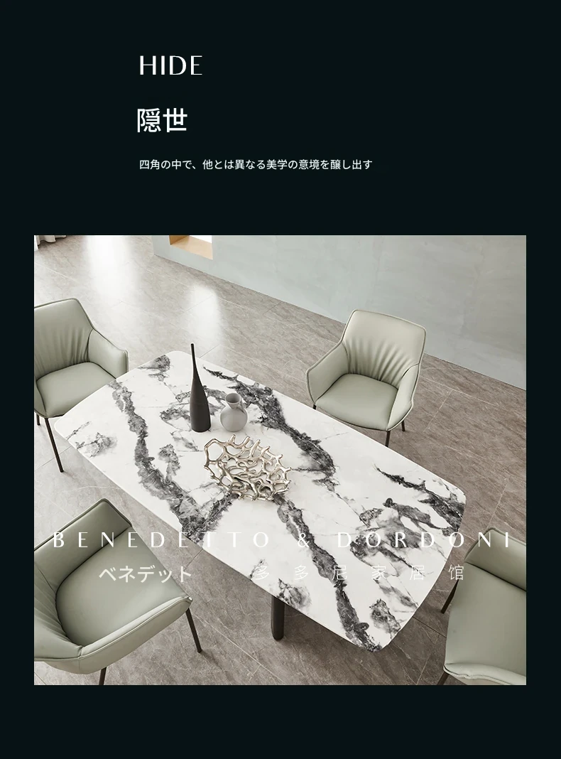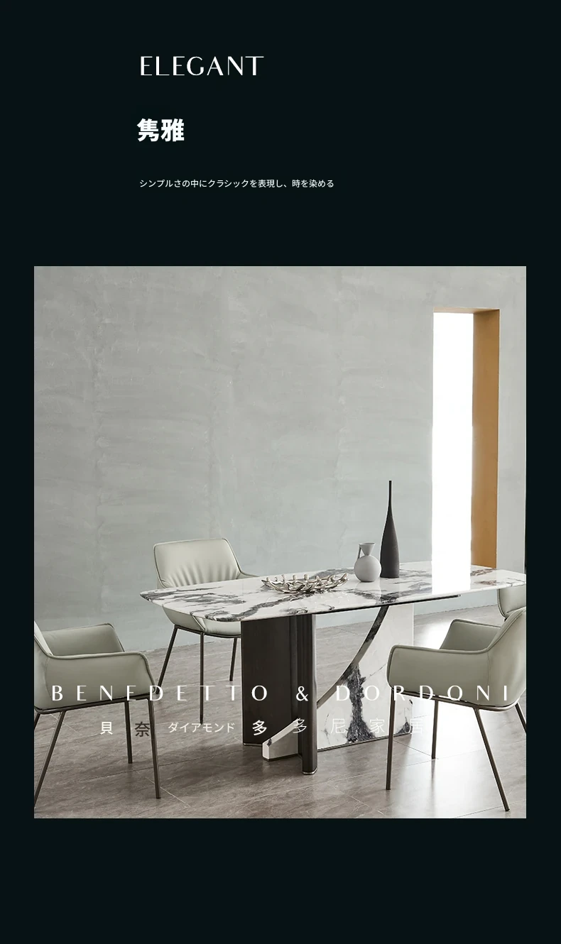 イタリアンラグジュアリー大理石ダイニングテーブル&チェアセット デザイナーズスタイル 高級感溢れる白の長方形テーブル 家庭用に最適!食卓を華やかに演出します。