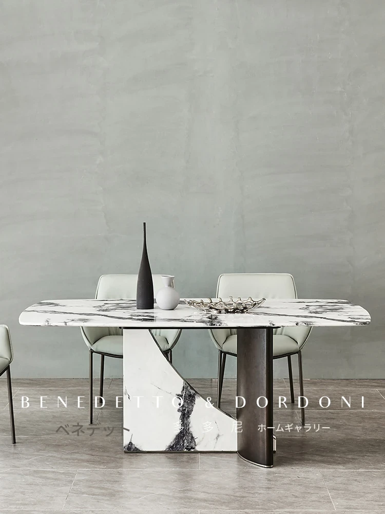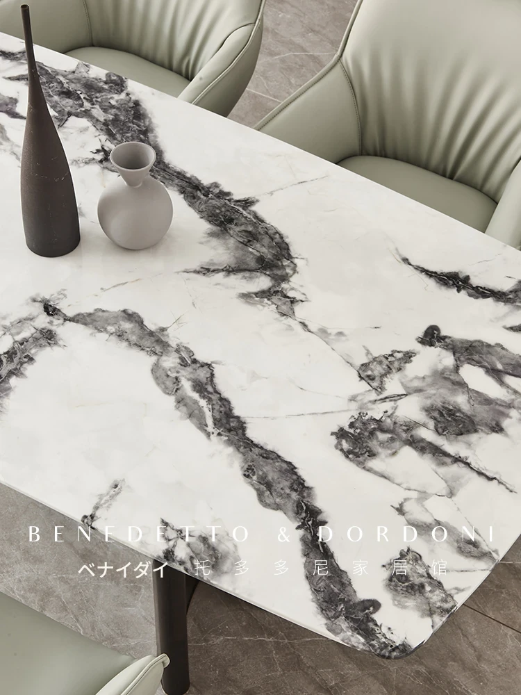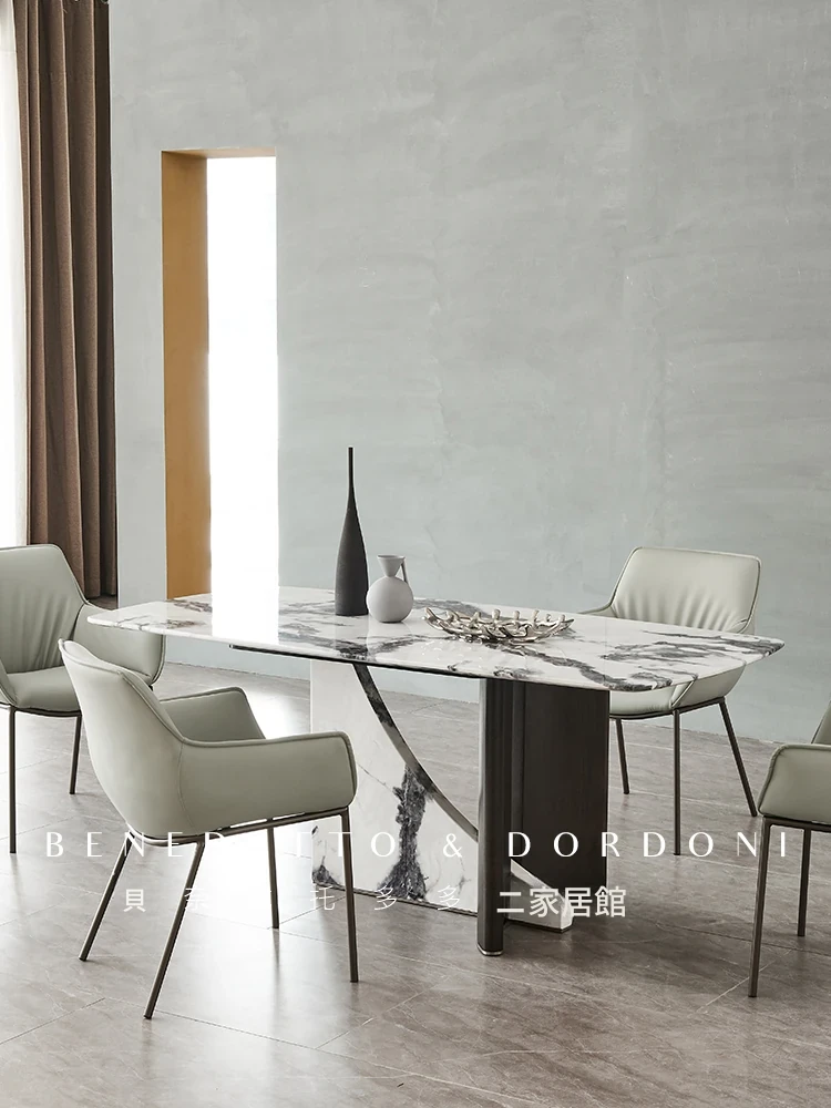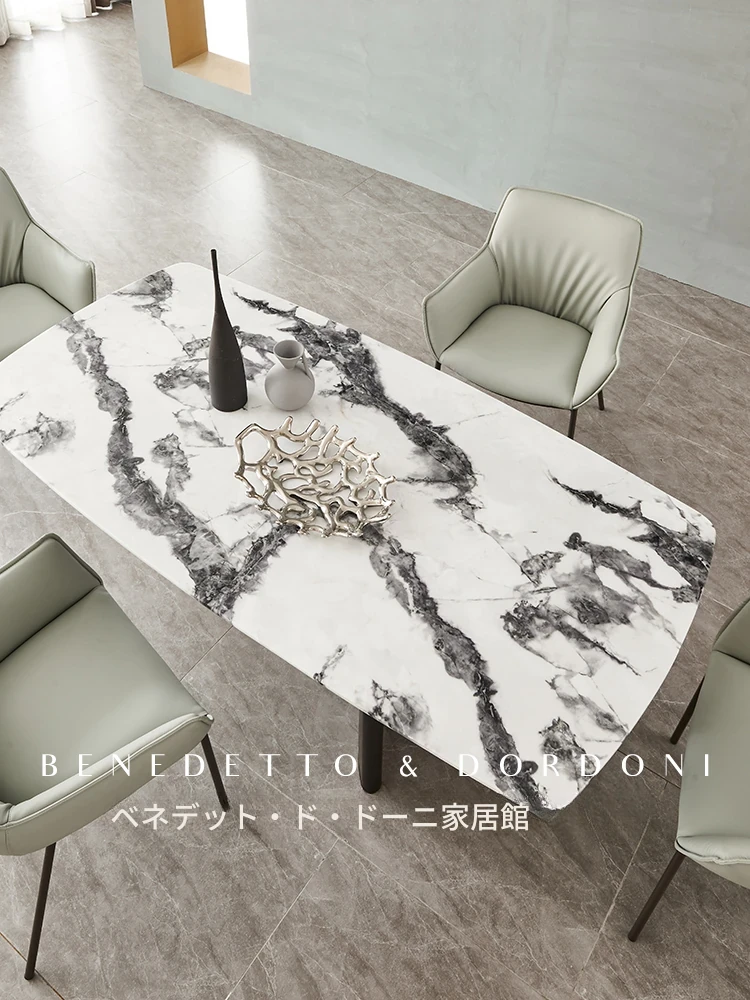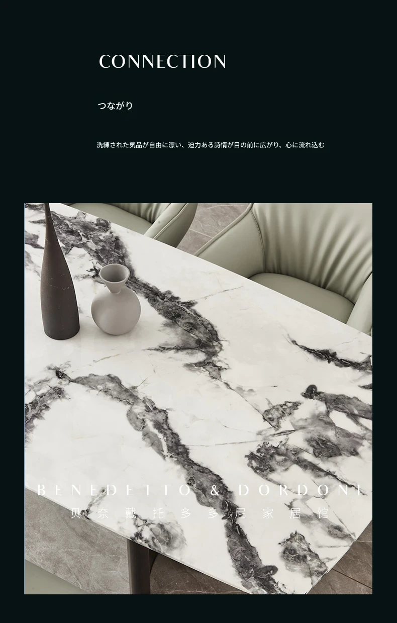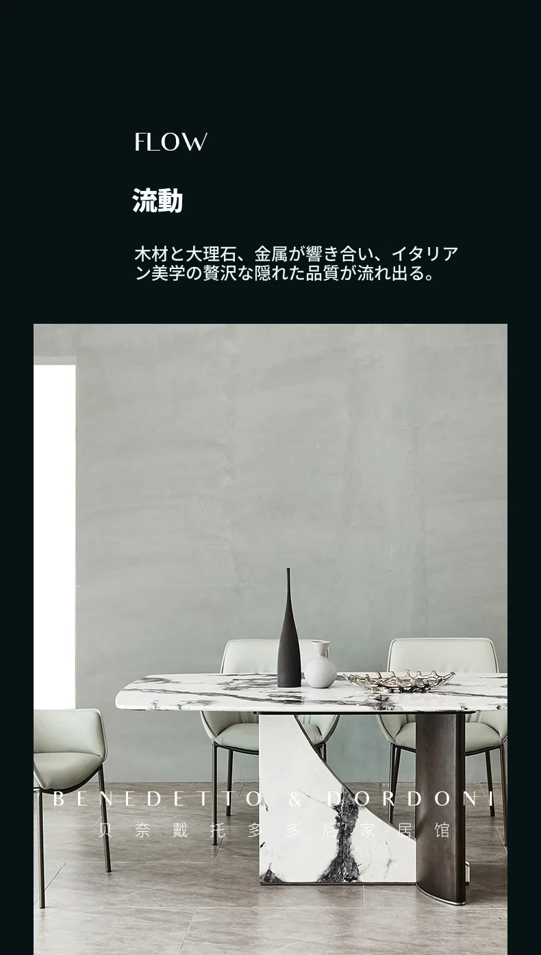 イタリアンラグジュアリー大理石ダイニングテーブル&チェアセット デザイナーズスタイル 高級感溢れる白の長方形テーブル 家庭用に最適!食卓を華やかに演出します。