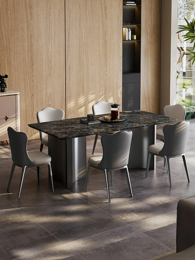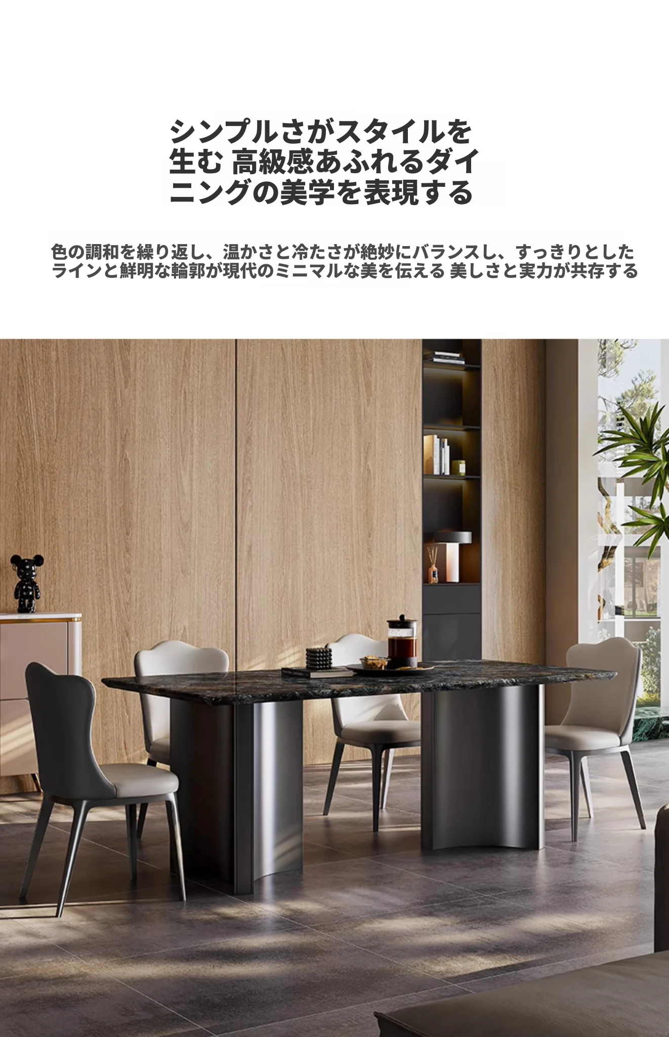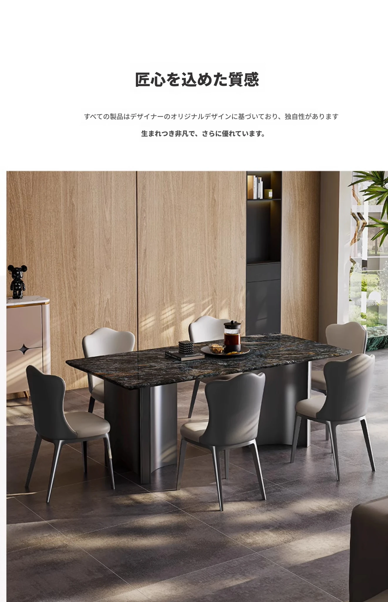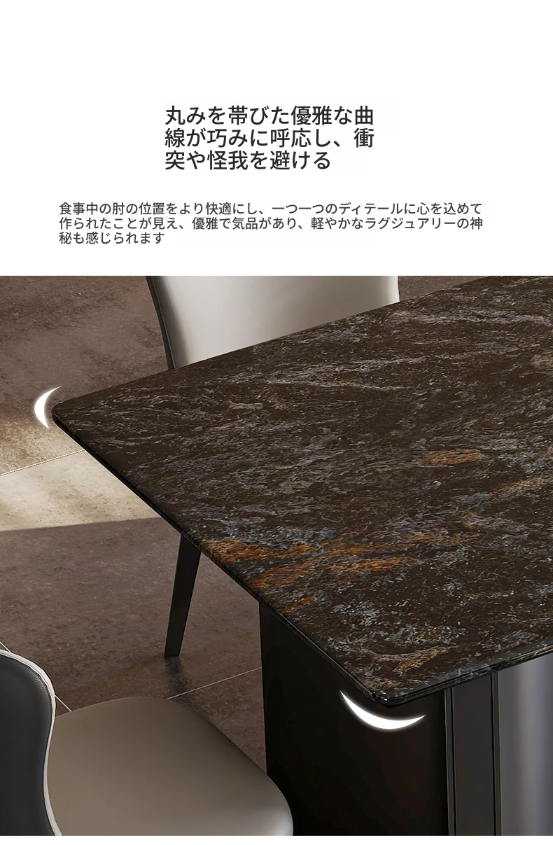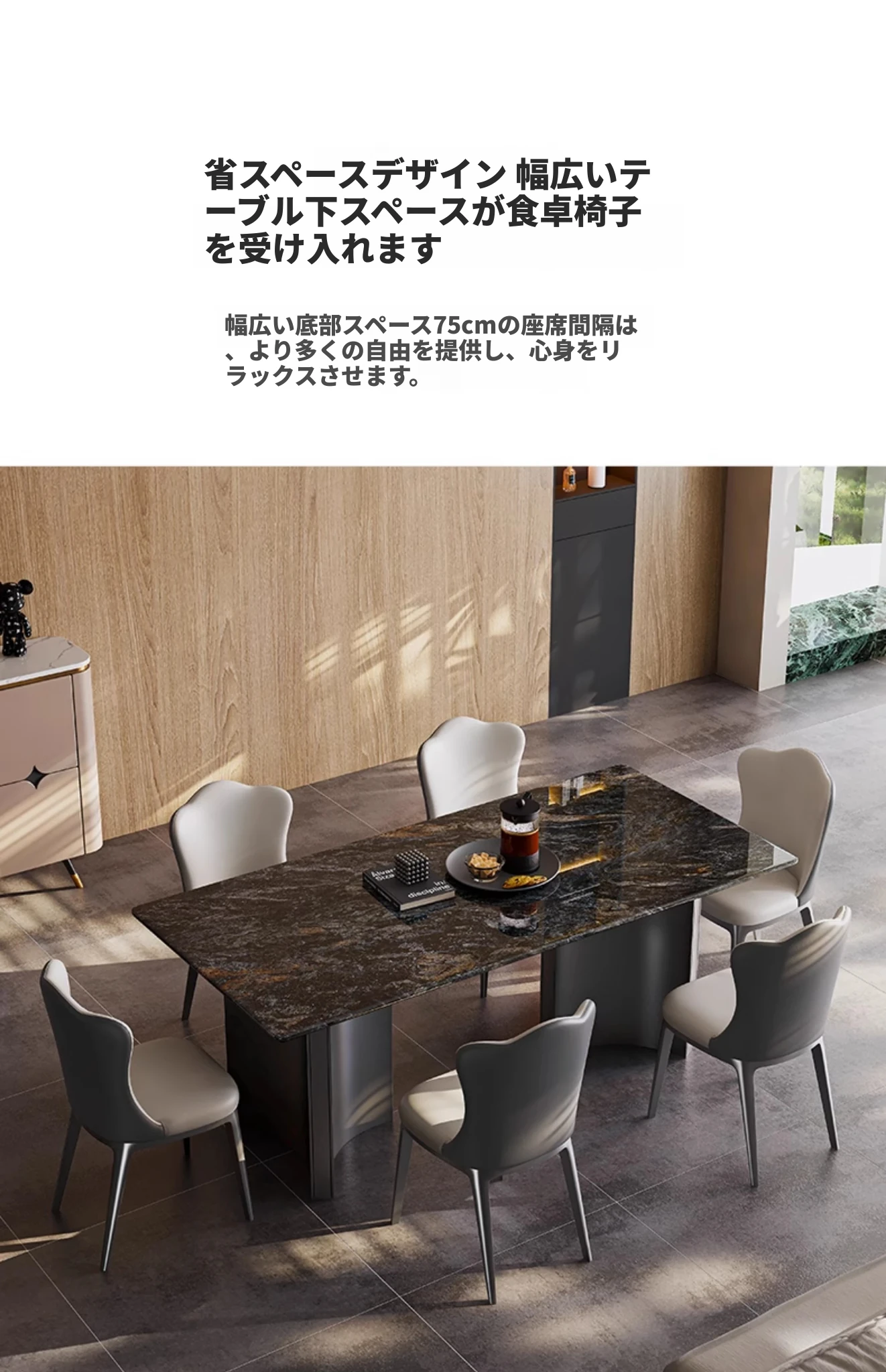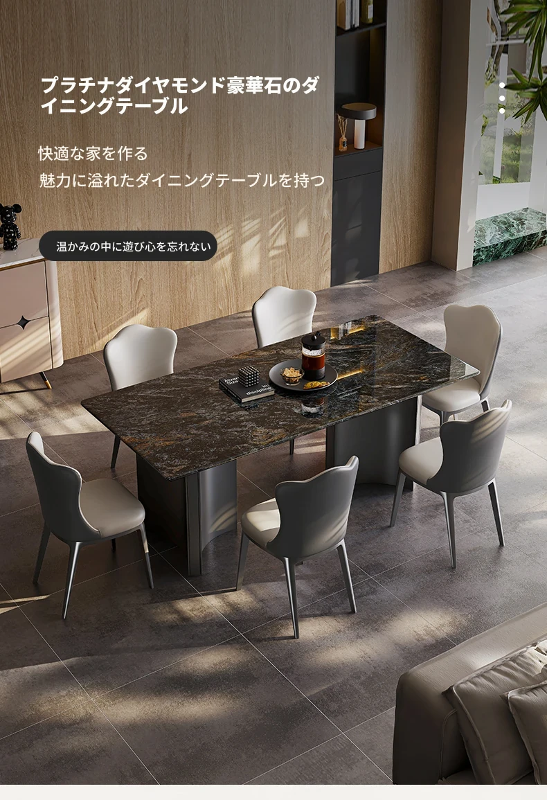 【A級輸入】プラチナダイヤモンド天然ラグジュアリー石製ダイニングテーブル【偽りは十倍罰】+本革雲朵ダイニングチェア*6