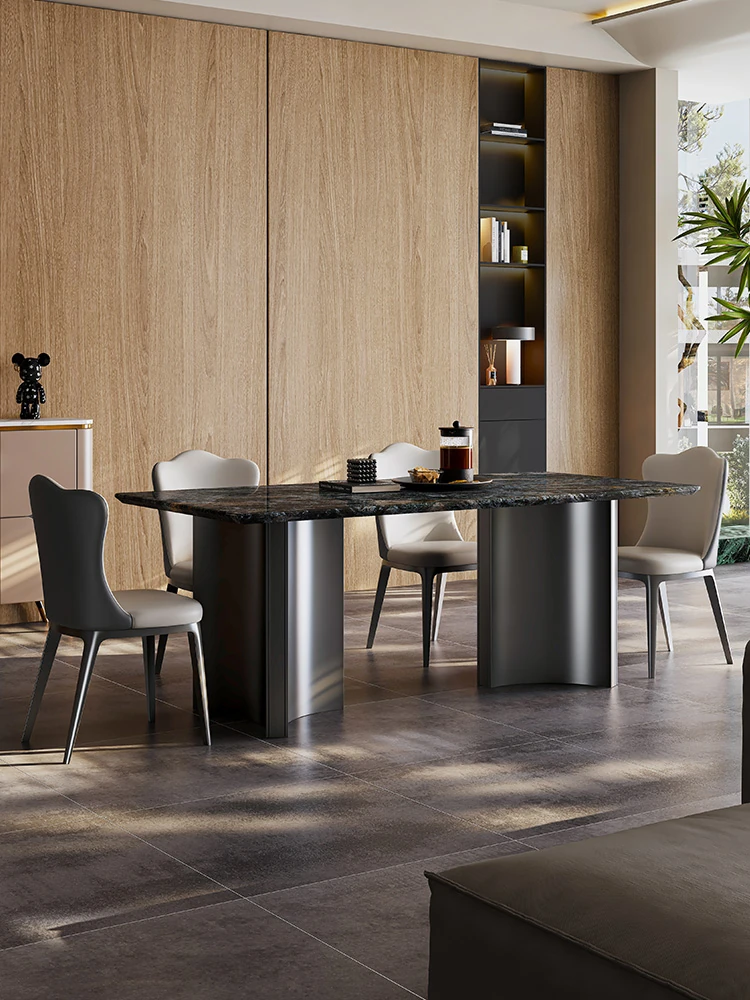 天然プラチナダイヤモンドの贅沢な石製デザイナーランチテーブル - 高級イタリアンミニマリズムの長方形大理石テーブルセット。洗練されたデザインと上質な素材で、特別な時間を演出します。
