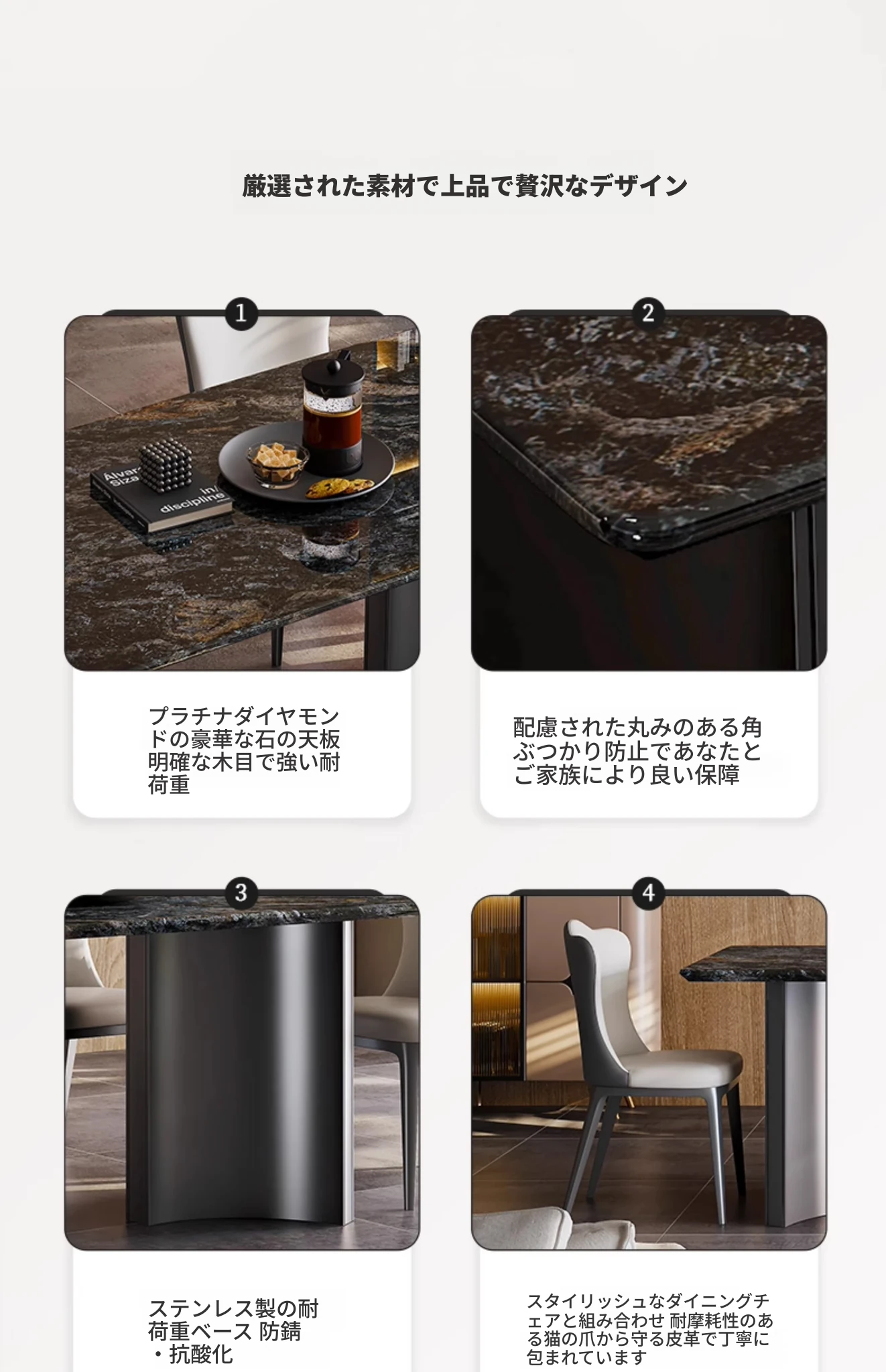 【A級輸入】プラチナダイヤモンド天然ラグジュアリー石製ダイニングテーブル【偽りは十倍罰】+本革雲朵ダイニングチェア*4