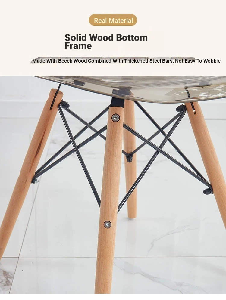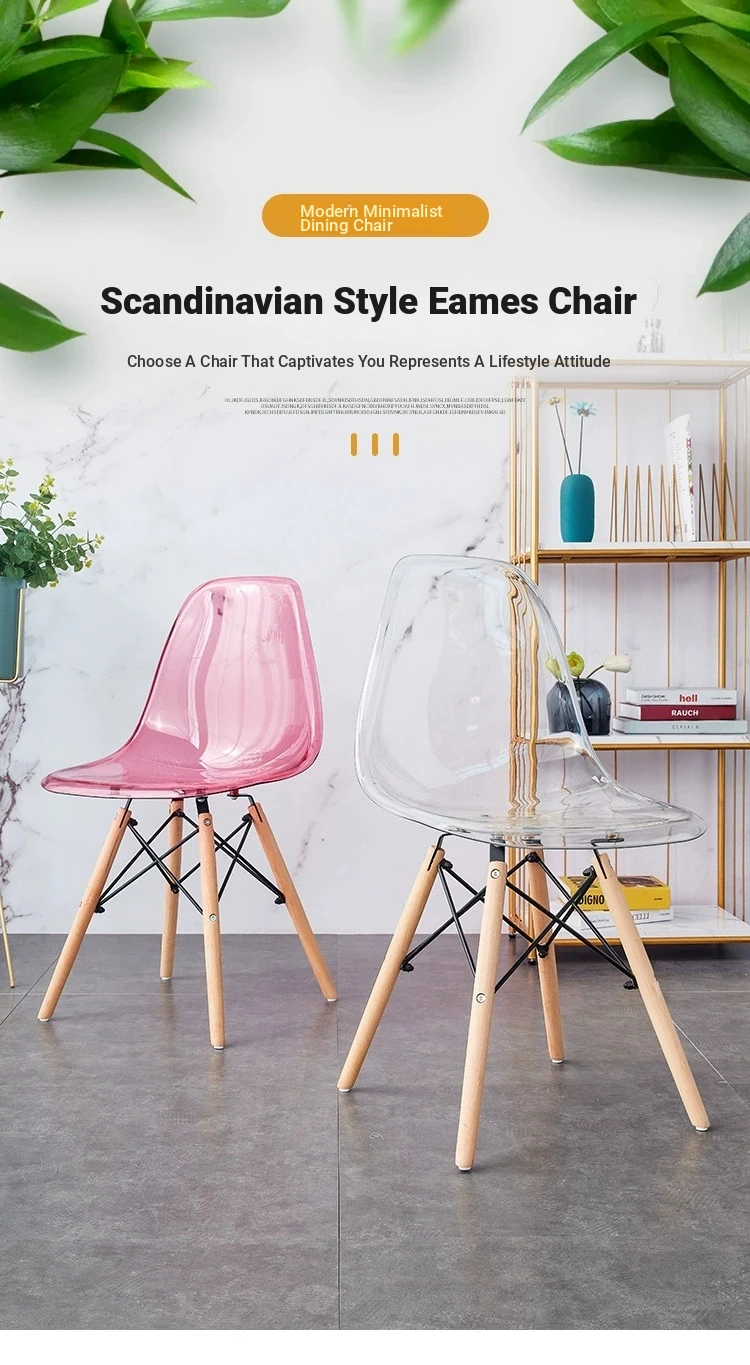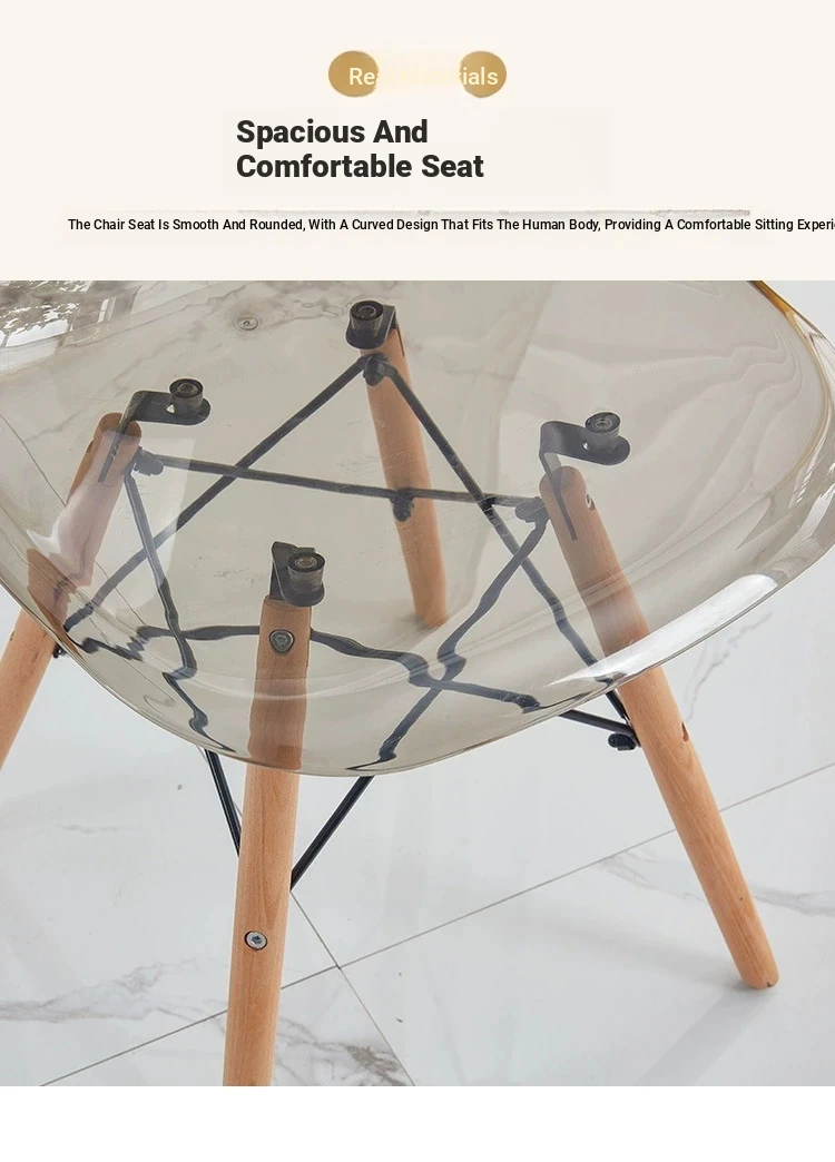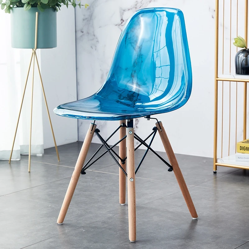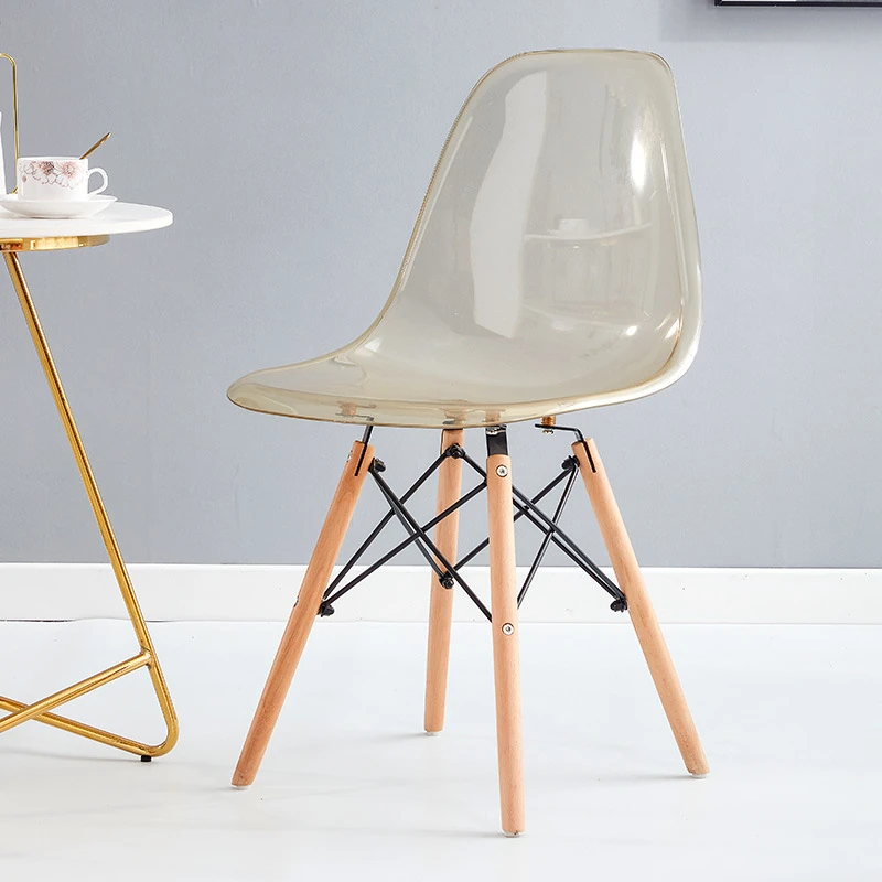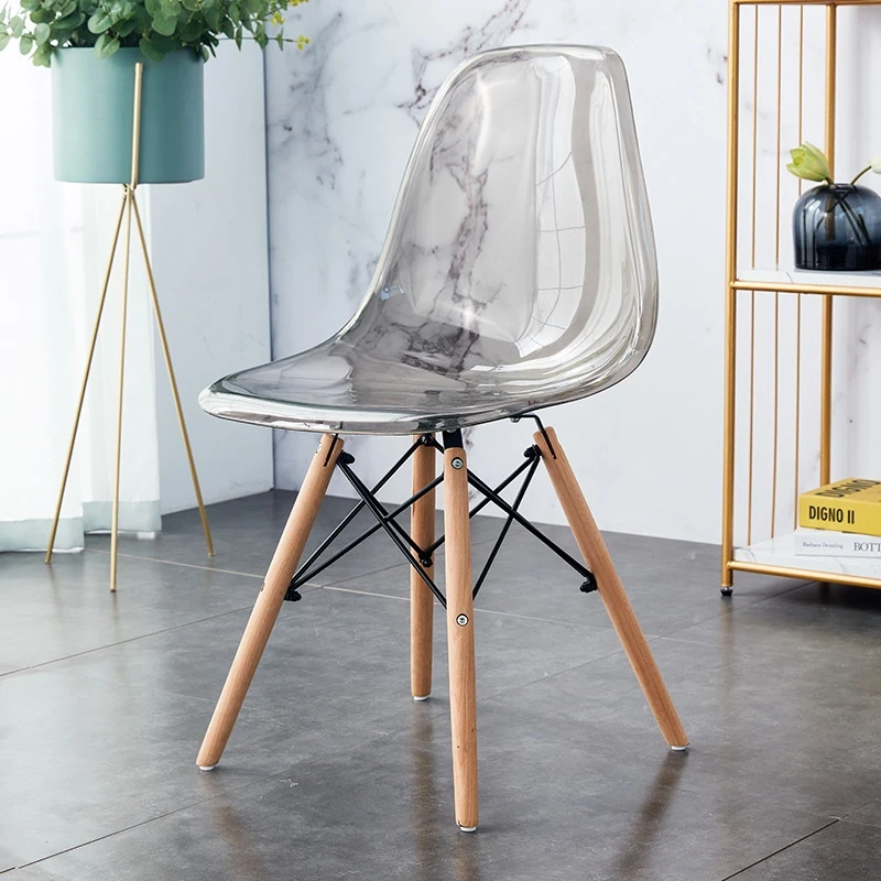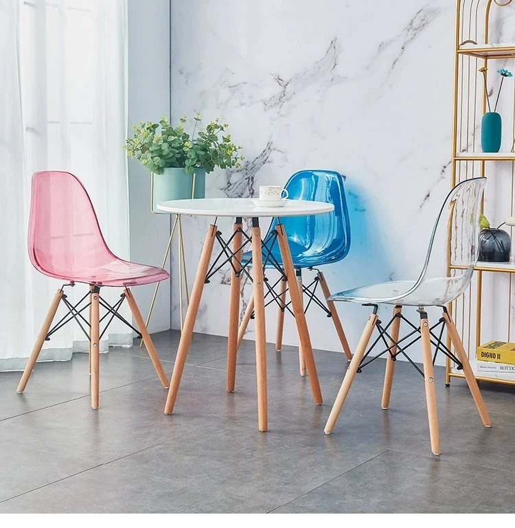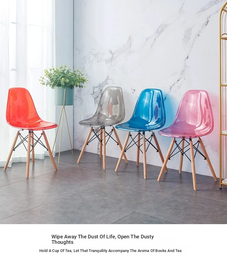 Eames Transparent Chair - Modern Minimalist Dining Chair with Backrest, Scandinavian Colorful Ghost Chair with Plastic and Wooden Legs for Home Use