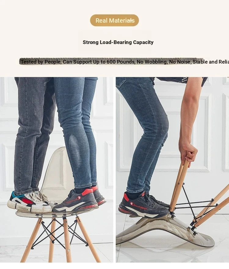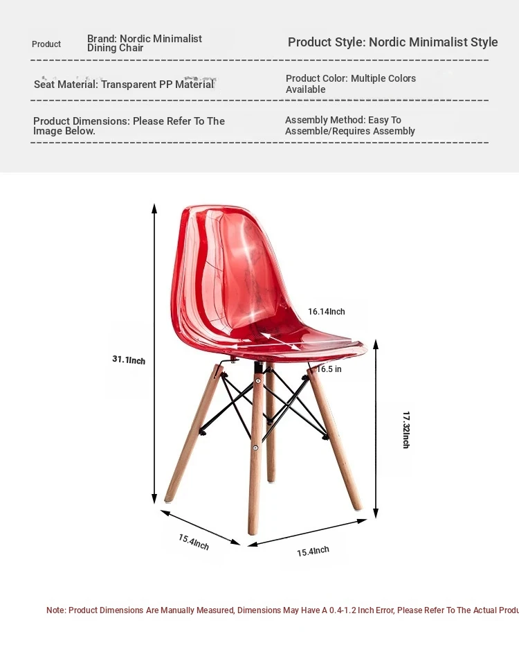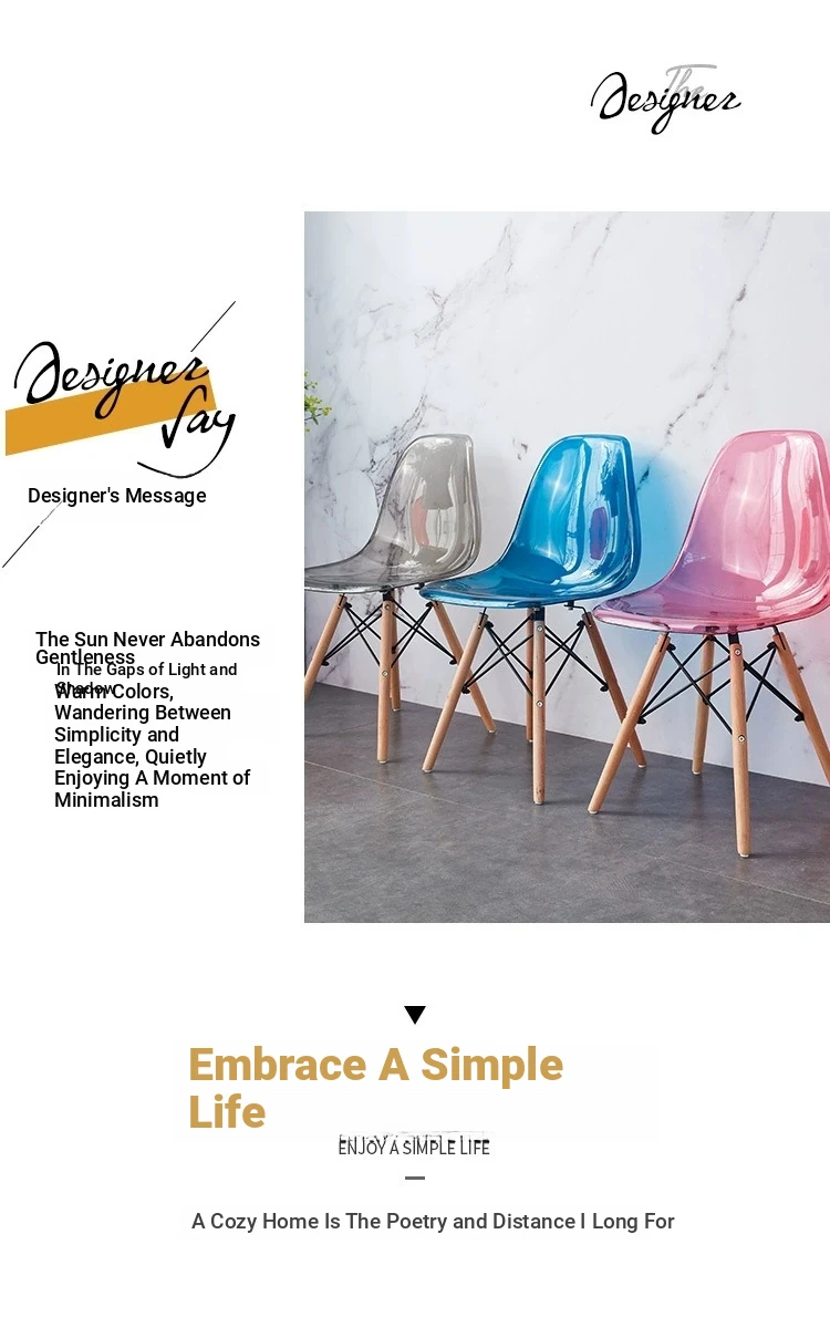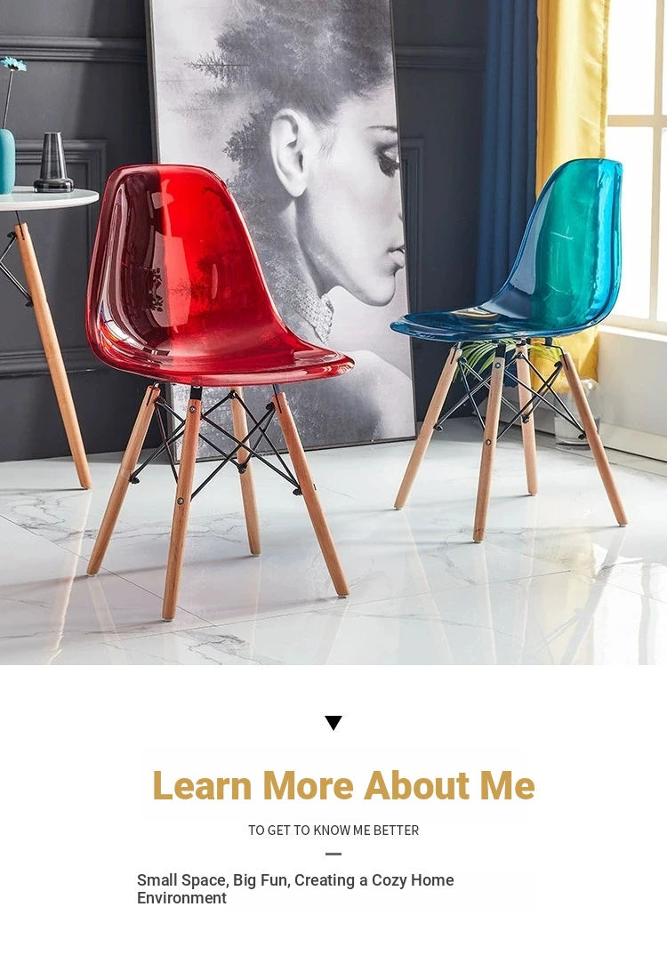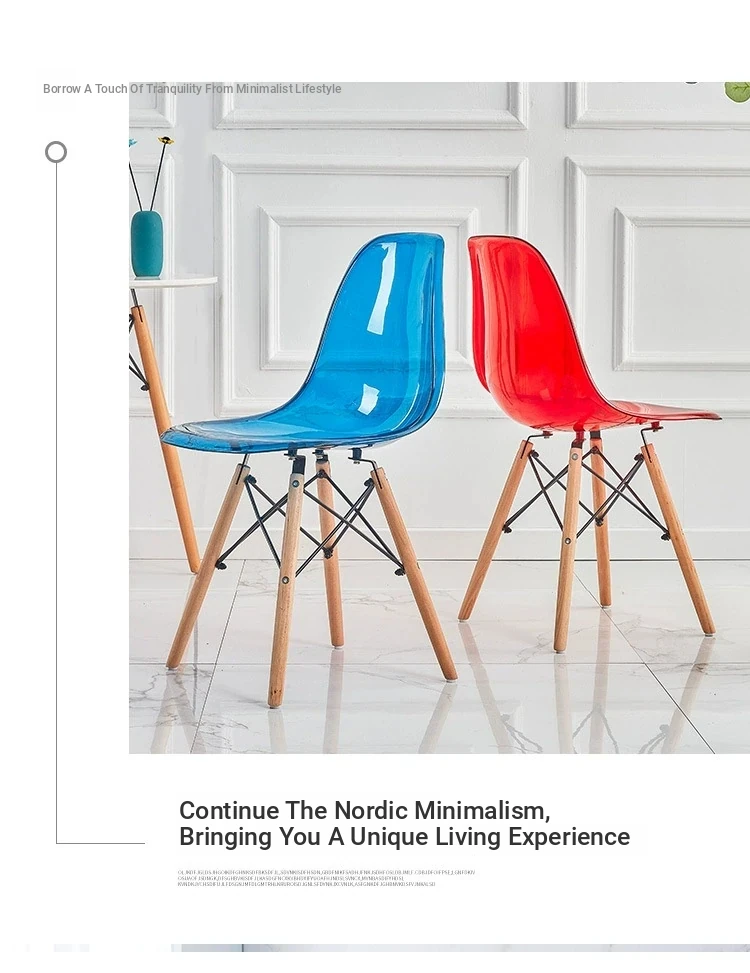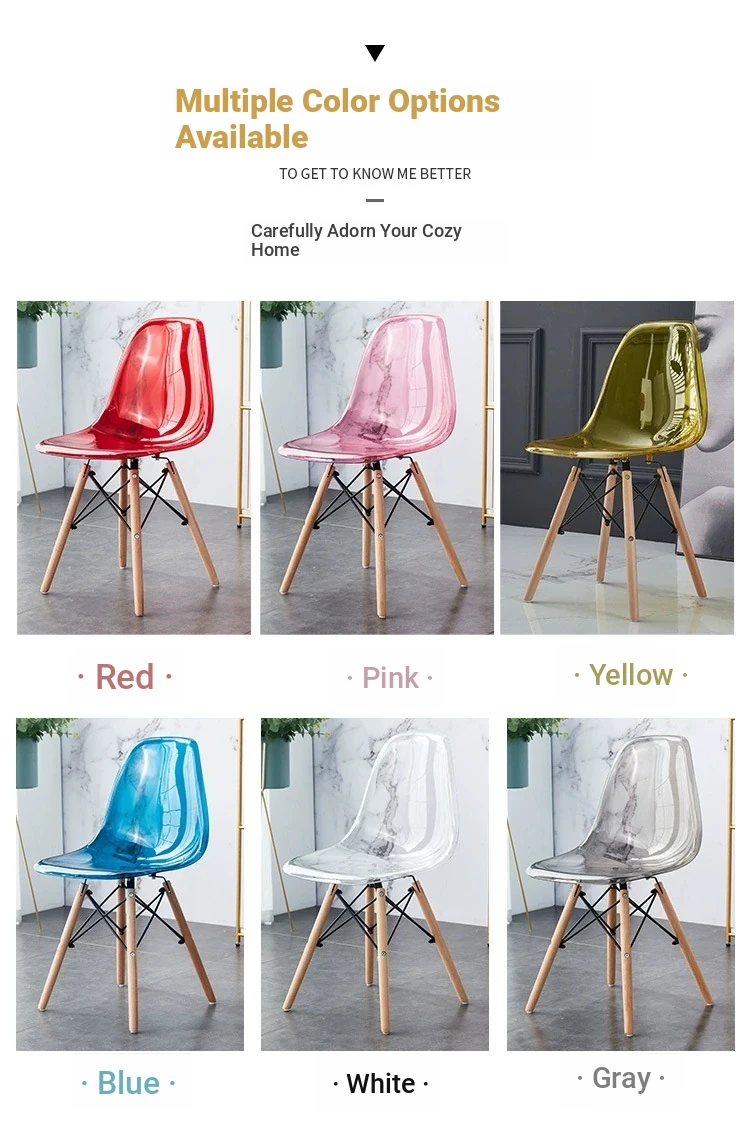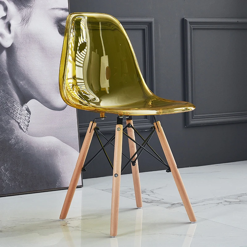 Eames Transparent Chair - Modern Minimalist Dining Chair with Backrest, Scandinavian Colorful Ghost Chair with Plastic and Wooden Legs for Home Use