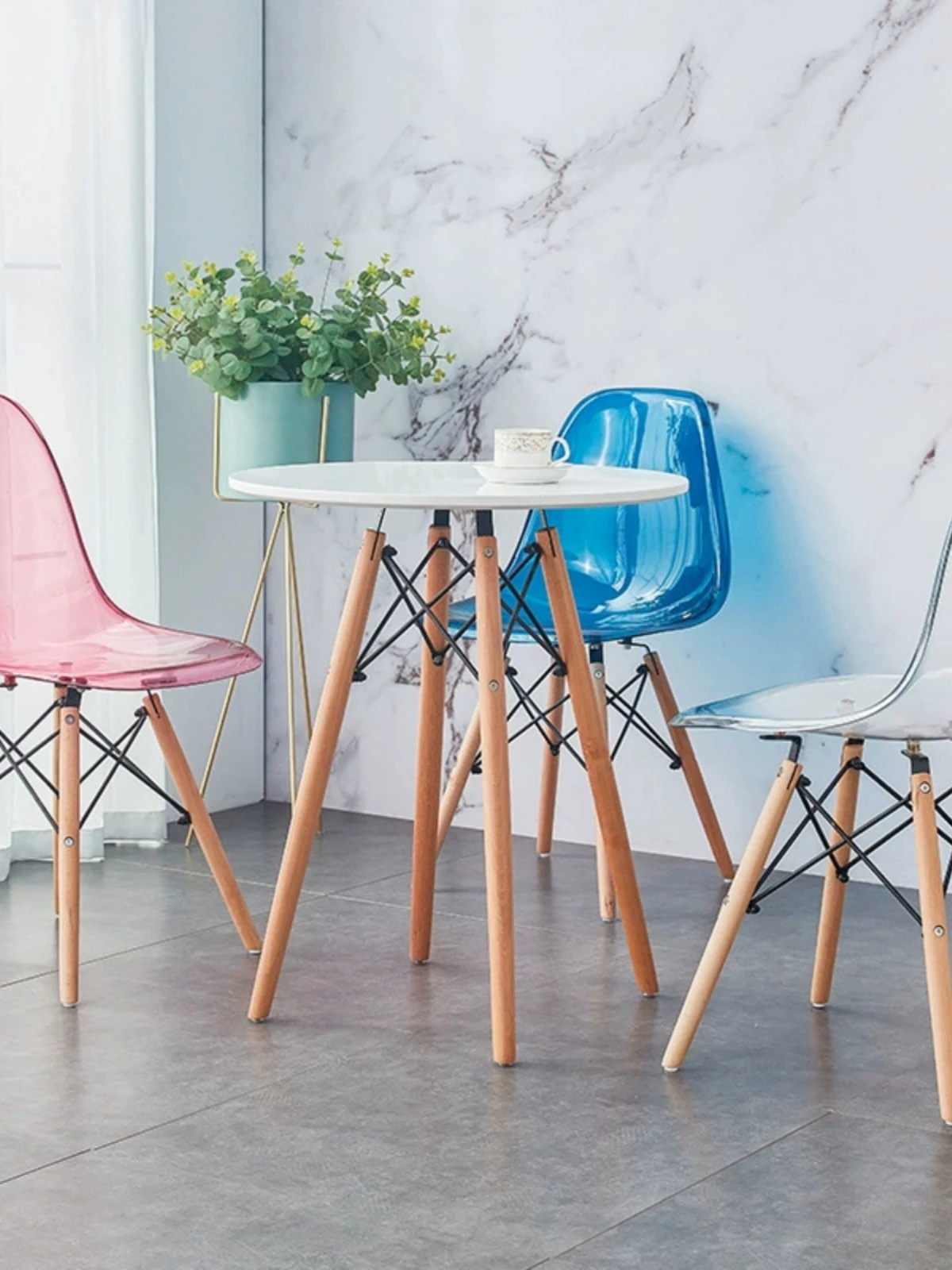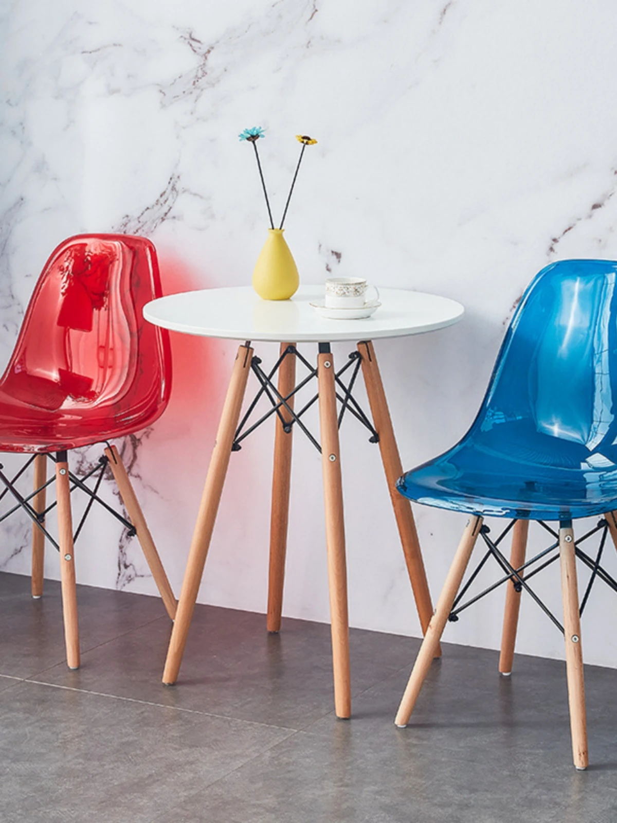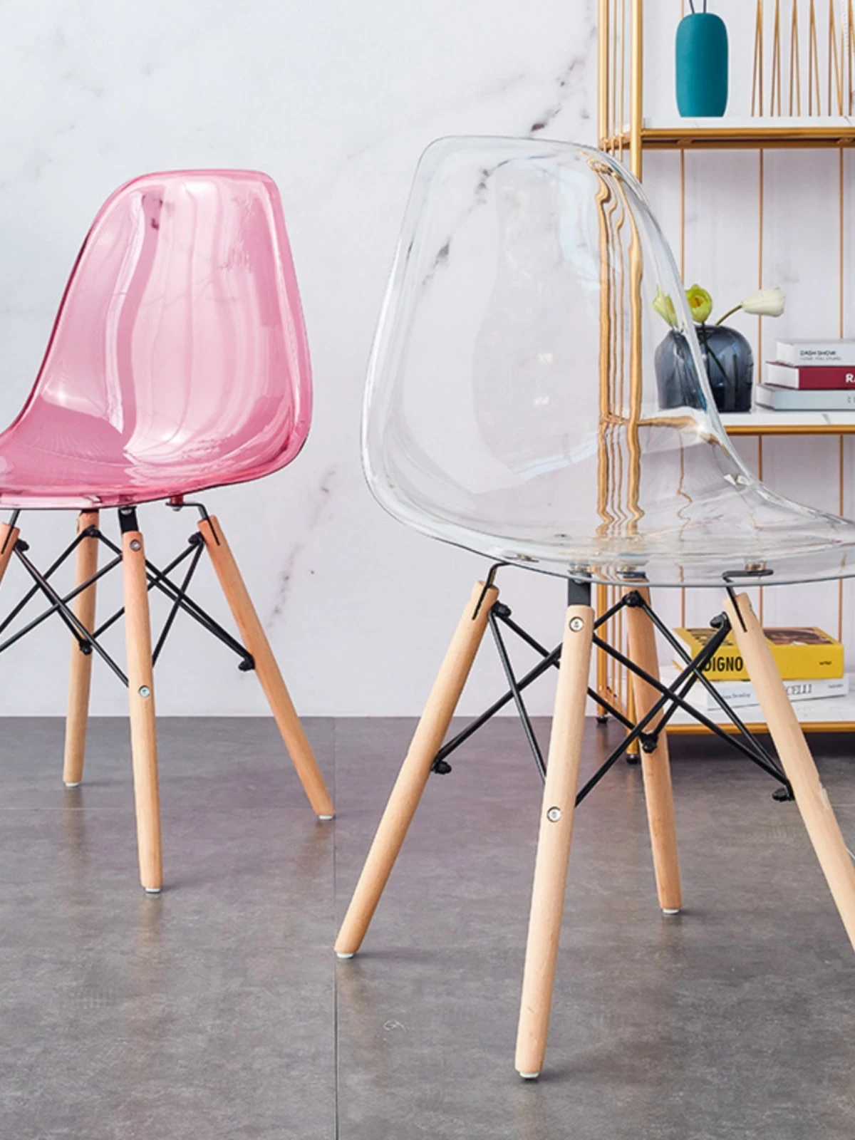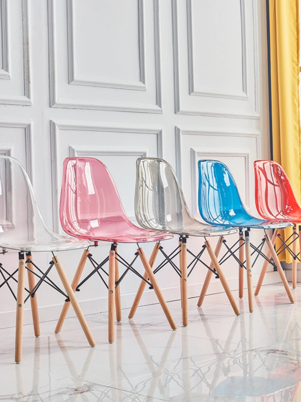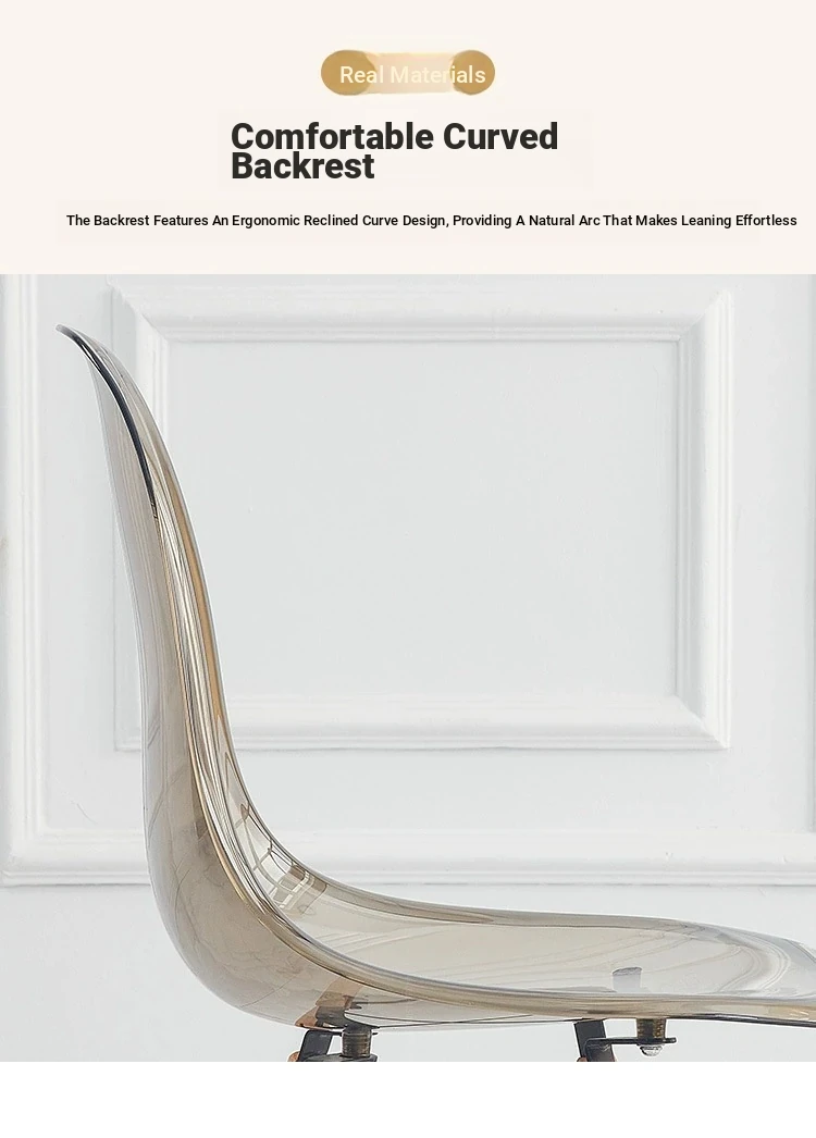 Eames Transparent Chair - Modern Minimalist Dining Chair with Backrest, Scandinavian Colorful Ghost Chair with Plastic and Wooden Legs for Home Use