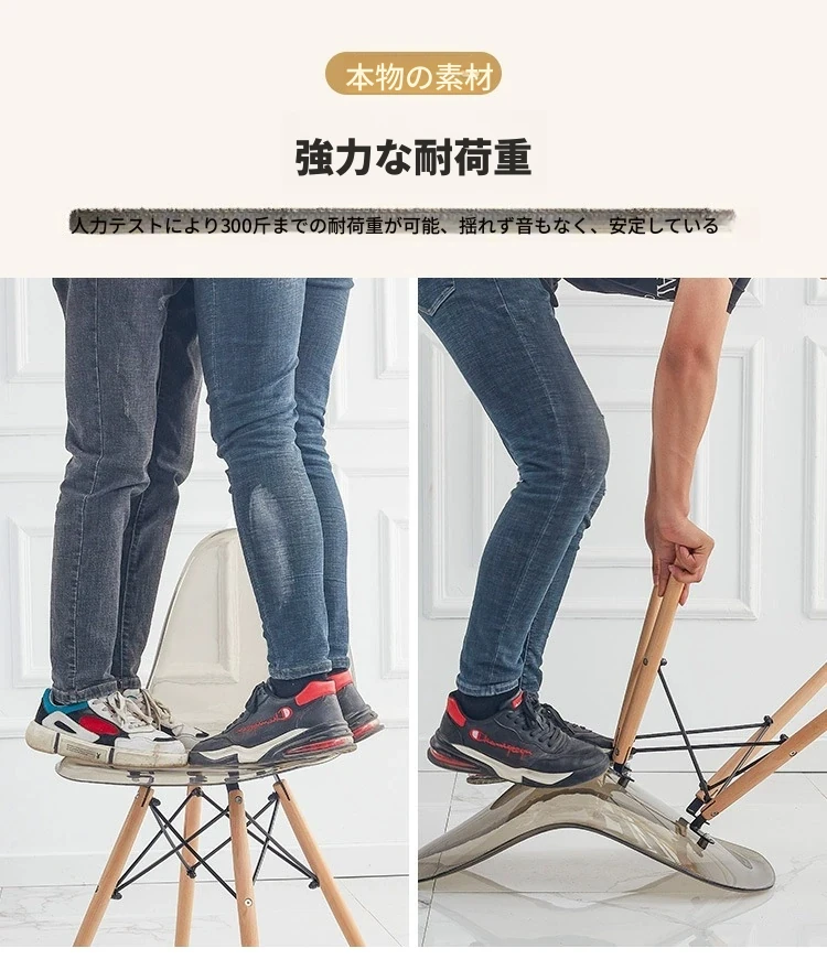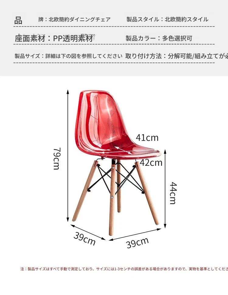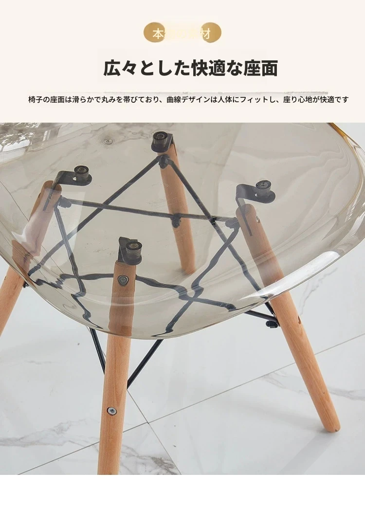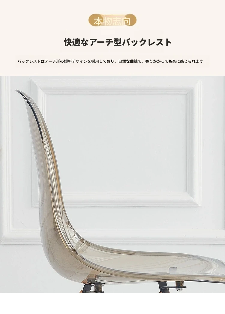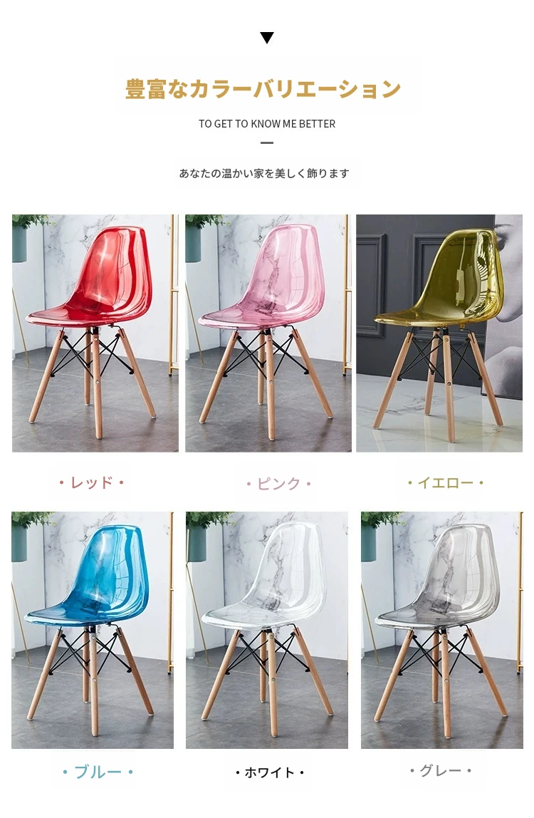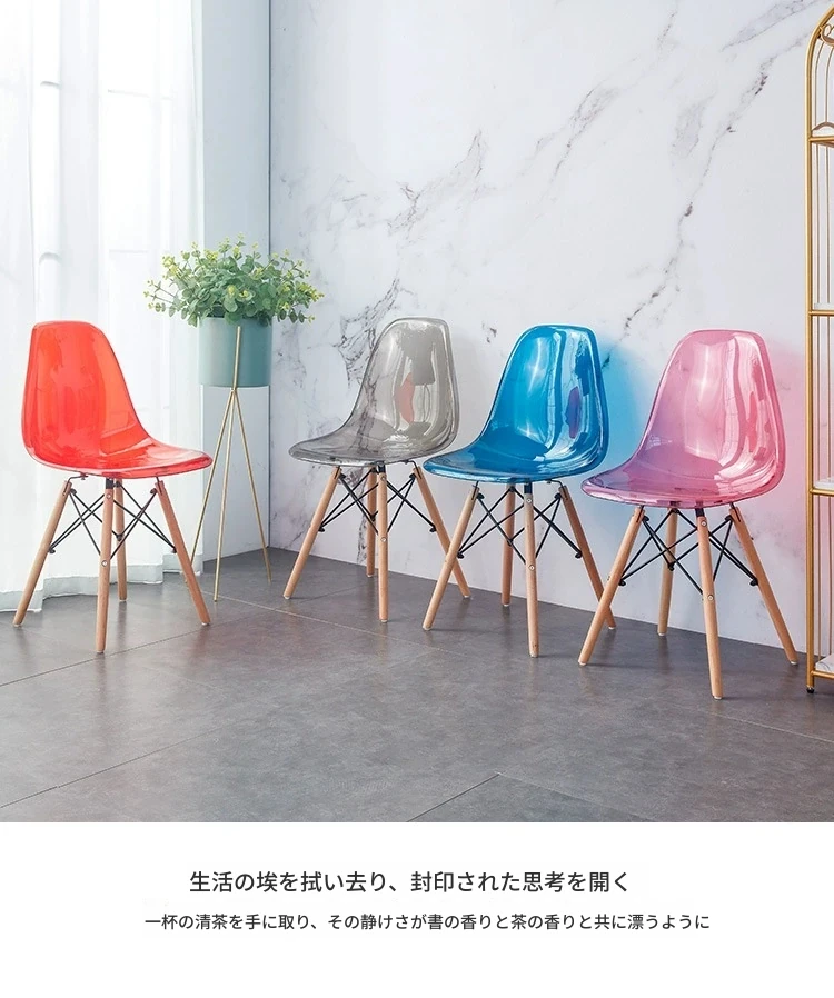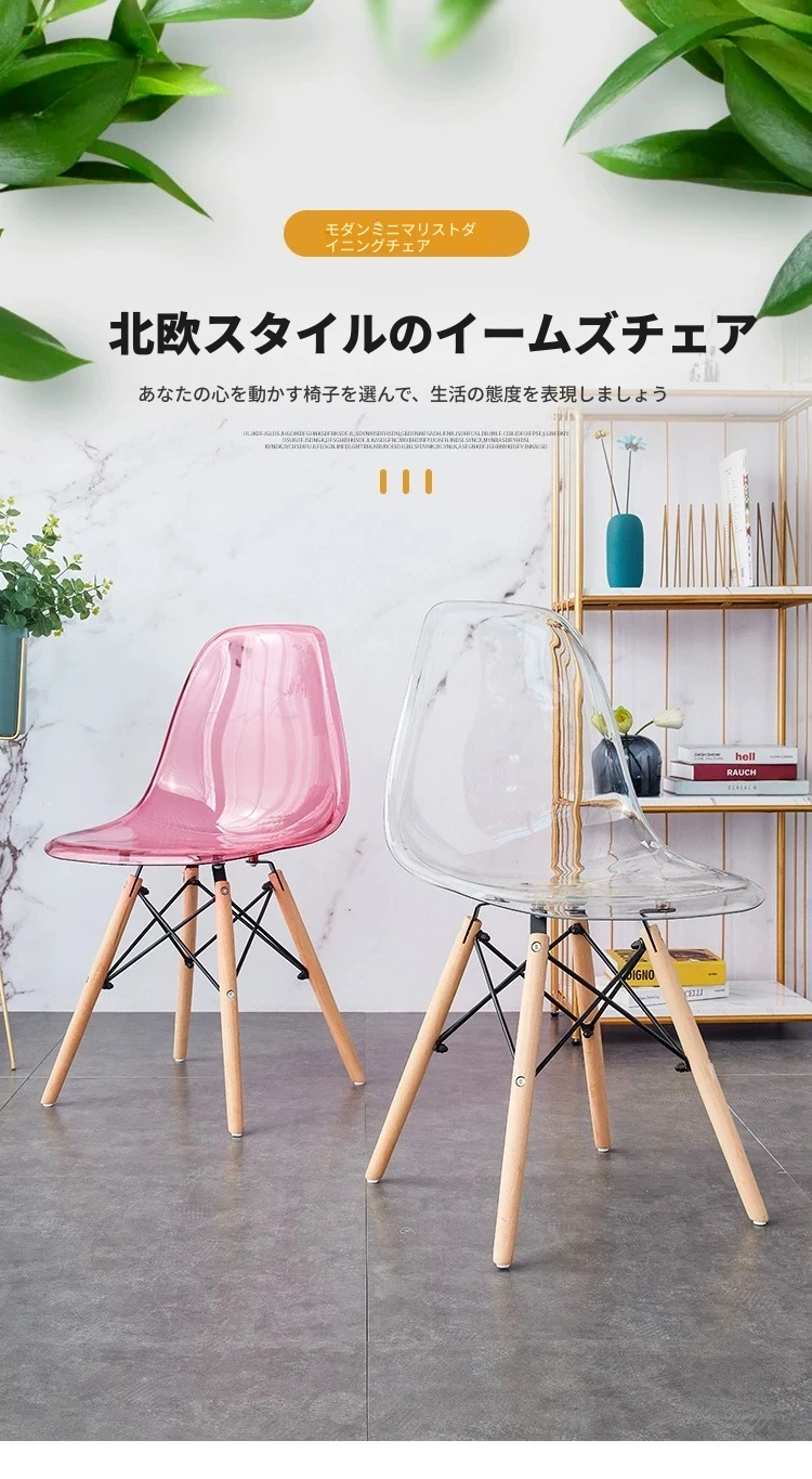 イームズ 透明チェア モダンミニマリスト 家庭用 背もたれ付き 北欧カラフル ゴーストチェア プラスチック&ウッドレッグ ダイニングチェア - スタイリッシュな空間を演出し、快適な座り心地を提供します!