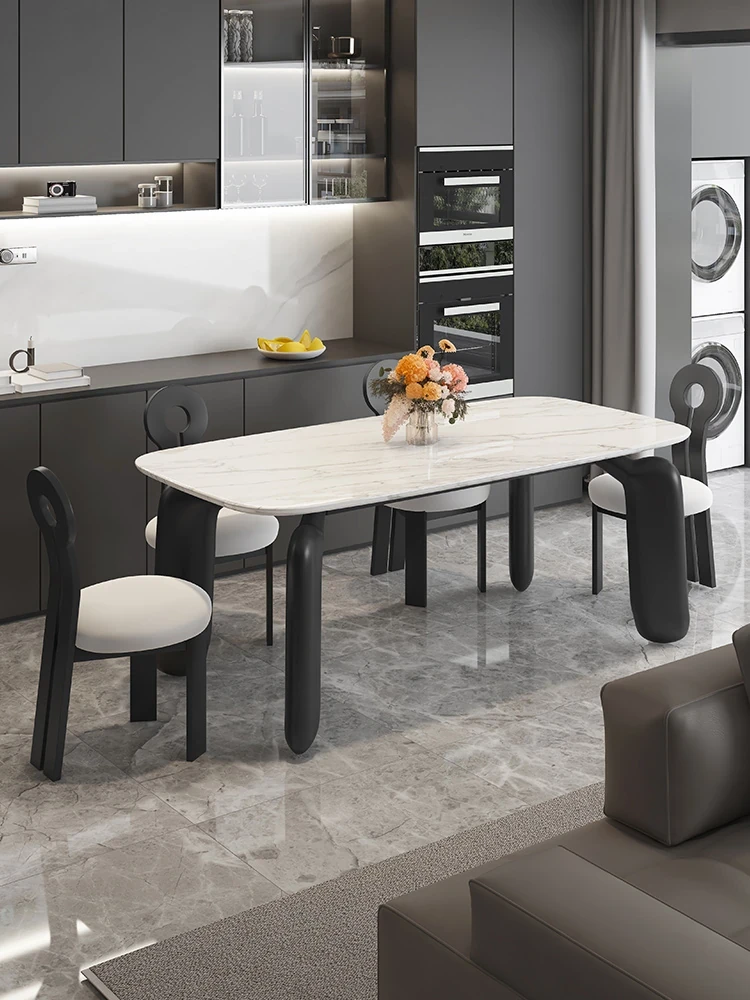 天然輸入ジャズホワイトラグジュアリー石食卓 家庭用ハイエンド長方形ホワイト大理石ダイニングテーブル&チェアセットで、洗練されたデザインと優雅さを兼ね備えた、贅沢な食事体験をお楽しみください。