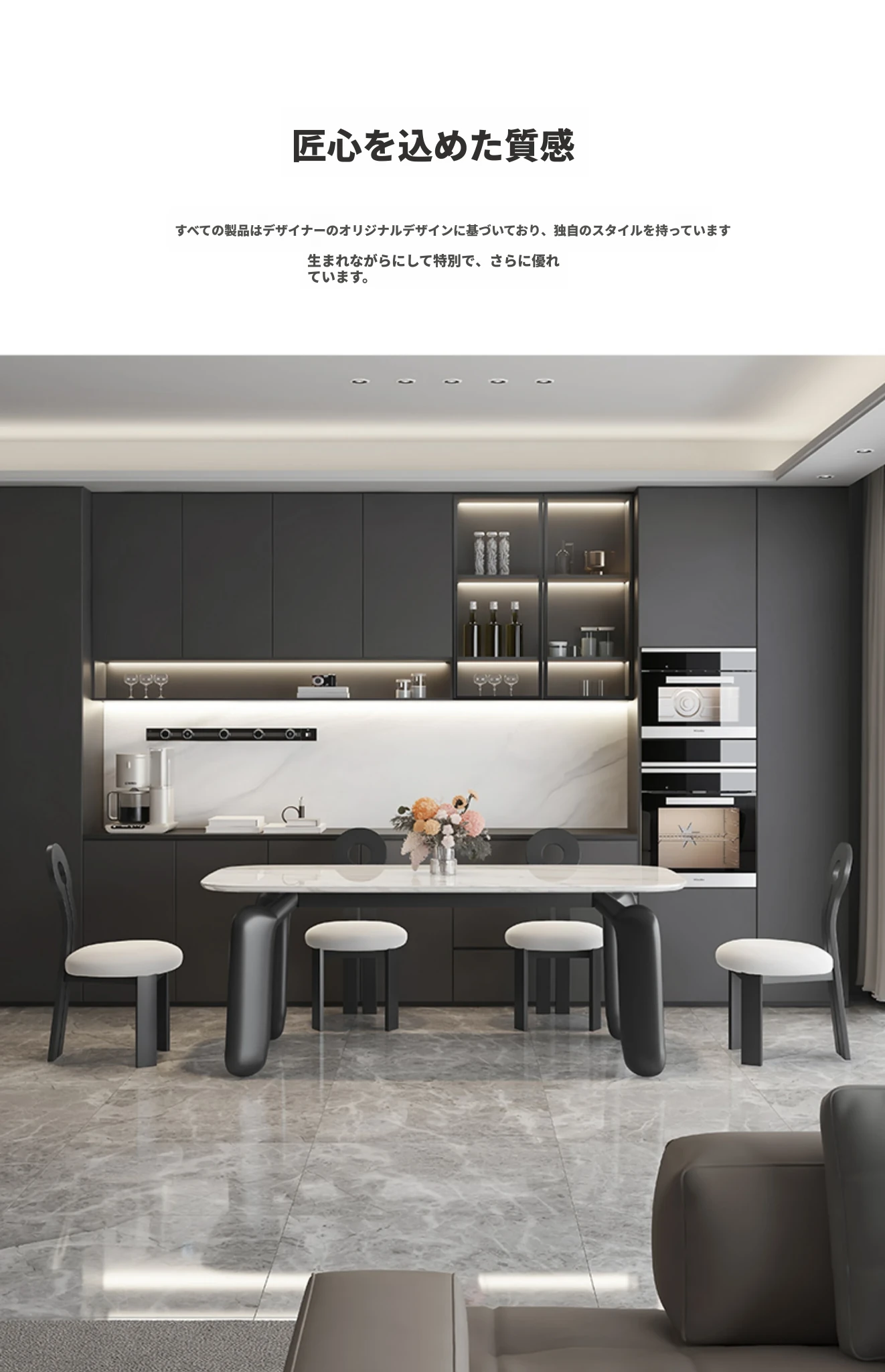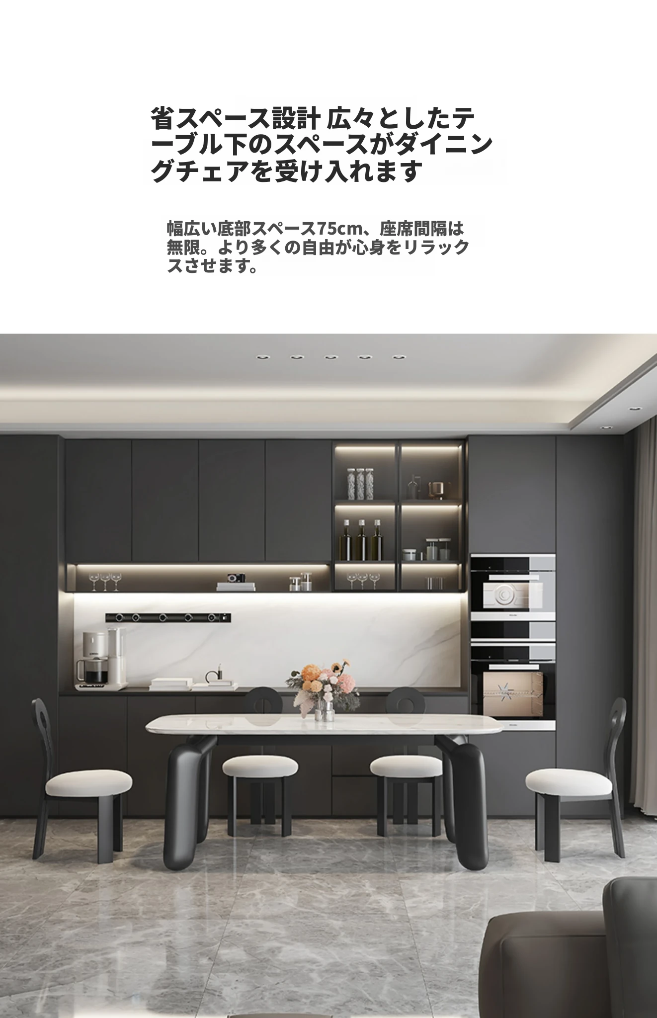 ジャズホワイト天然高級石テーブル+ダイニングチェア*6