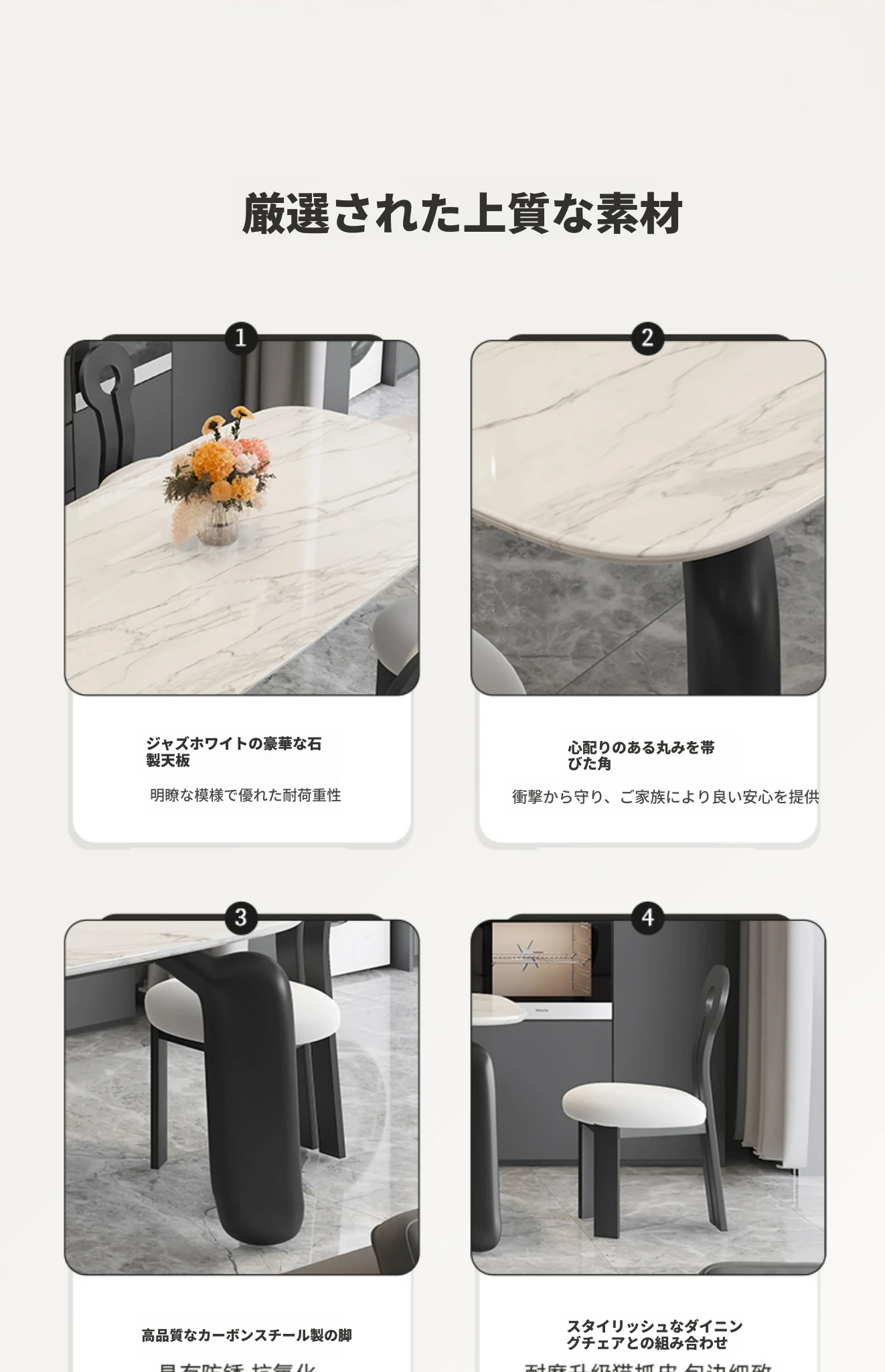 ジャズホワイト天然高級石テーブル+ダイニングチェア*4