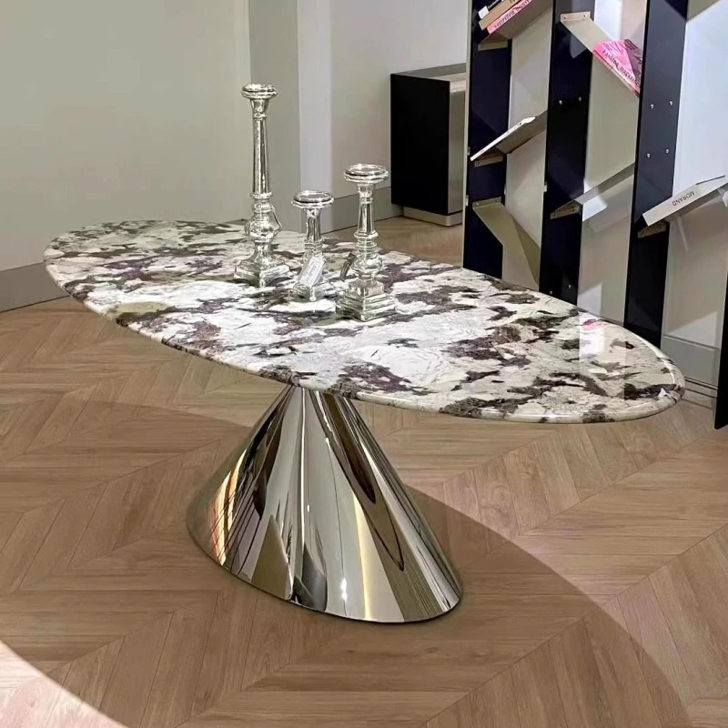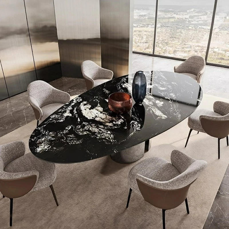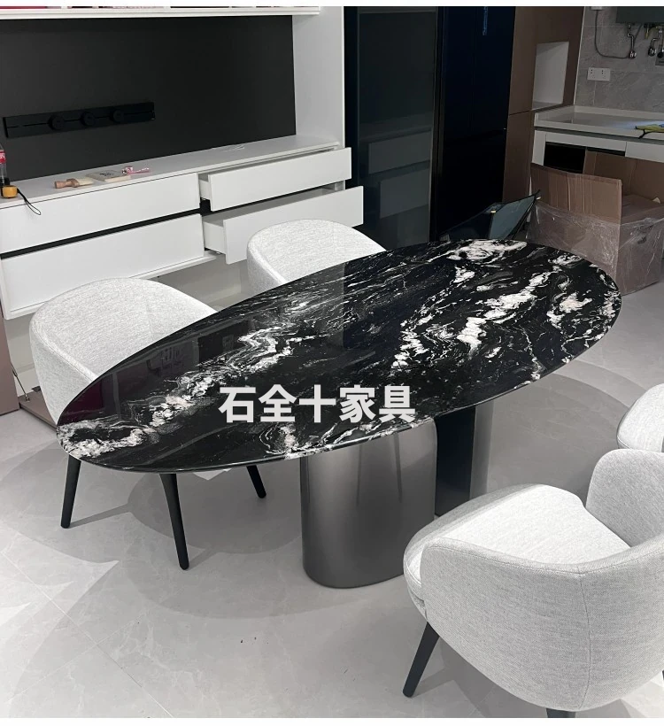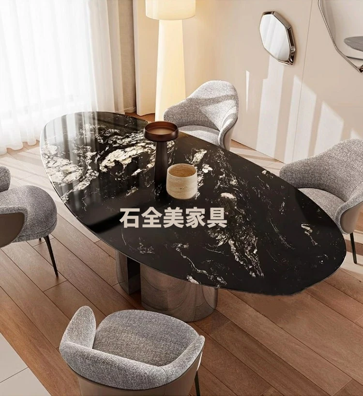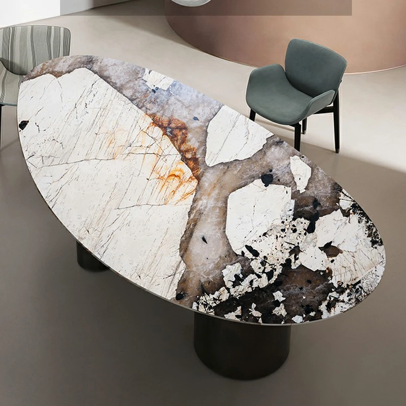 雪山飛狐ラグジュアリーストーン天板(楕円形ダイニングテーブル)