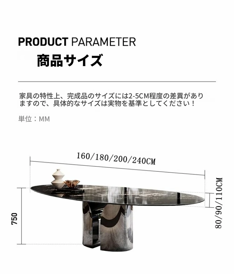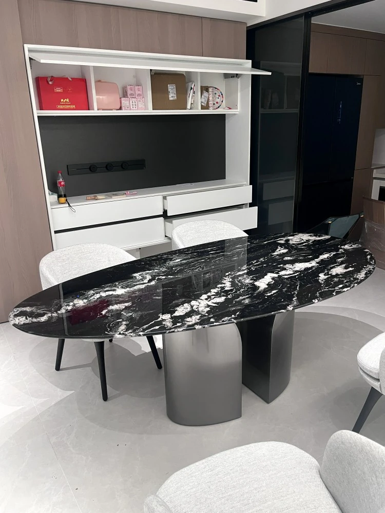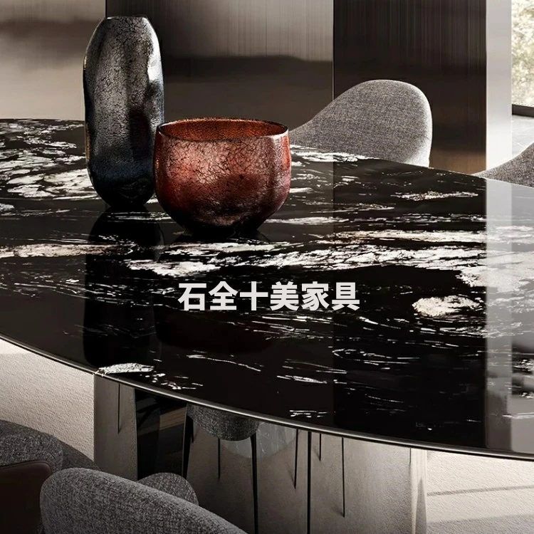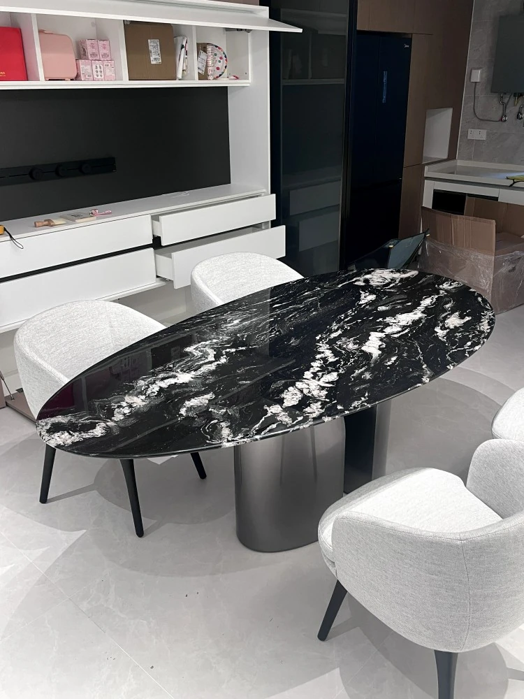 宇宙ブラックラグジュアリーストーン天板(楕円形ダイニングテーブル)