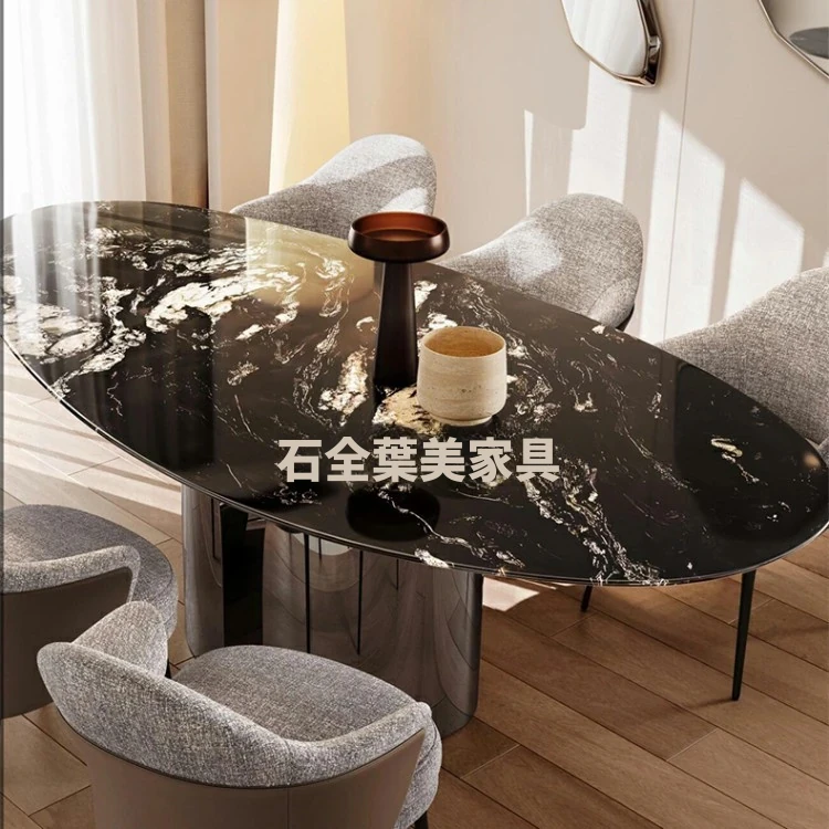 イタリアンオーバル天然大理石ダイニングテーブル - ラグジュアリー感あふれるデザイン、優雅な水滴型。洗練された空間を演出し、特別なひとときをお届けします。
