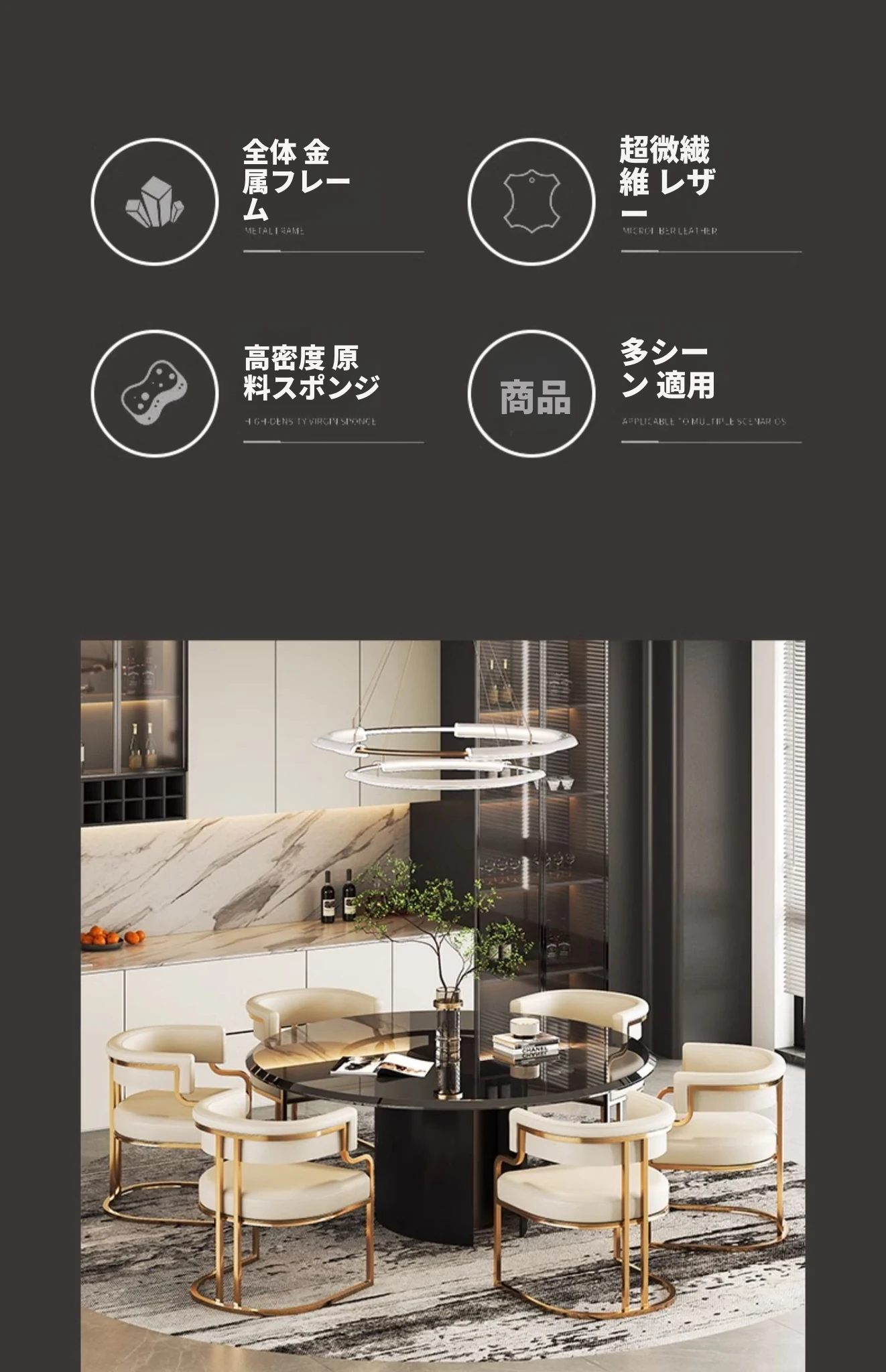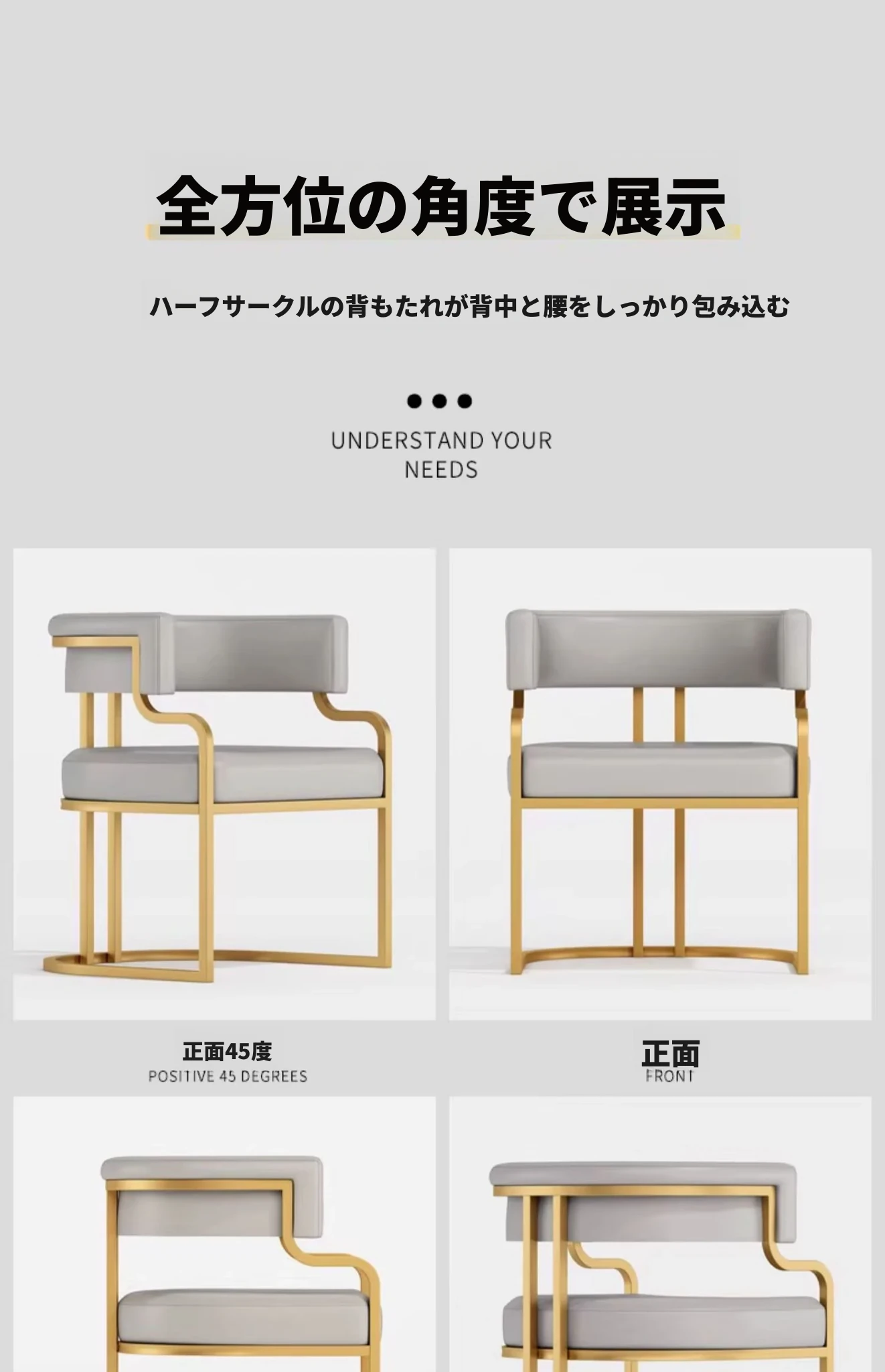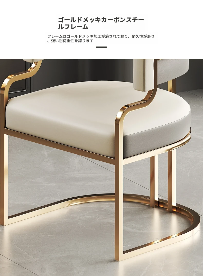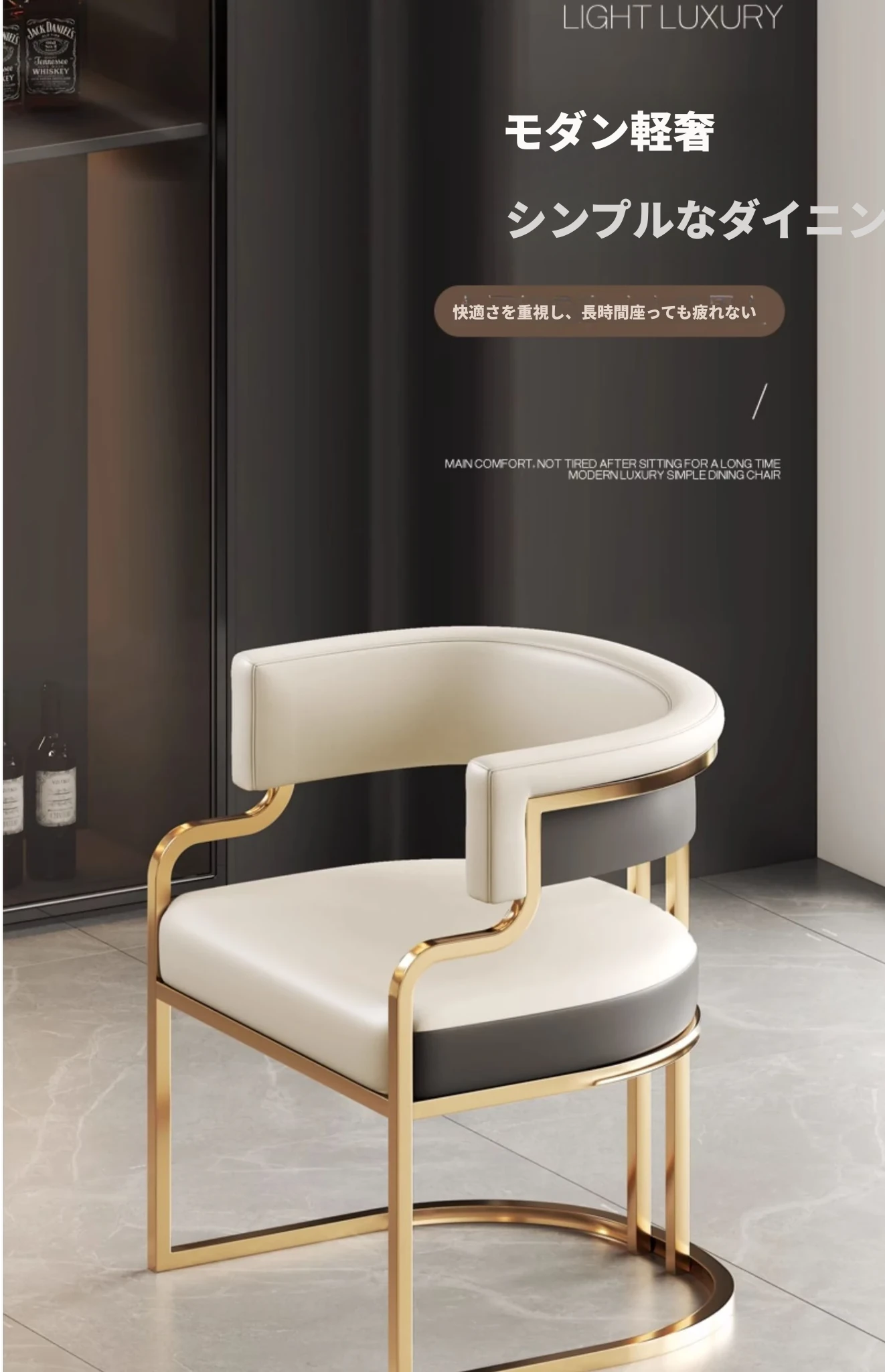 高級感あふれる軽奢ダイニングチェア|ホテルや美容院、展示場に最適なエレガントなデザイン|お客様を特別にお迎えするための美しい椅子!