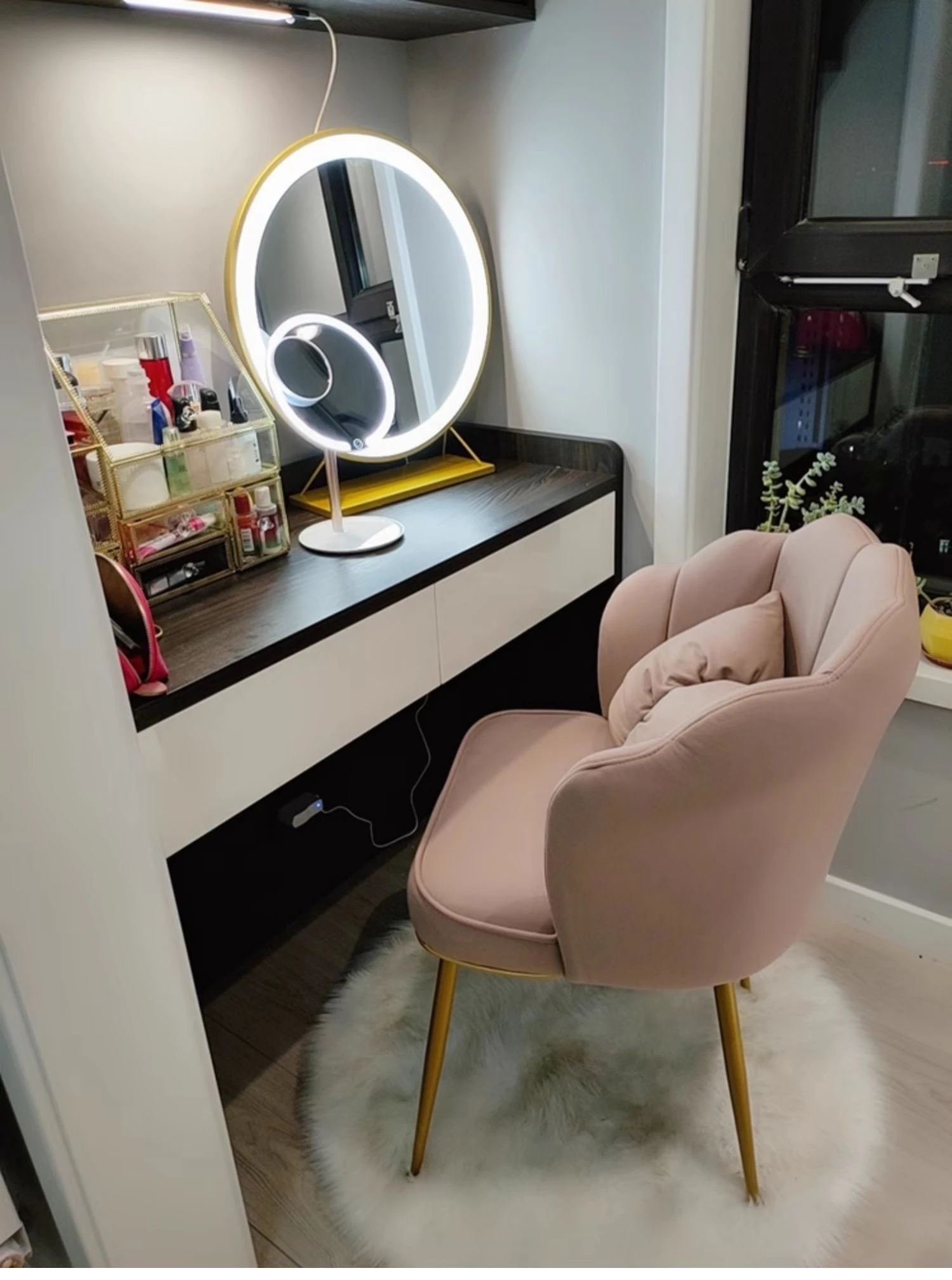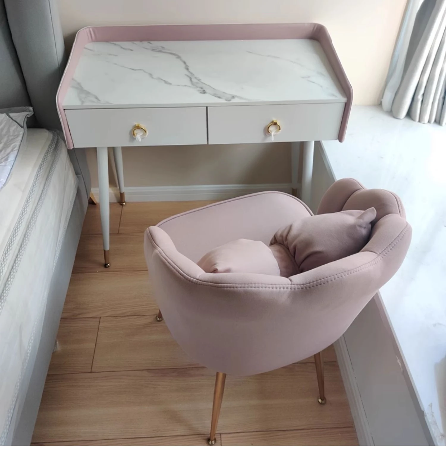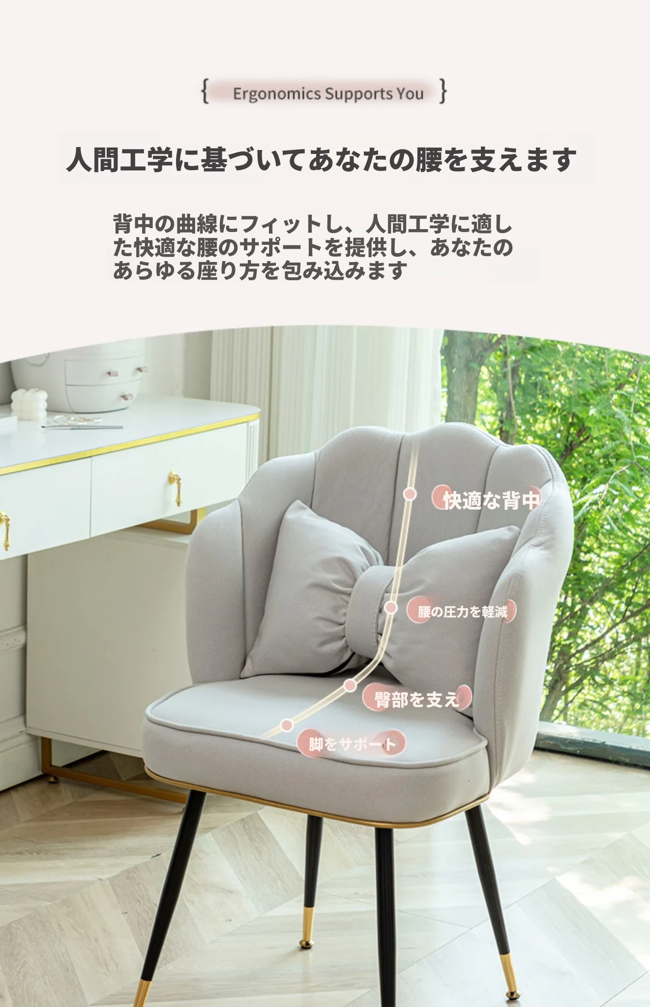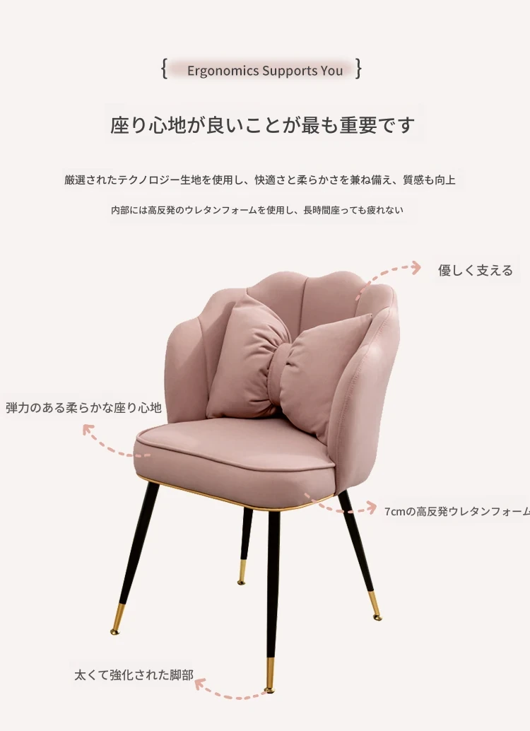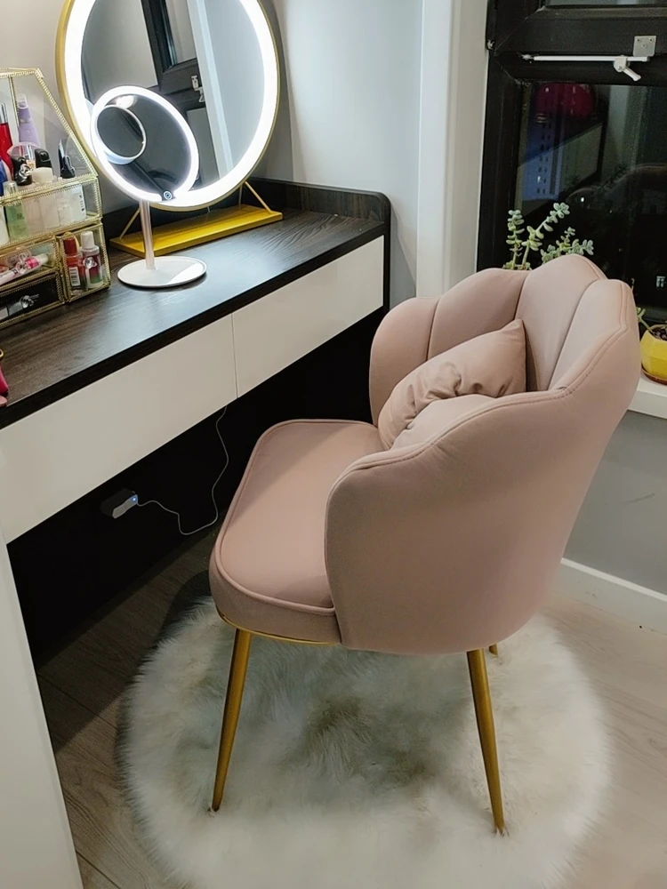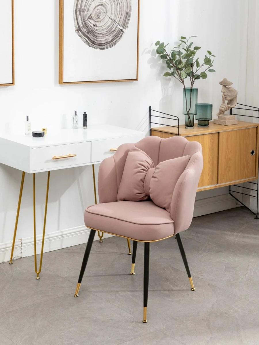 おしゃれな化粧台用椅子!プリンセスピンクの軽奢デザイン、長時間座っても疲れにくい背もたれ付き。ネットで話題のクリエイティブなネイルチェアで、あなたのビューティー空間を格上げ!