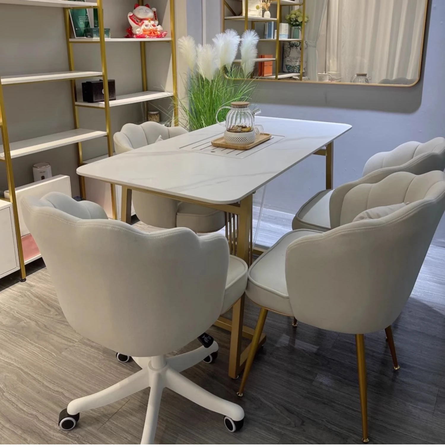 アイボリーの厚手防水テクノロジー布金色脚回転可能