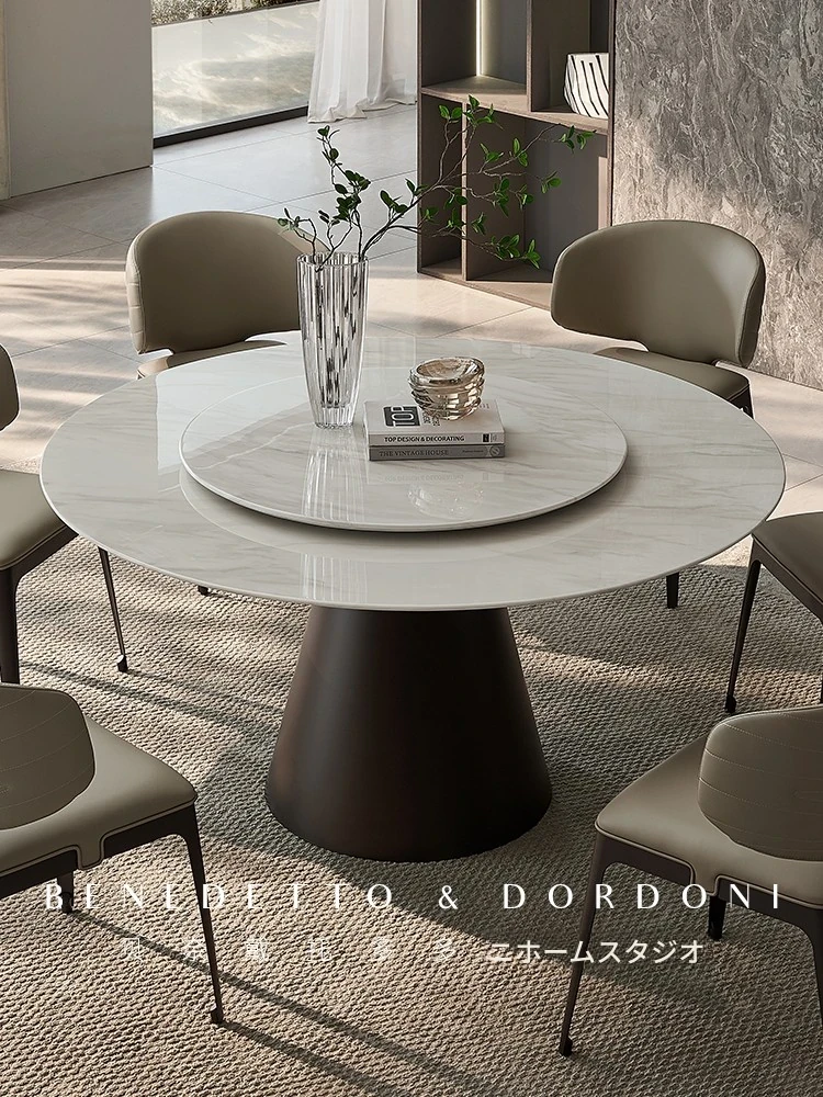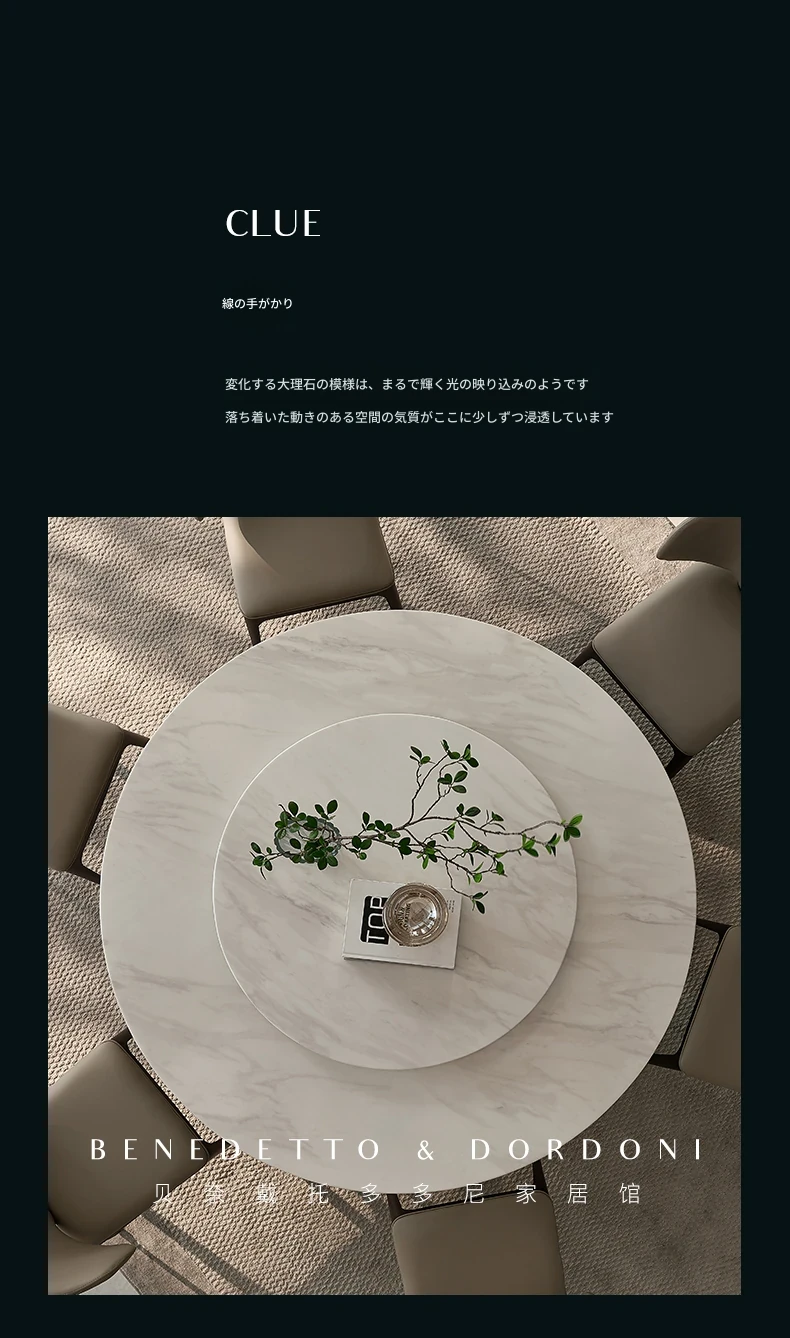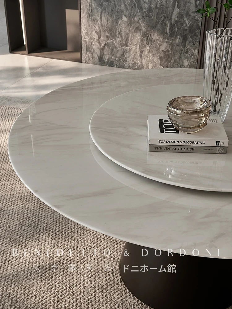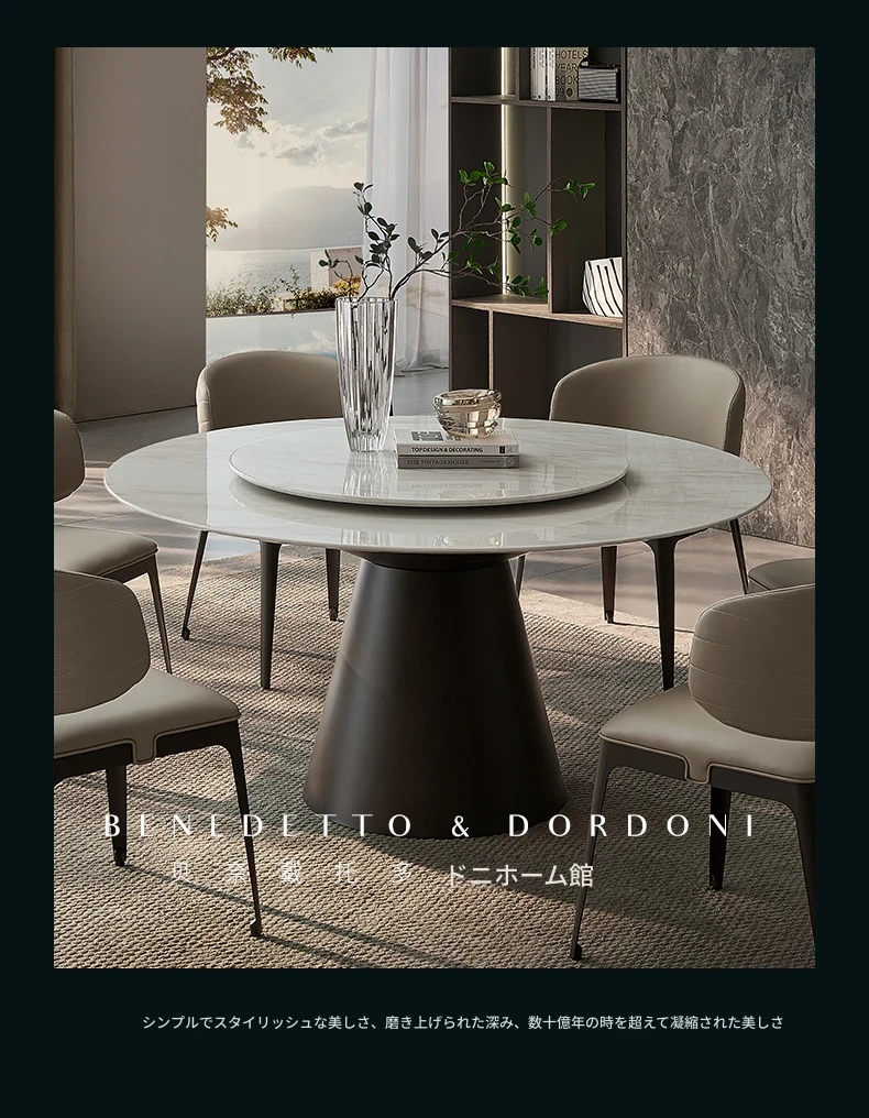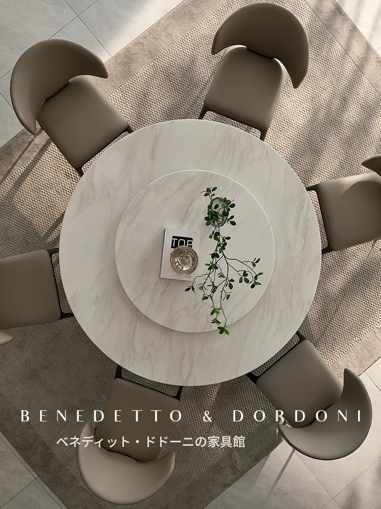 高級感あふれる大理石ラウンドテーブル - イタリアンミニマリズムデザインの2025年新作、別荘や家庭に最適な回転式ダイニングテーブル!