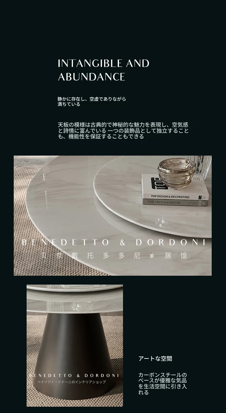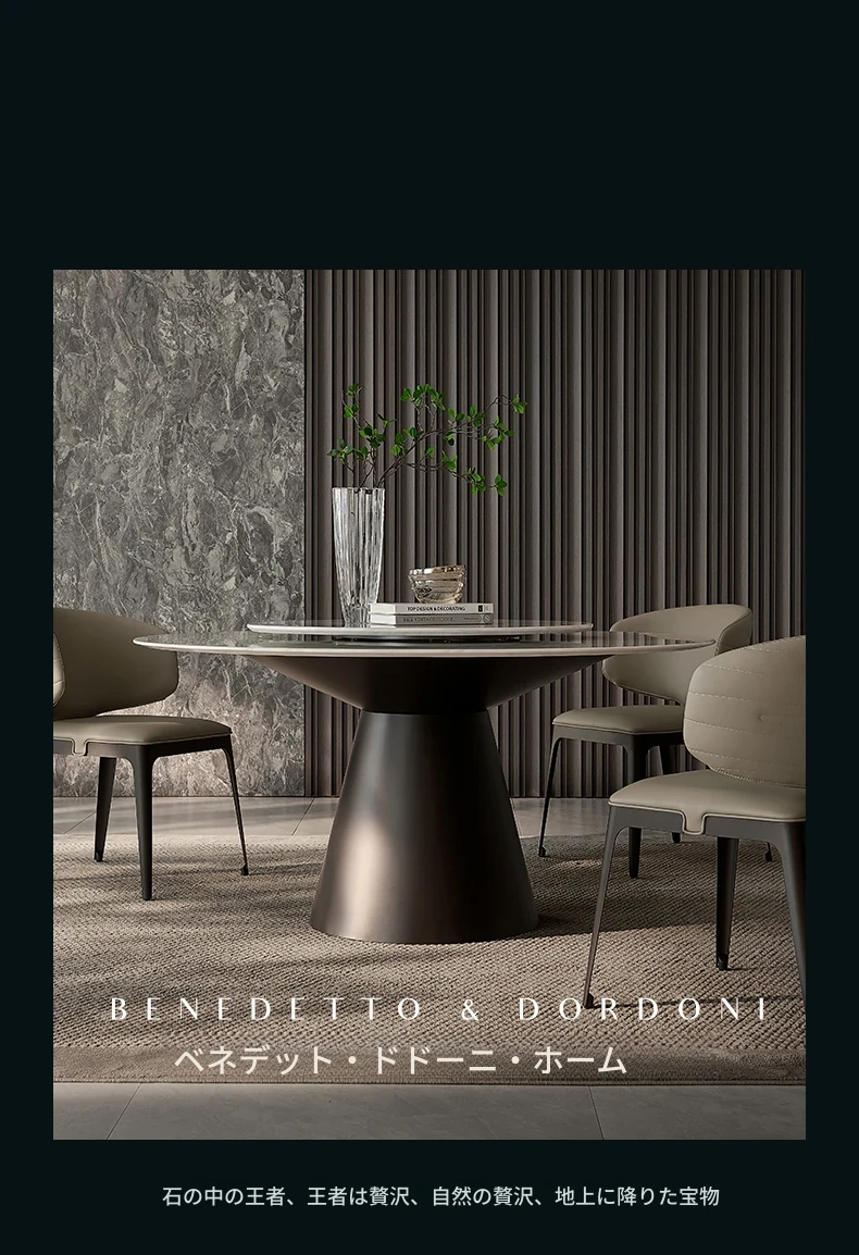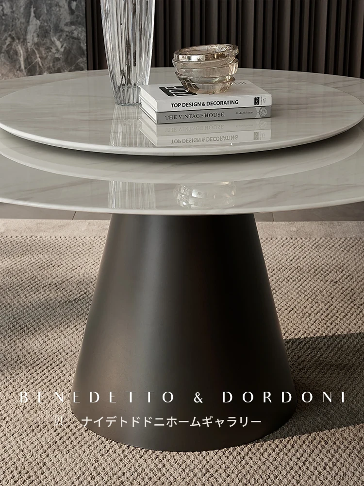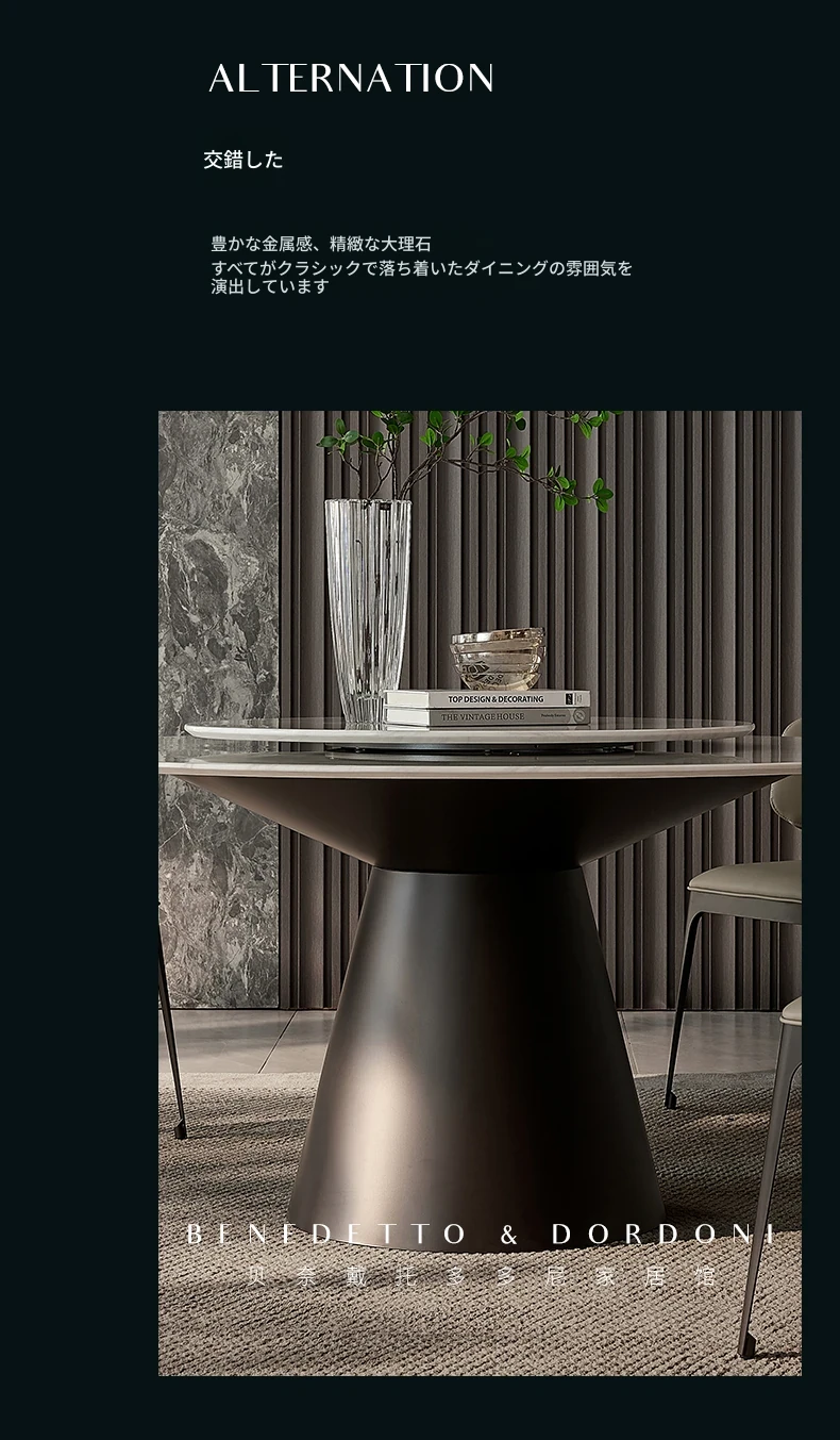 高級感あふれる大理石ラウンドテーブル - イタリアンミニマリズムデザインの2025年新作、別荘や家庭に最適な回転式ダイニングテーブル!
