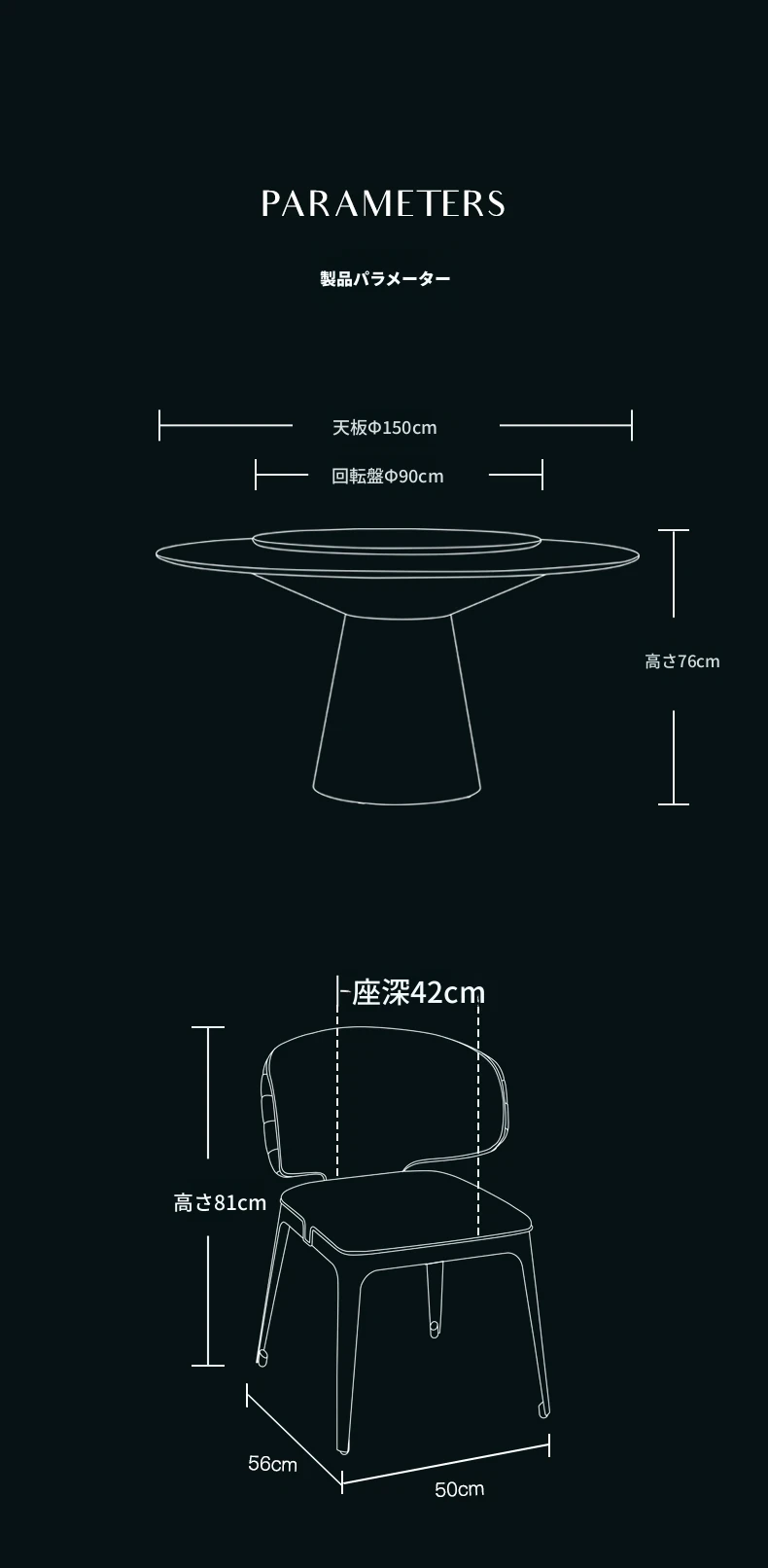 大理石のダイニングテーブル1.5メートル回転盤付き+ダイニングチェア*8