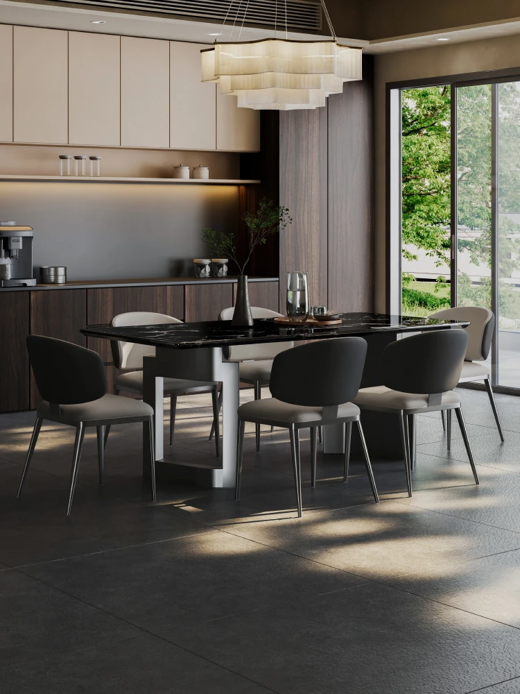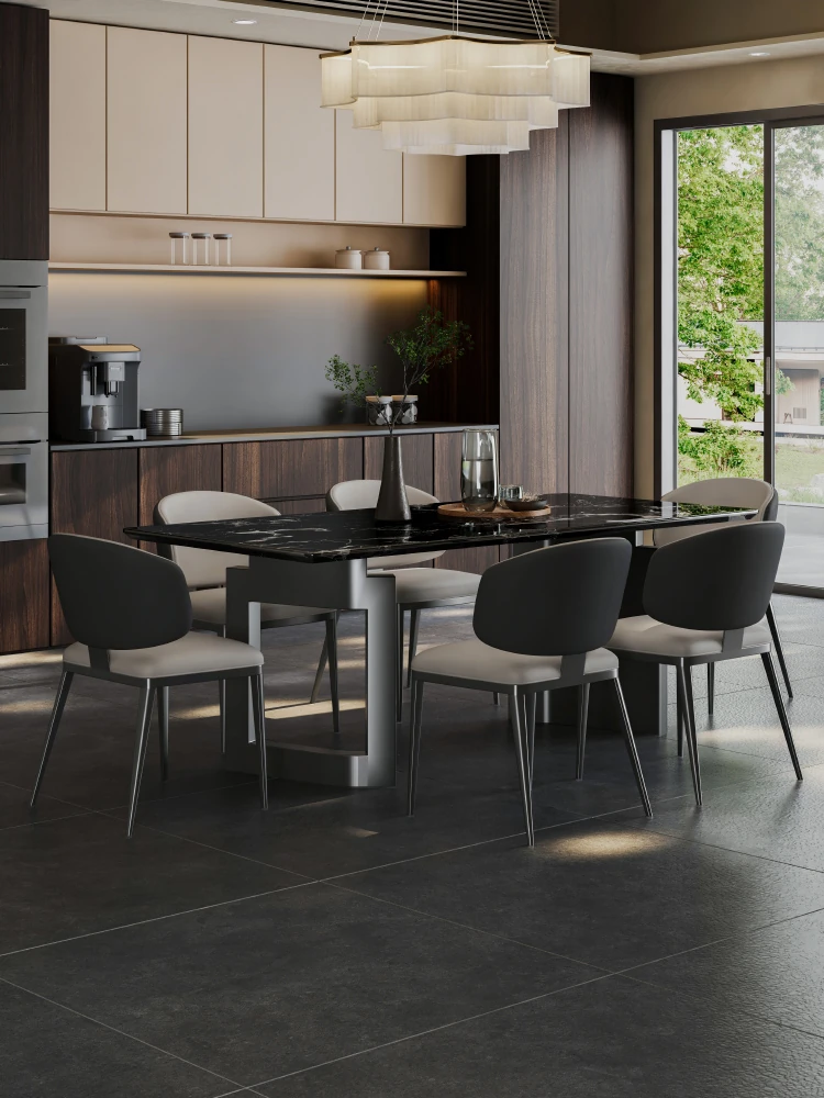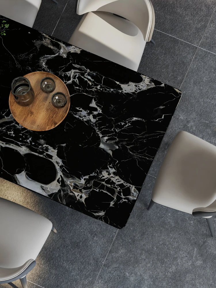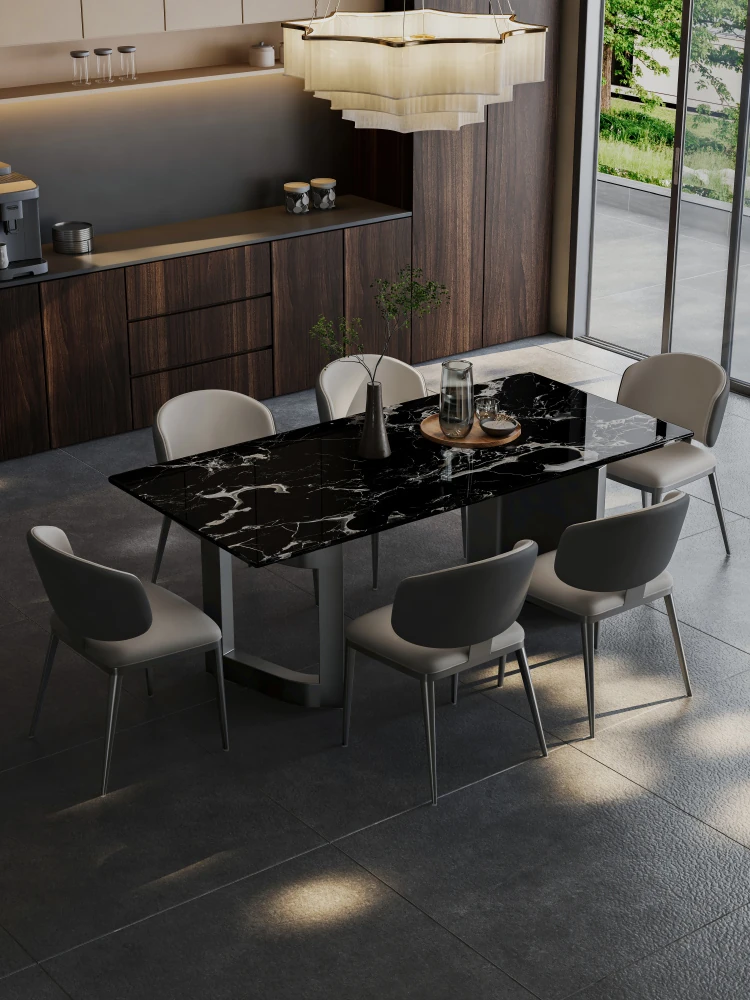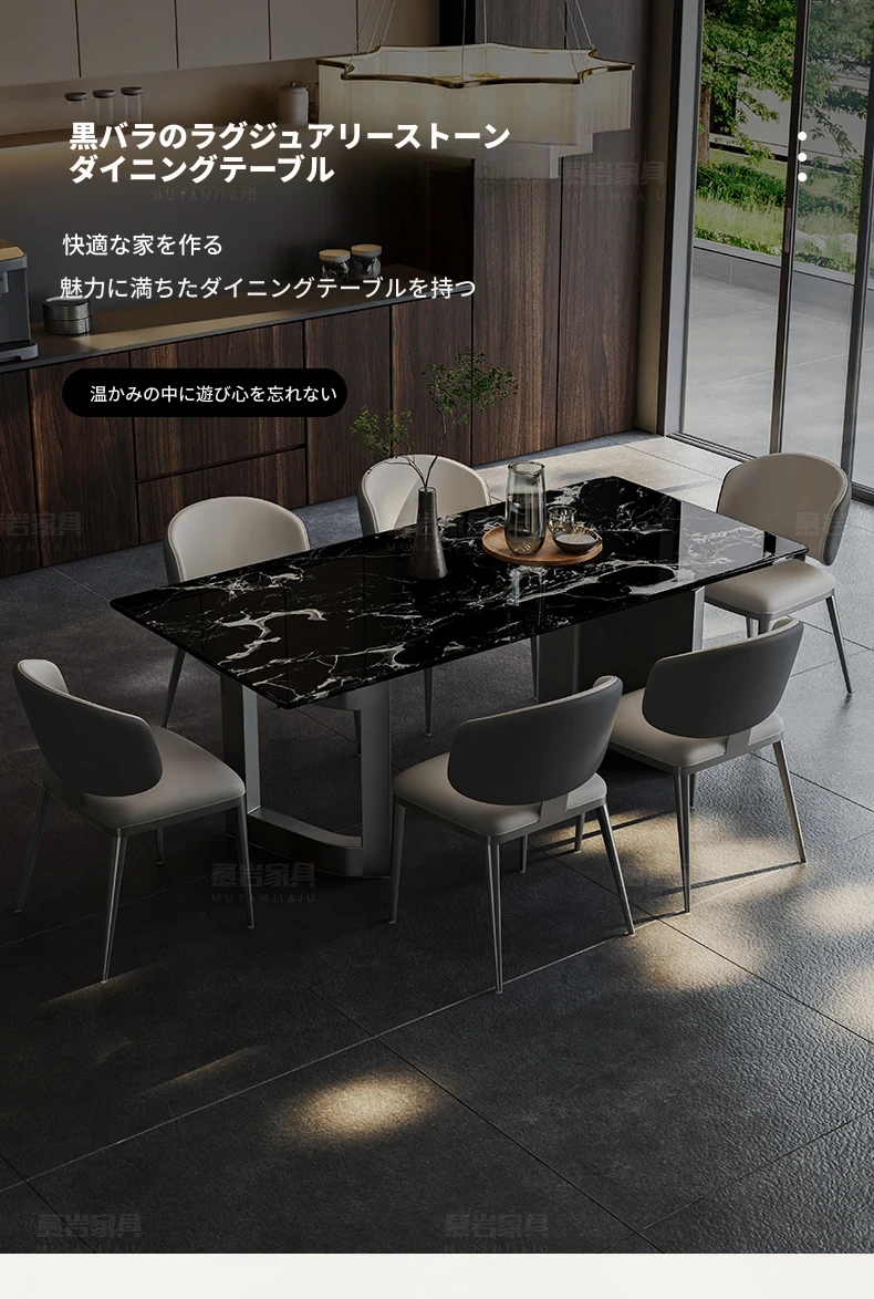 天然ブラックローズ大理石のダイニングテーブル - イタリアンミニマルデザインで高級感溢れる長方形テーブル。家庭用に最適で、洗練された空間を演出します。