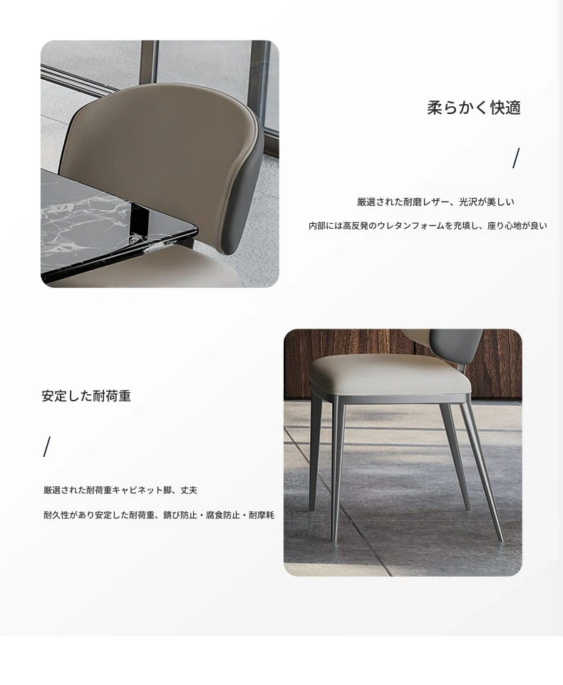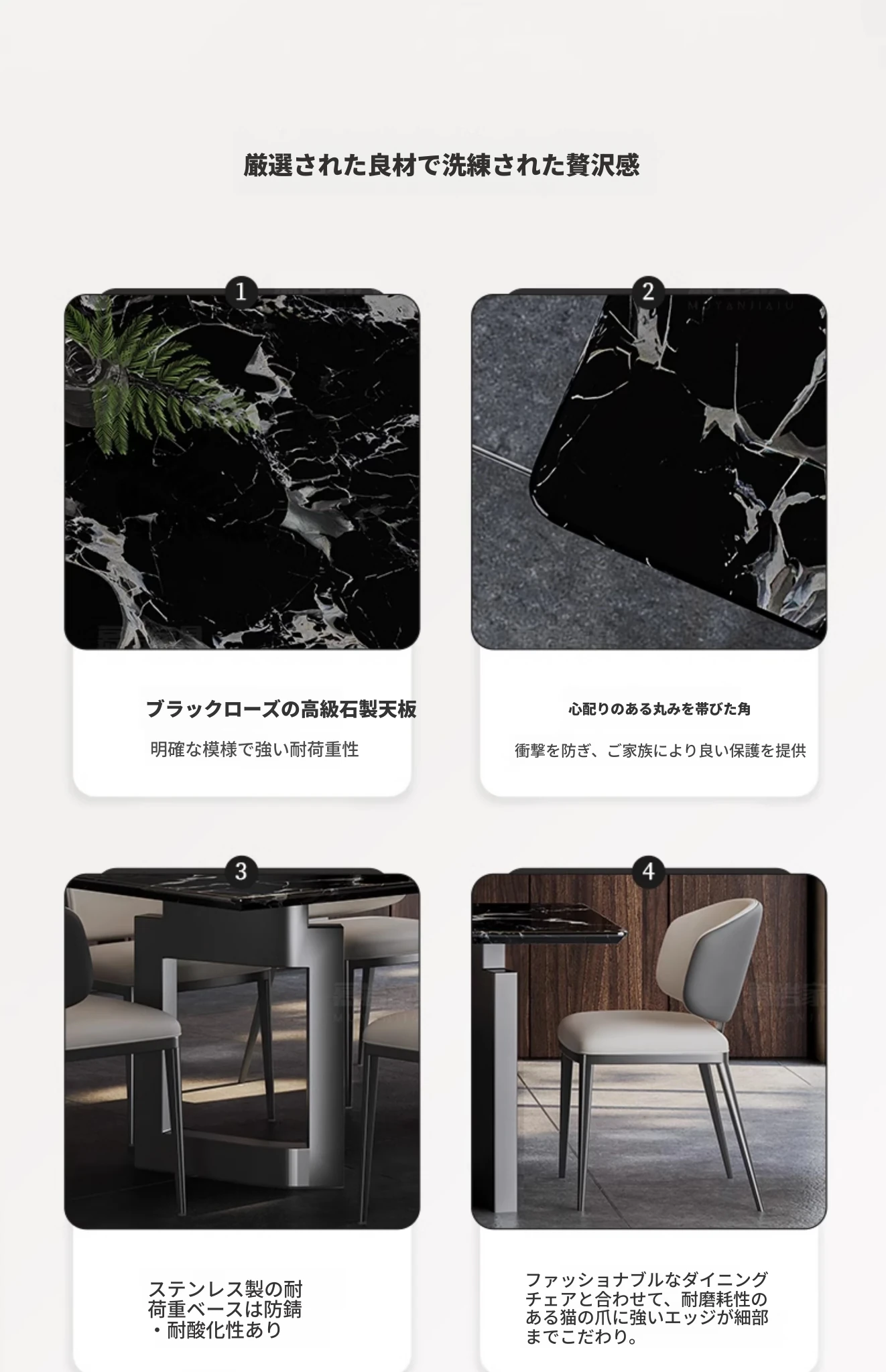 【Aランク】ブラックローズ天然豪華石製ダイニングテーブル+本革ダイニングチェア*4