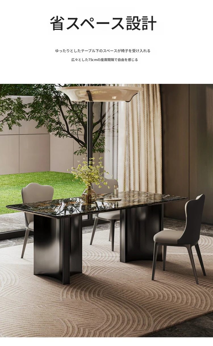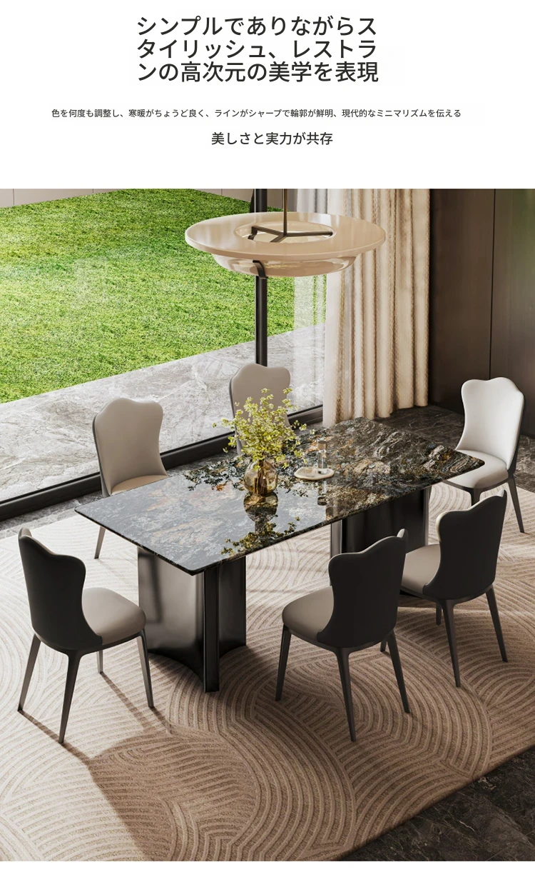 【A級輸入】プラチナダイヤモンド天然ラグジュアリーストーンダイニングテーブル【偽物は十倍の罰】+本革雲のようなダイニングチェア*6