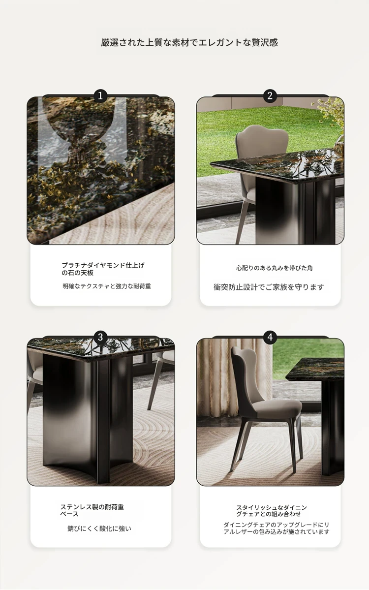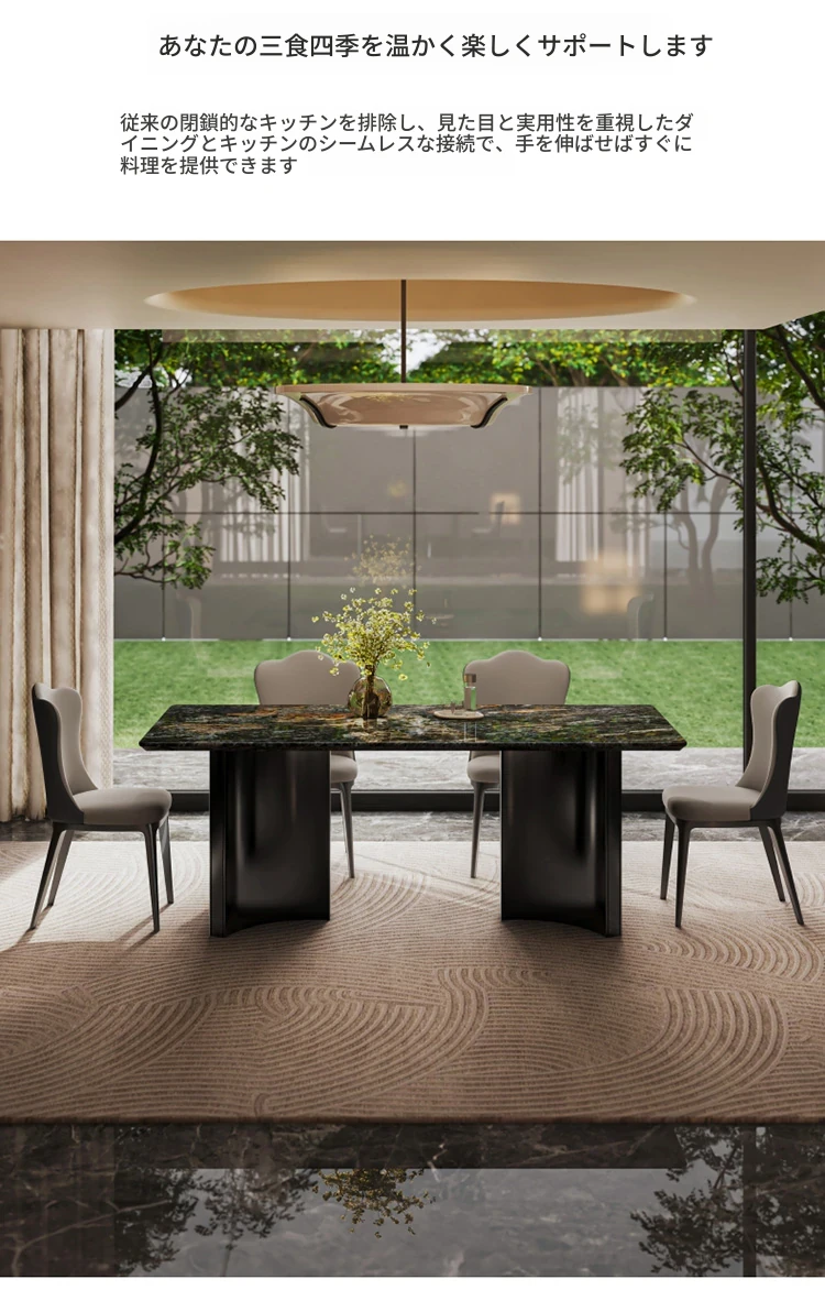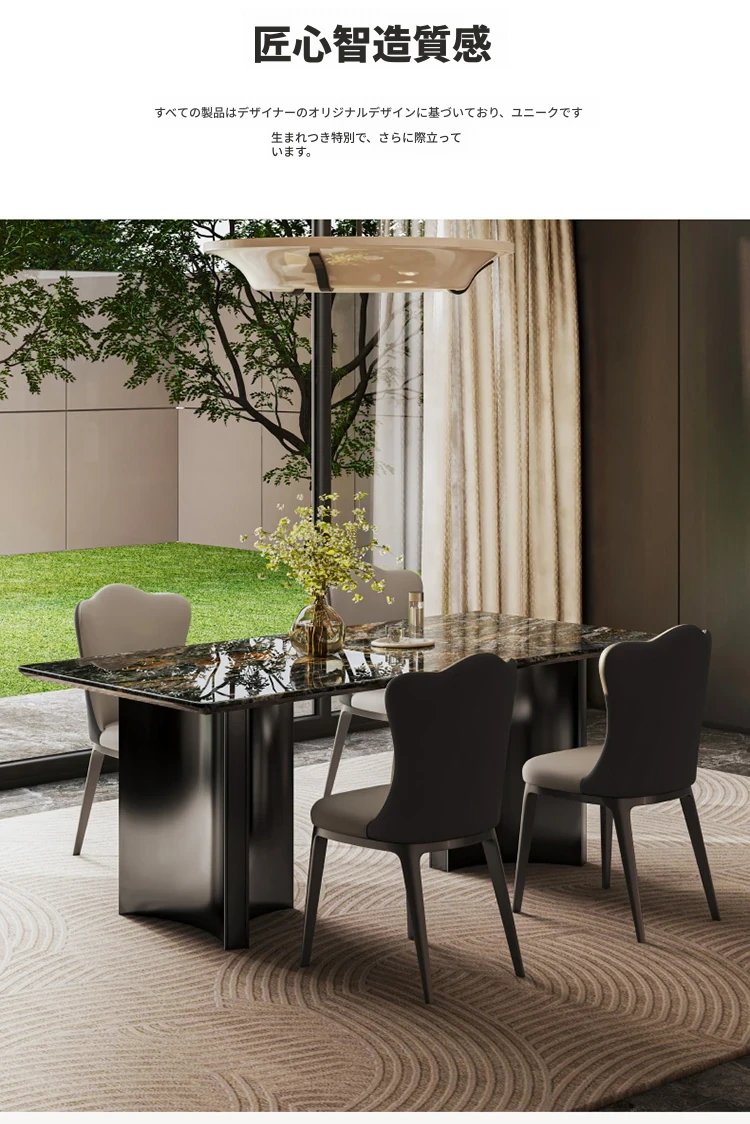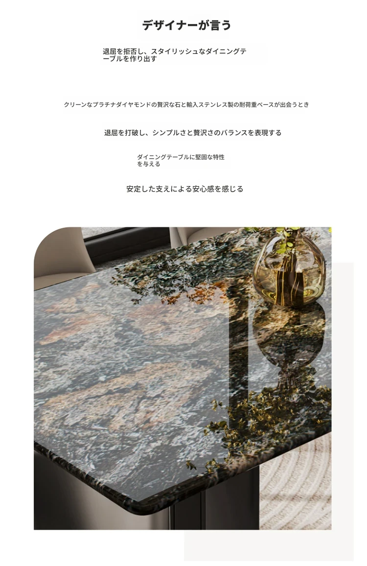 【A級輸入】プラチナダイヤモンド天然ラグジュアリーストーンダイニングテーブル【偽物は十倍の罰】+本革雲のようなダイニングチェア*4