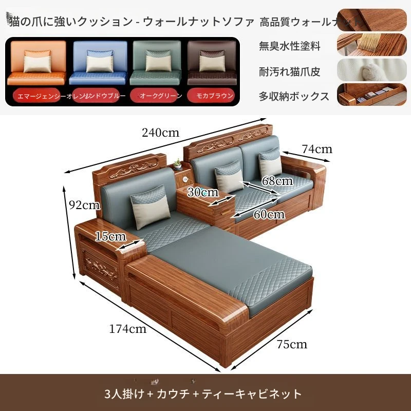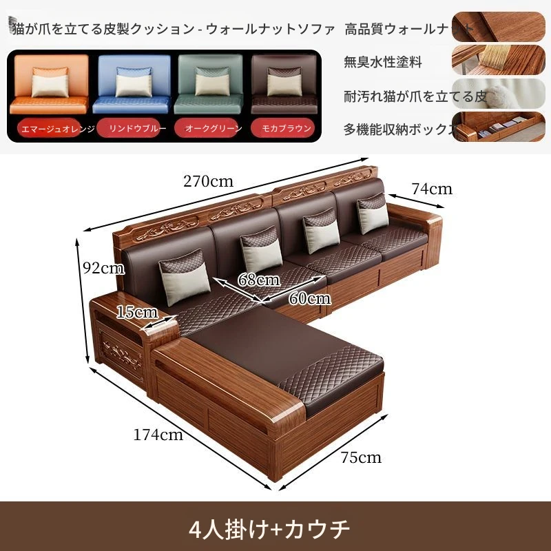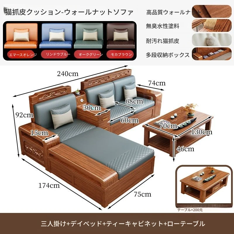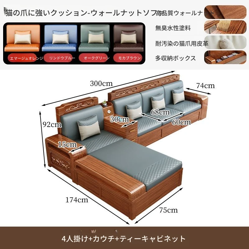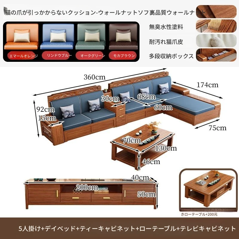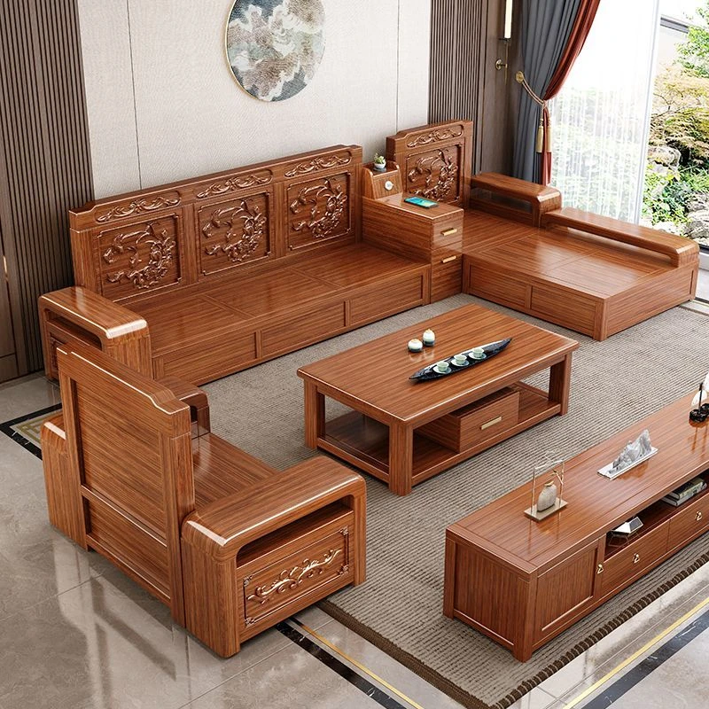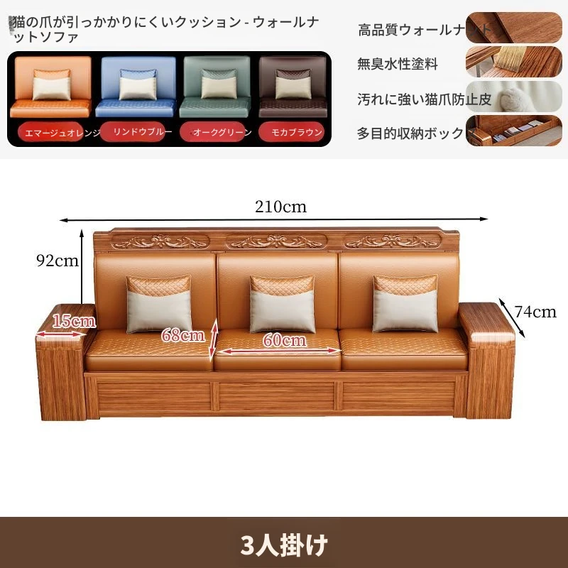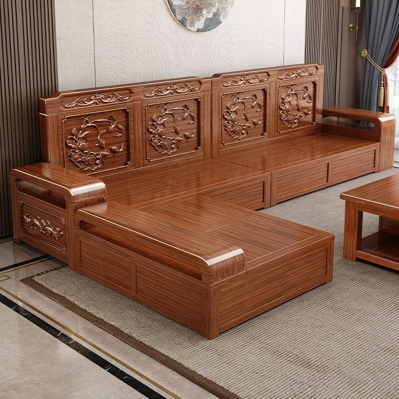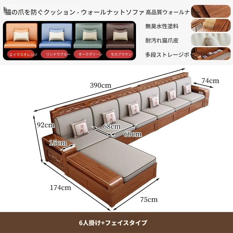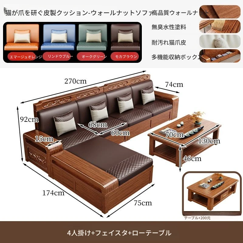 新中式デザインのウォールナット無垢材ソファセット - 大小様々なお部屋に最適、リビングと収納を兼ね備えた彫刻入り家具!快適なひとときを演出します。