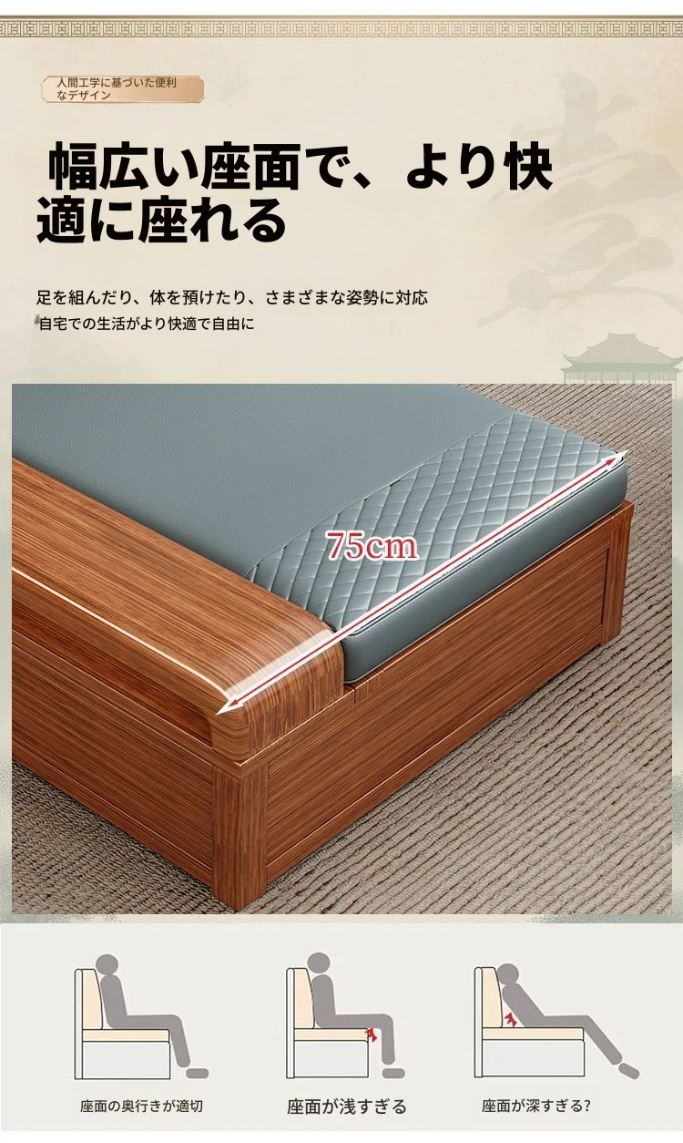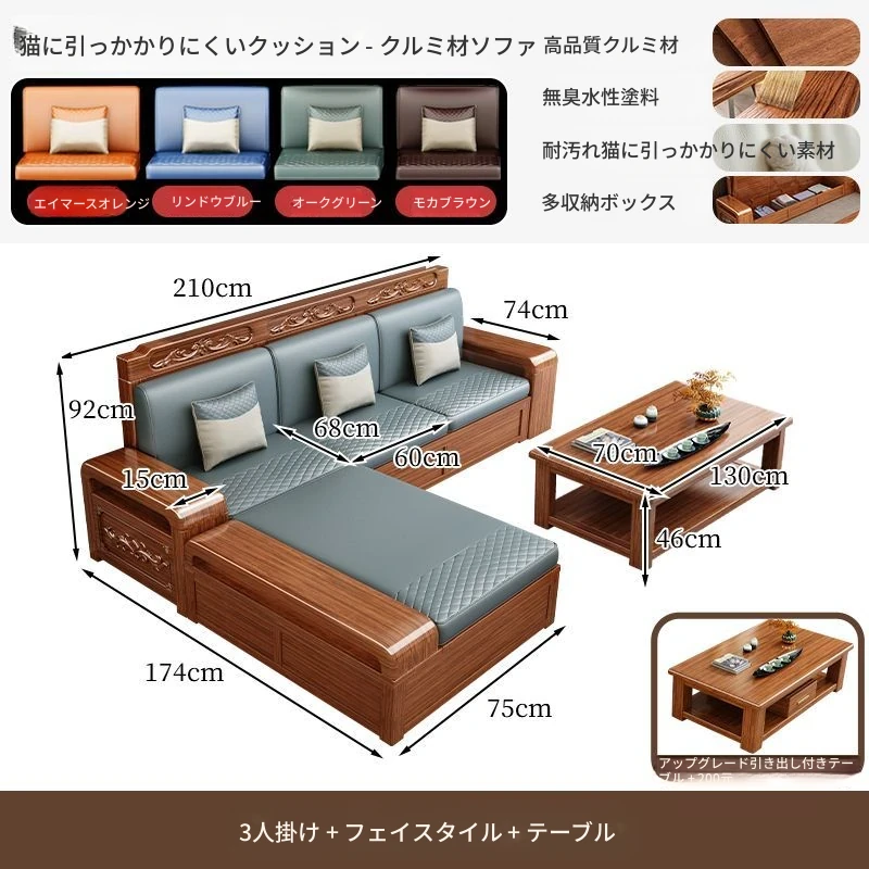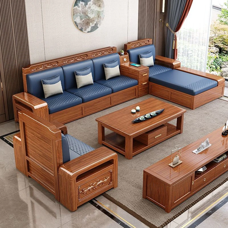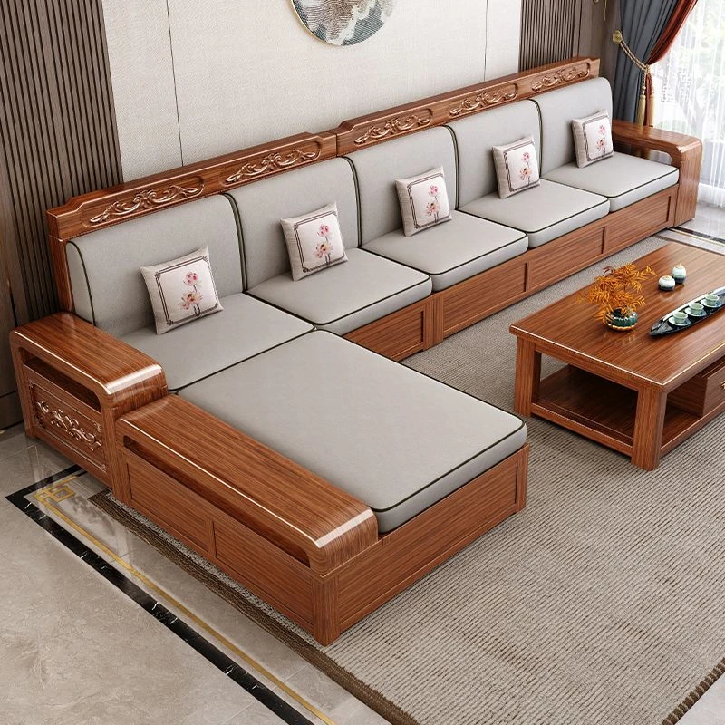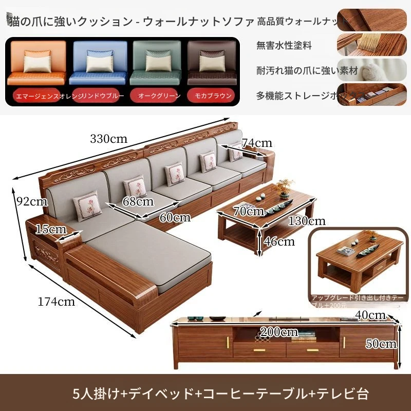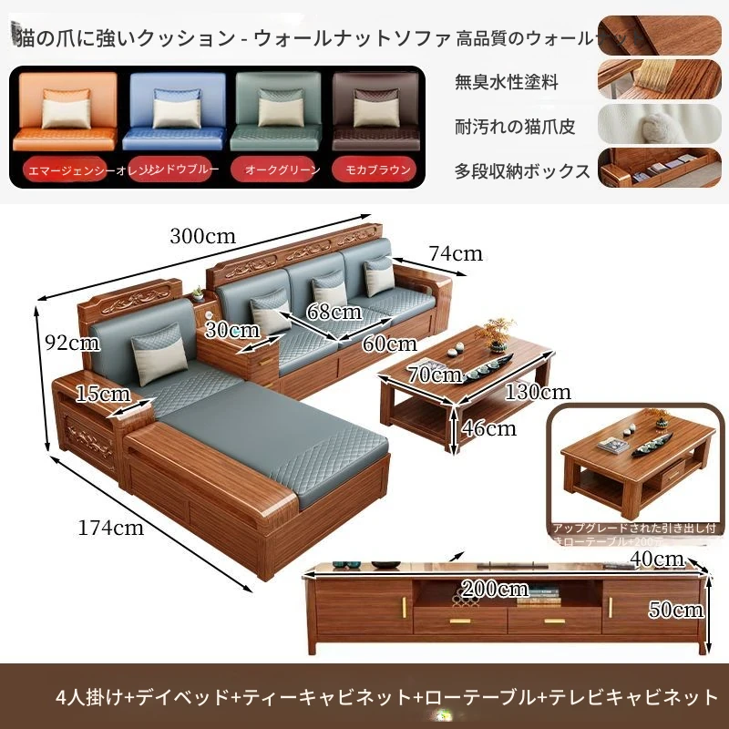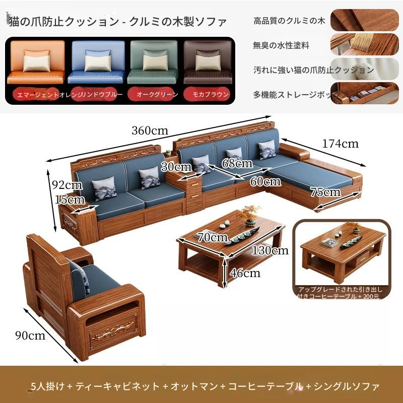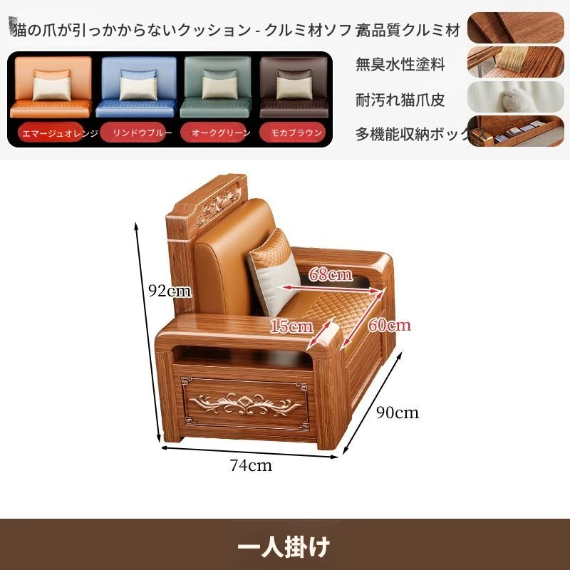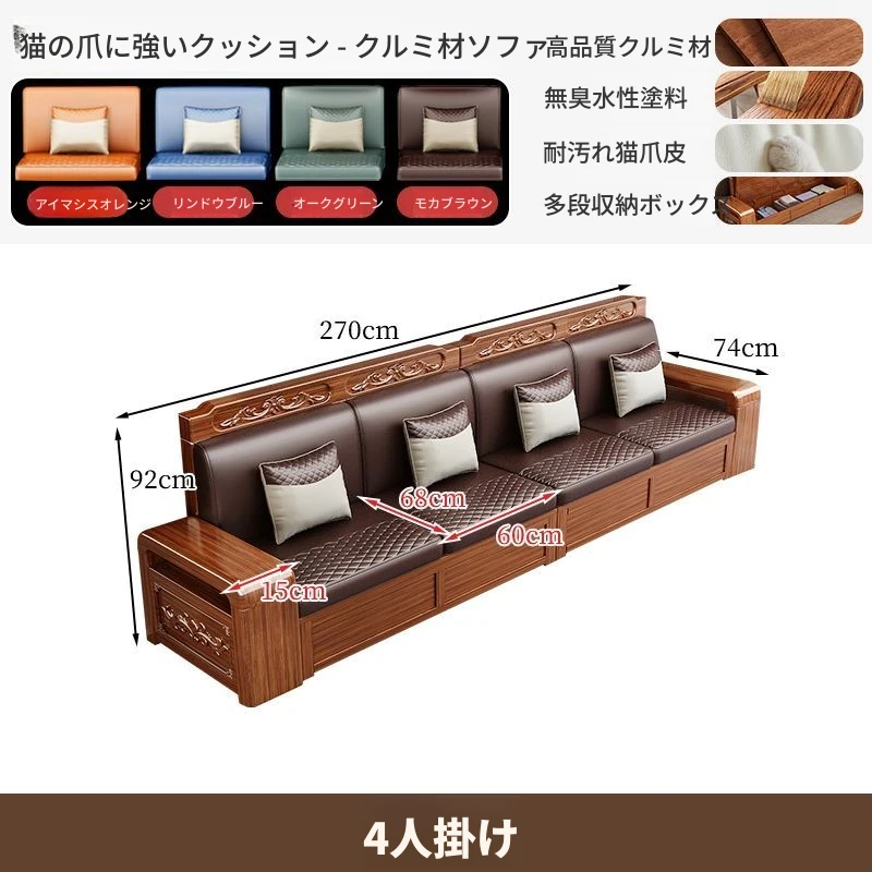 新中式デザインのウォールナット無垢材ソファセット - 大小様々なお部屋に最適、リビングと収納を兼ね備えた彫刻入り家具!快適なひとときを演出します。