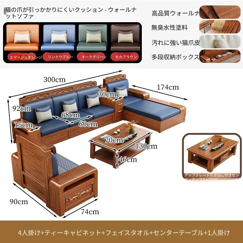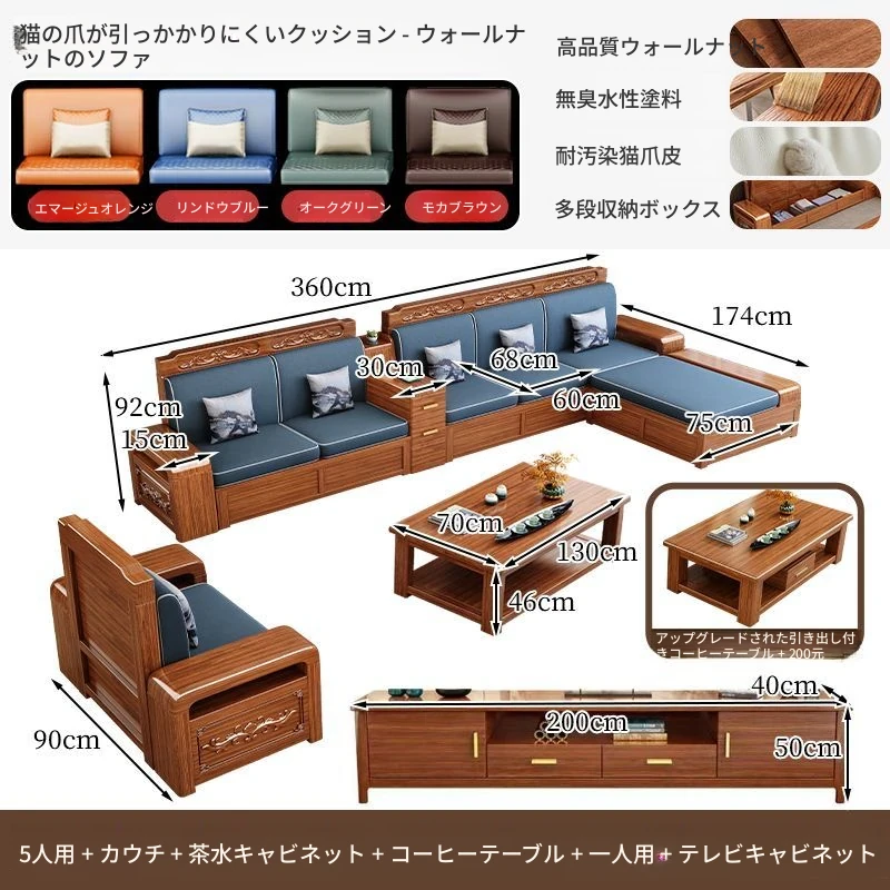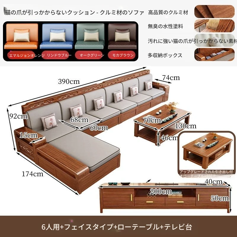 Z615#【五人掛け+ティーキャビネット+貴妃】+テーブルテレビキャビネット/綿麻-猫の爪研ぎ皮【二種類選択可】五センチクッション