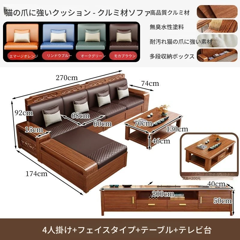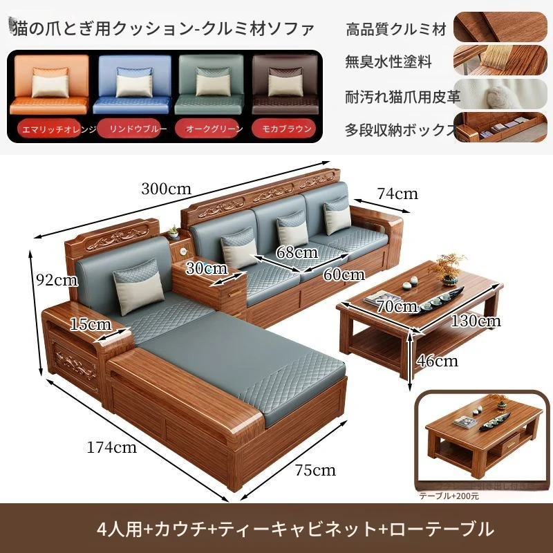 【四人掛け+ティーキャビネット+貴妃+ユニット+テーブルテレビキャビネット】/綿麻-猫の爪研ぎ皮【二種類選択可】五センチクッション