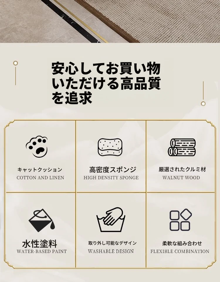 Z615#【四人掛け+ティーキャビネット+貴妃】+テーブル+ユニット/綿麻-猫の爪研ぎ皮【二種類選択可】五センチクッション