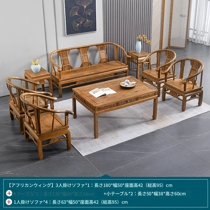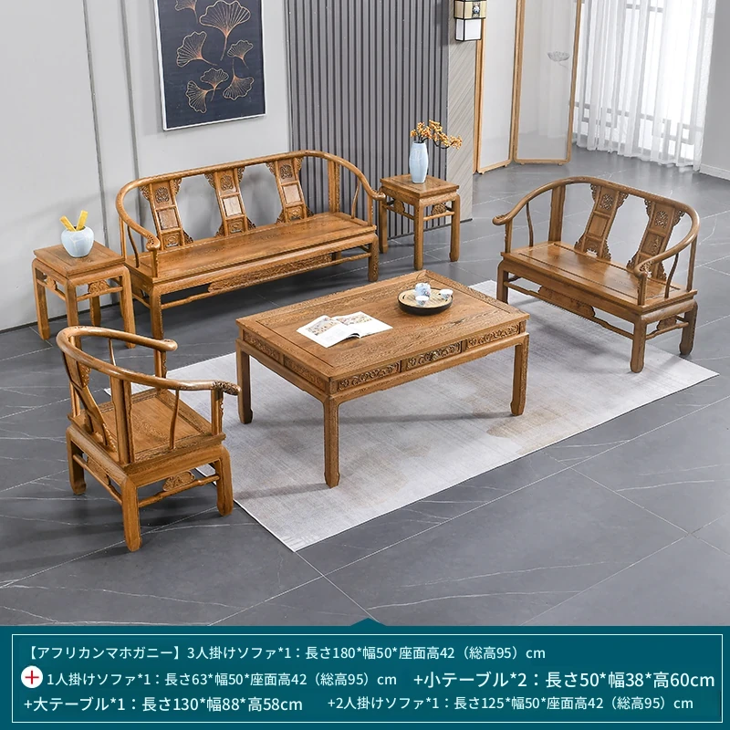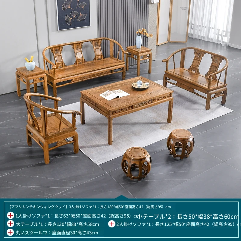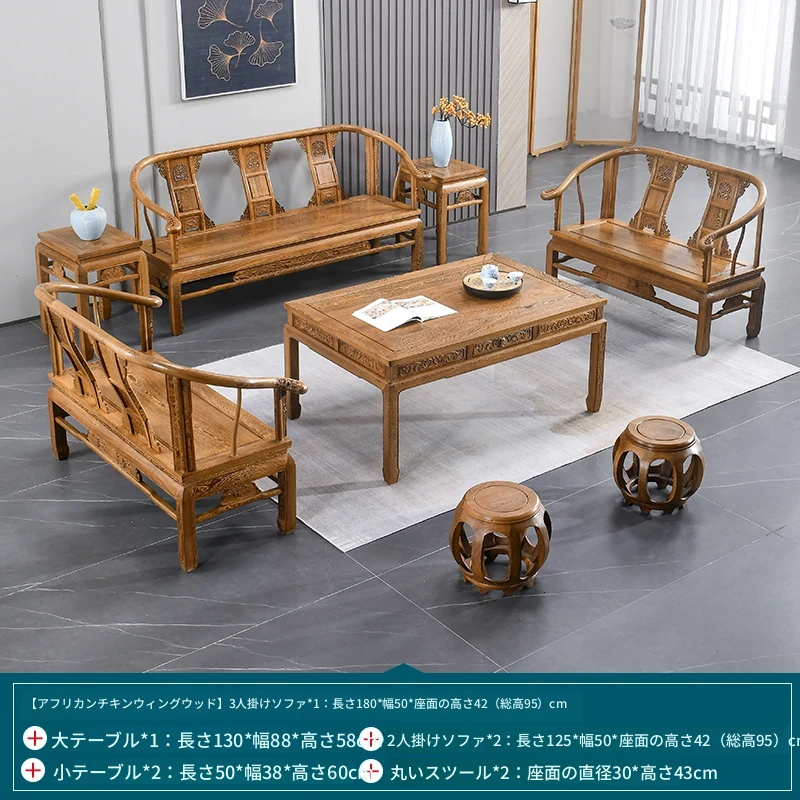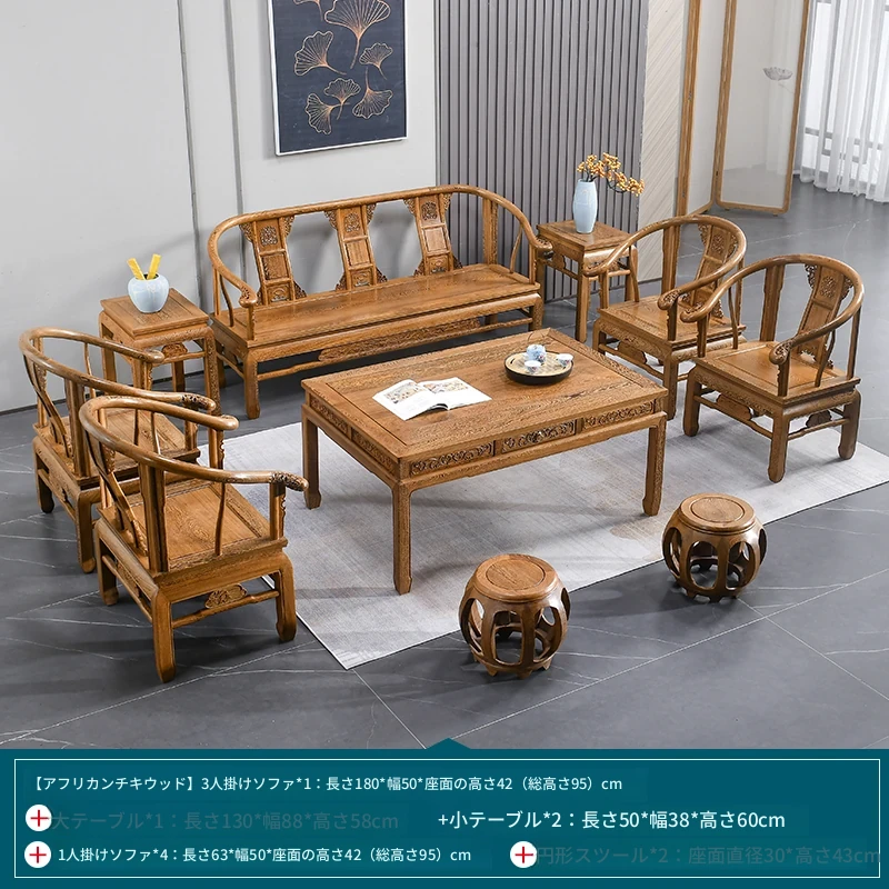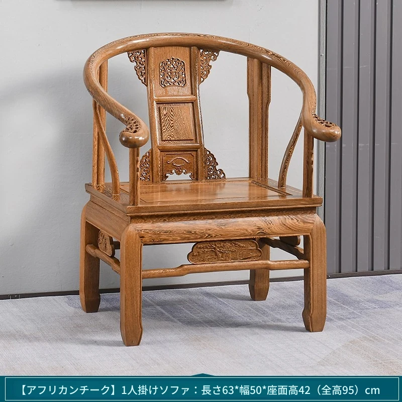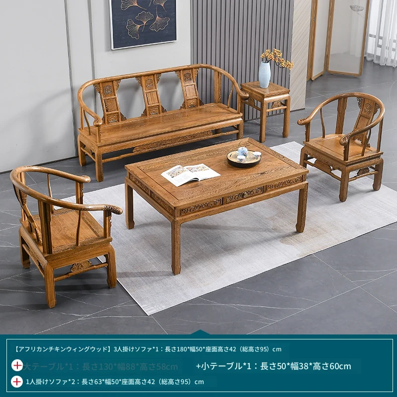 高級紅木家具!チーク材のソファセット、シンプルな全木製デザイン。新中式スタイルの小型住宅にもぴったりの原木ソファとサークルチェア。リビングに最適な洗練された雰囲気を演出します!