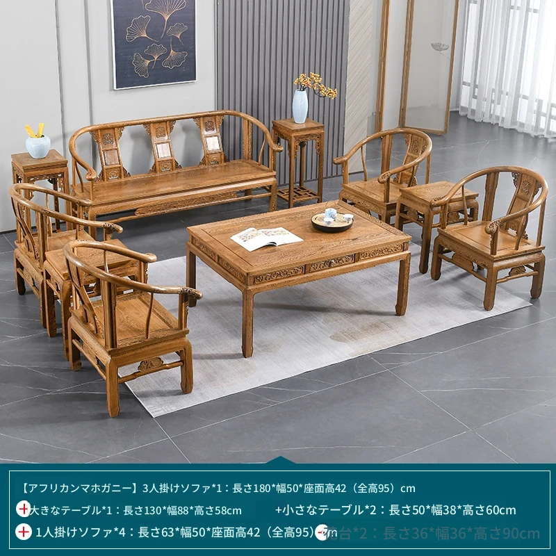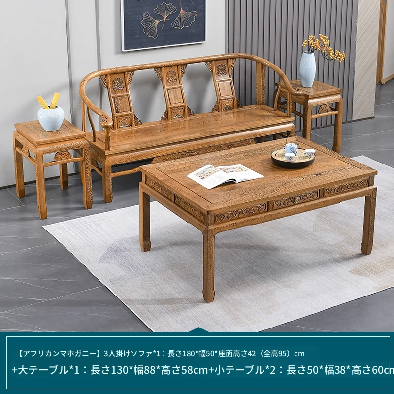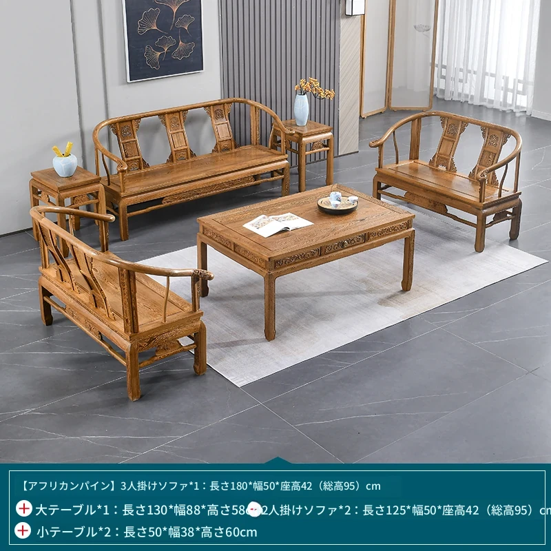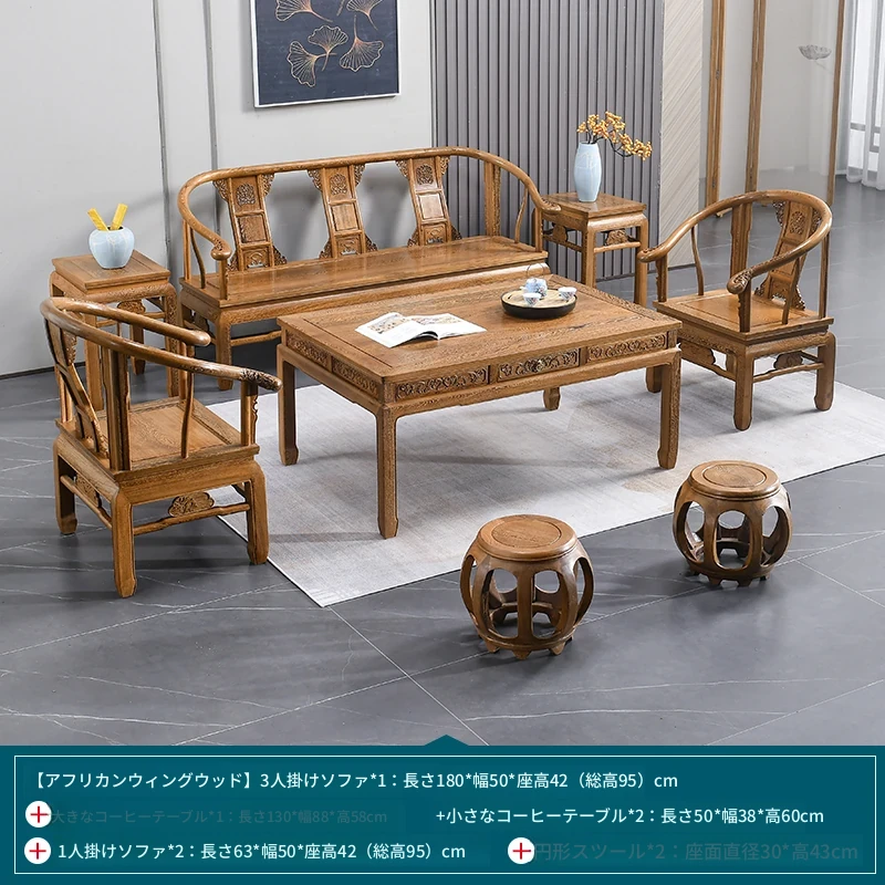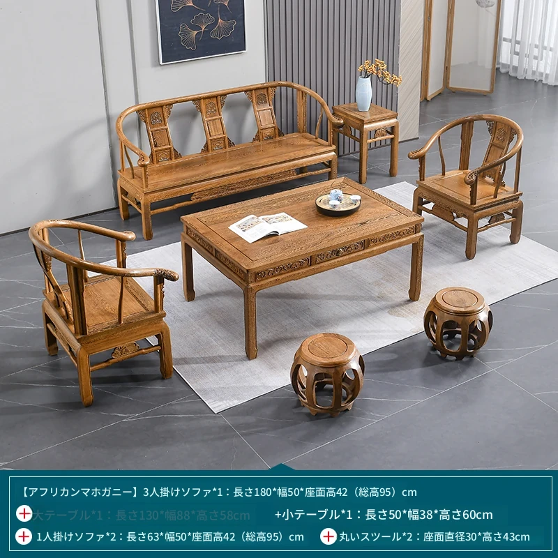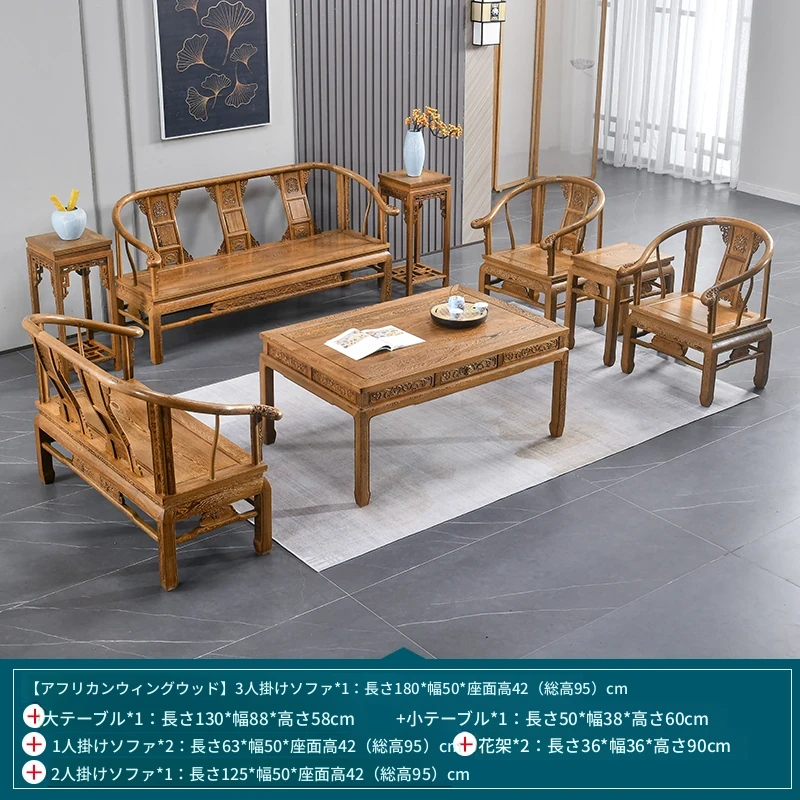 高級紅木家具!チーク材のソファセット、シンプルな全木製デザイン。新中式スタイルの小型住宅にもぴったりの原木ソファとサークルチェア。リビングに最適な洗練された雰囲気を演出します!