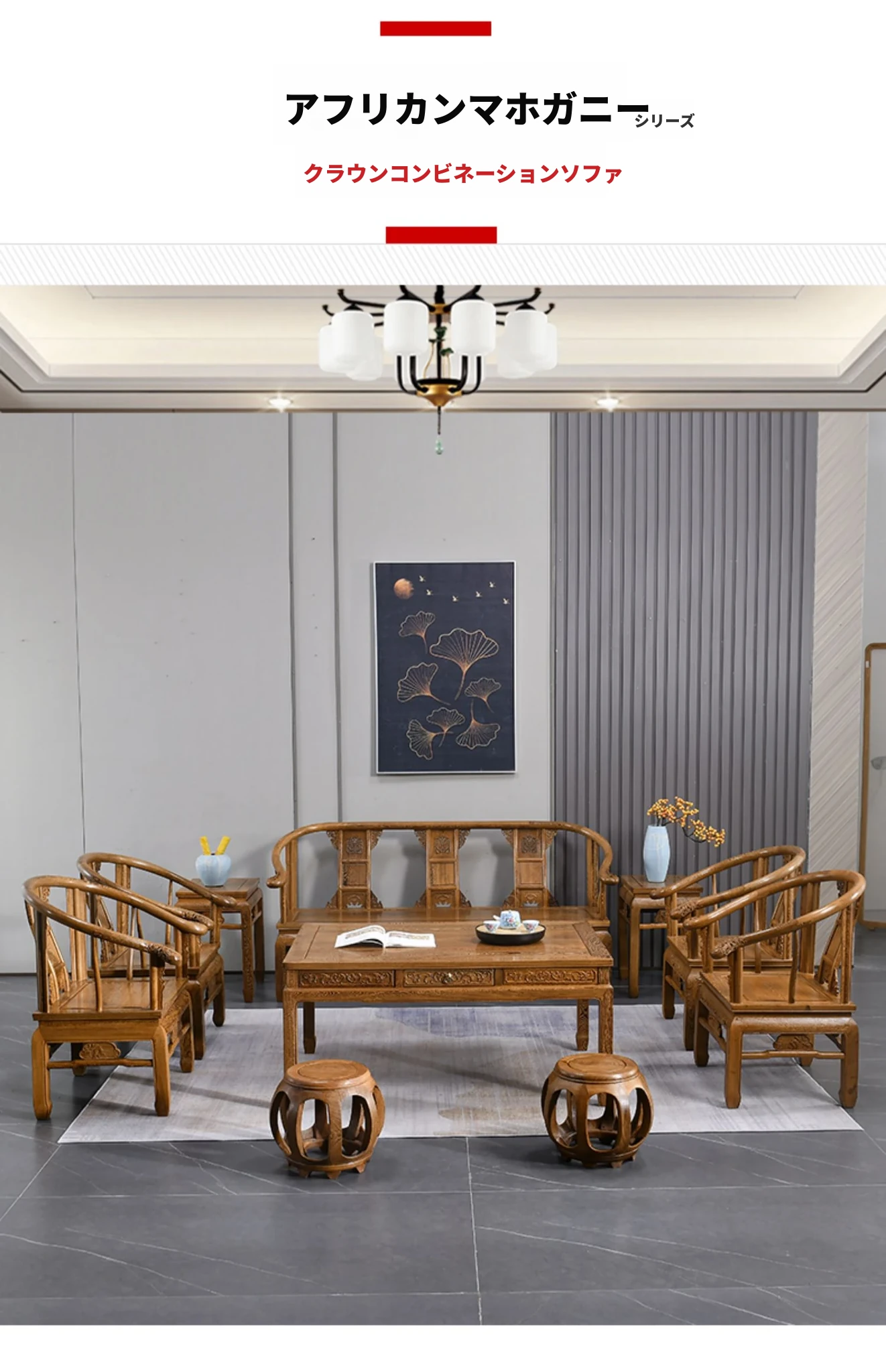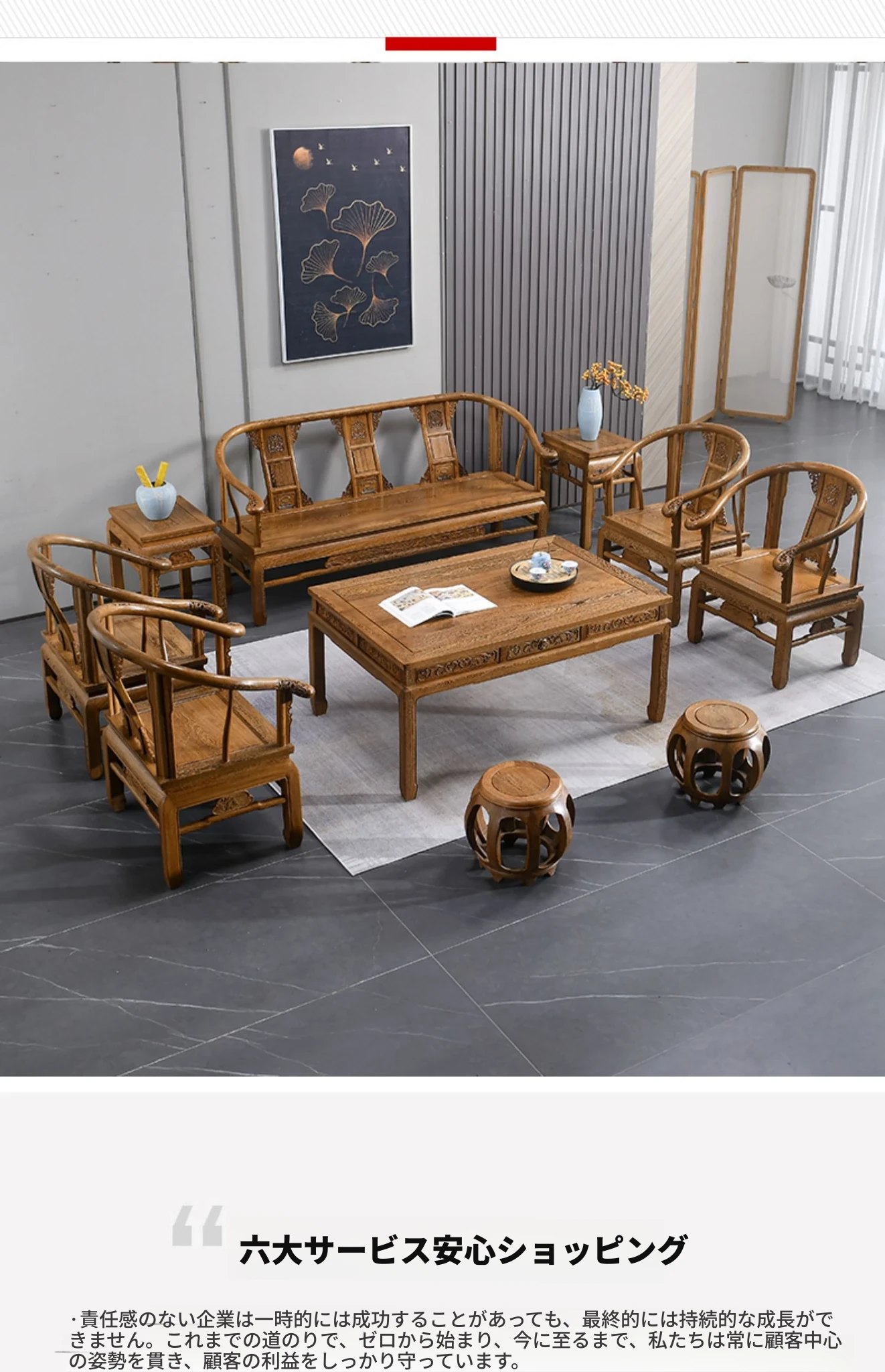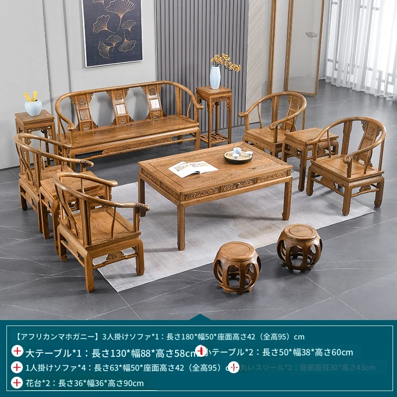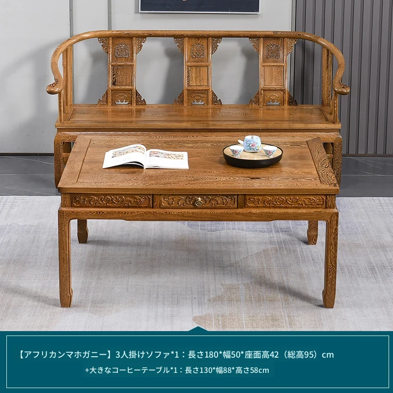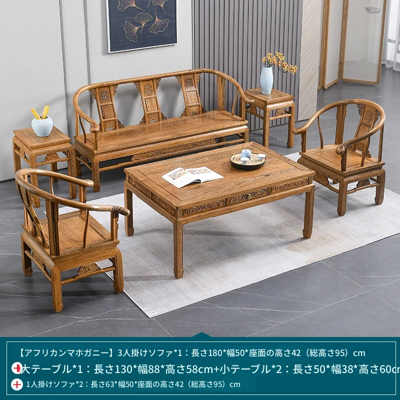 高級紅木家具!チーク材のソファセット、シンプルな全木製デザイン。新中式スタイルの小型住宅にもぴったりの原木ソファとサークルチェア。リビングに最適な洗練された雰囲気を演出します!