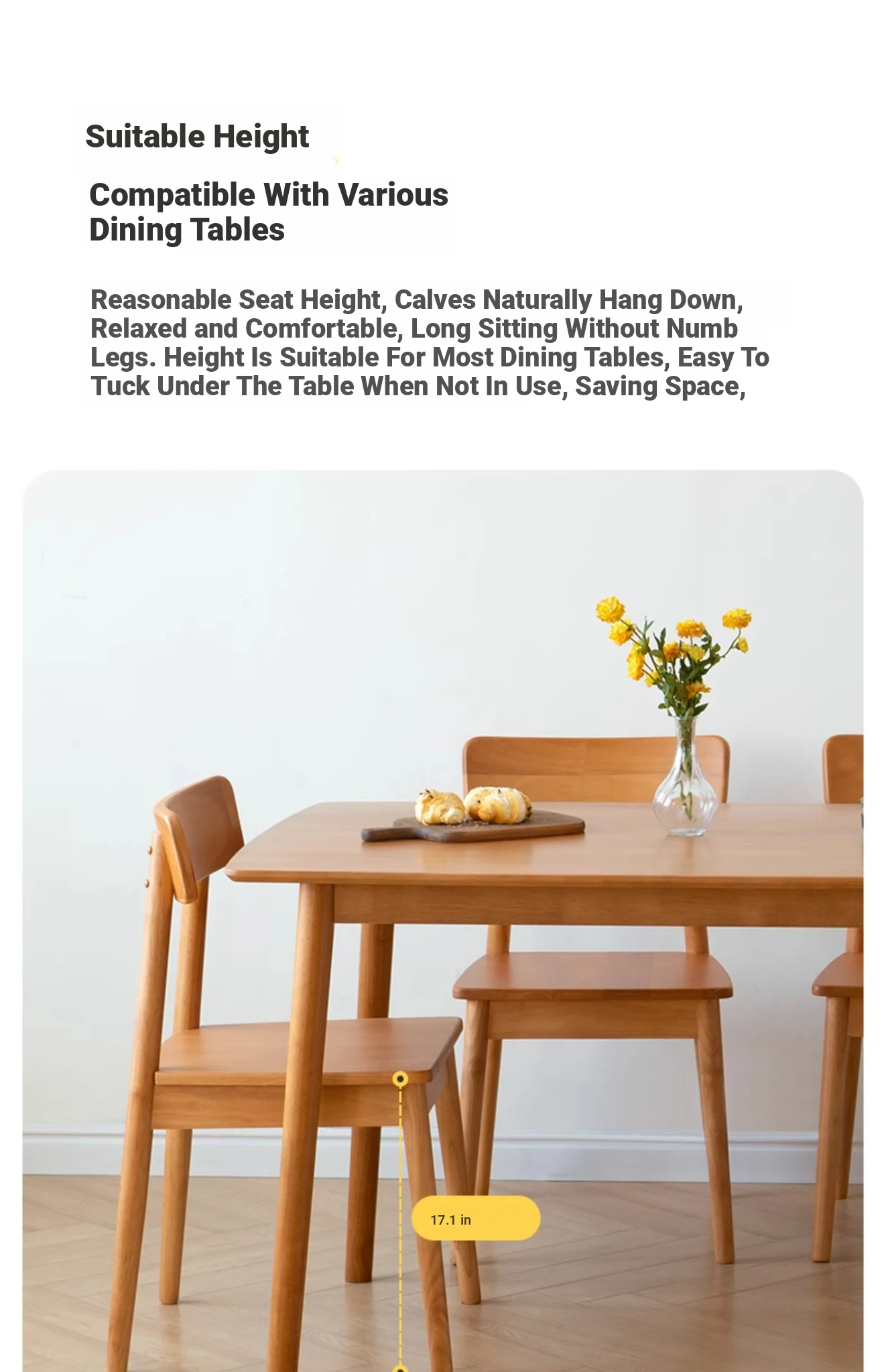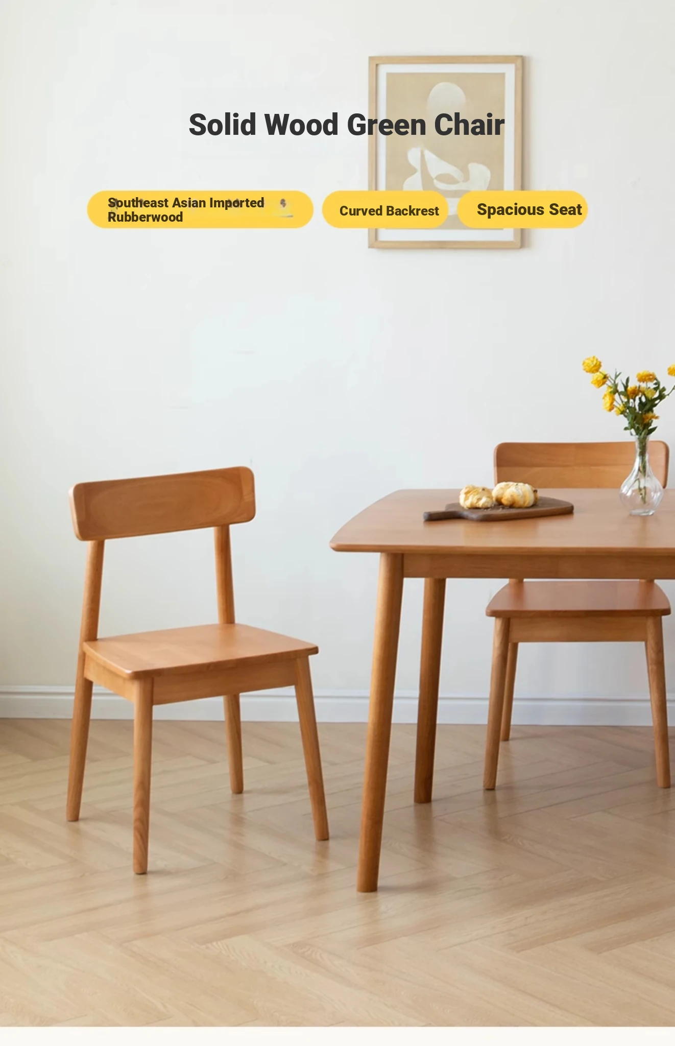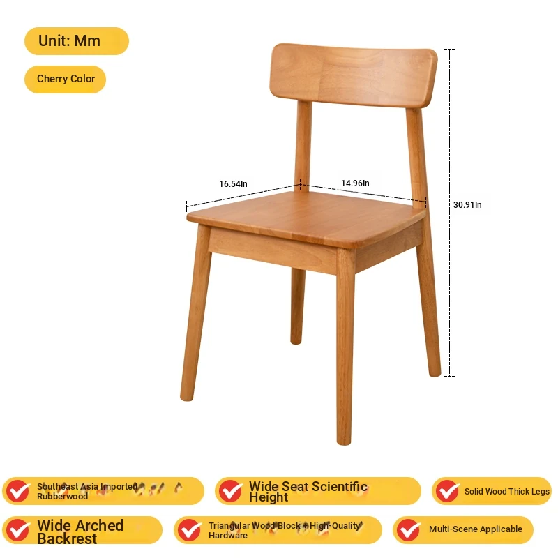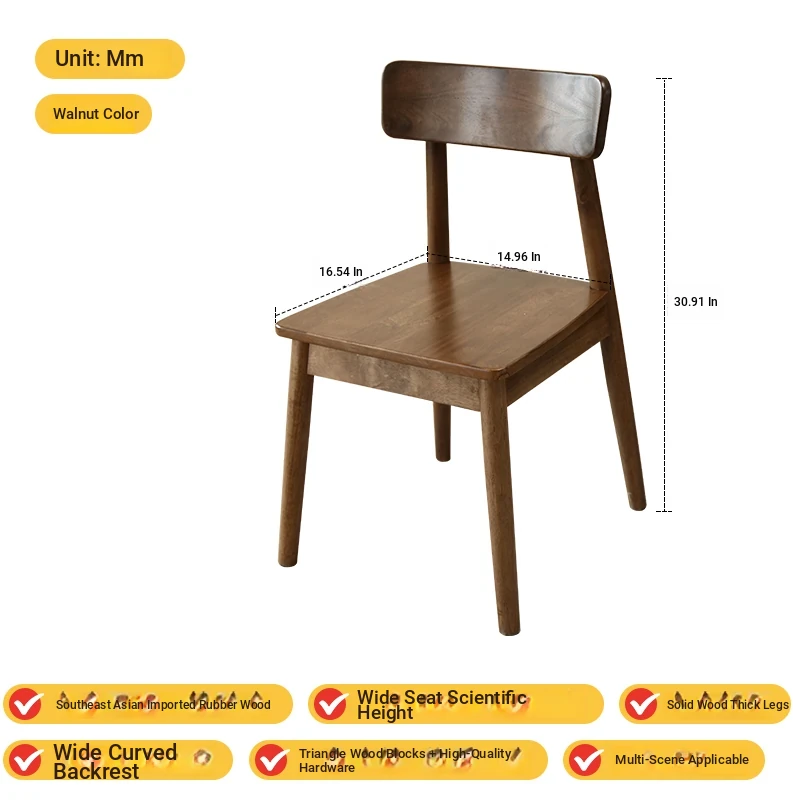 Elegant Solid Wood Dining Chair - Comfortable Backrest for Home Use, Versatile Dining and Study Stool, Minimalist Design with Natural Wood Finish, Perfect for Dining Tables and Relaxing Spaces.