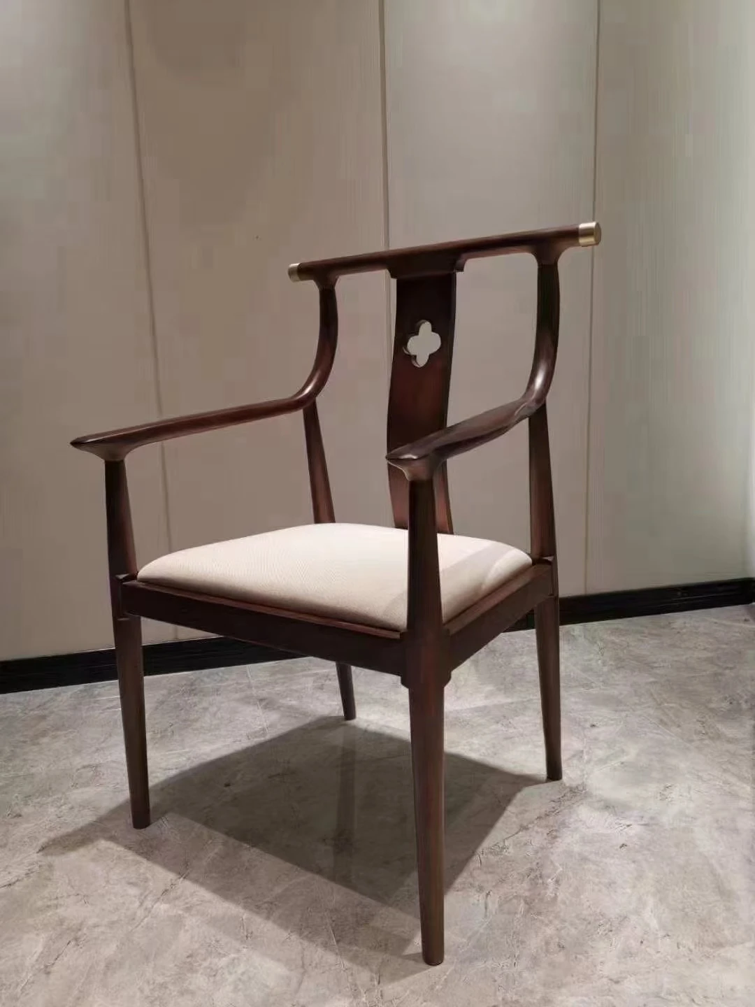 高級感溢れる新中式デザインの無垢材ダイニングチェア!別荘やレストラン、ホテルにぴったりなアームチェア。民宿や会所、お茶室、モデルルームにも最適。あなたの空間を上質に演出します!