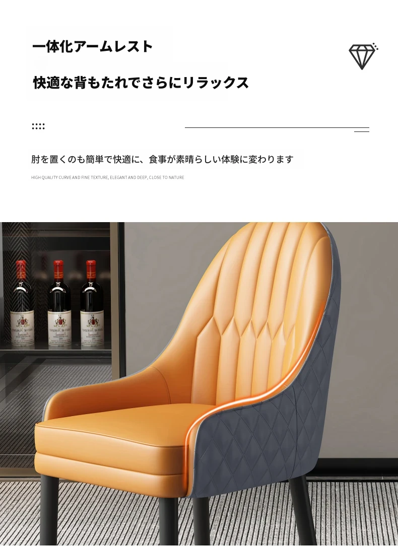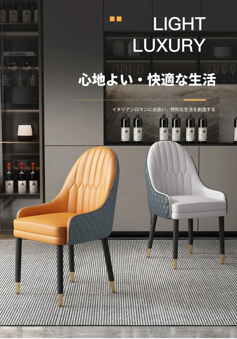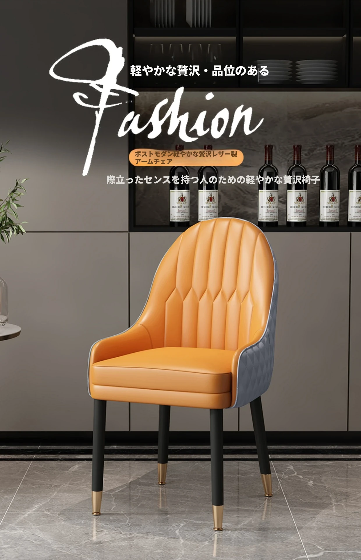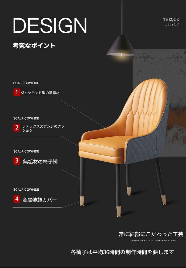 北欧風の軽奢実木ダイニングチェア|家庭用・リラックス・麻雀用にも最適|ホテルやレストランにもぴったり|高級牛革の背もたれで快適さを追求した一品