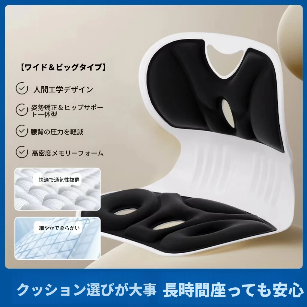 ブラック【三日月型OPP袋入り】一体型腰サポート椅子