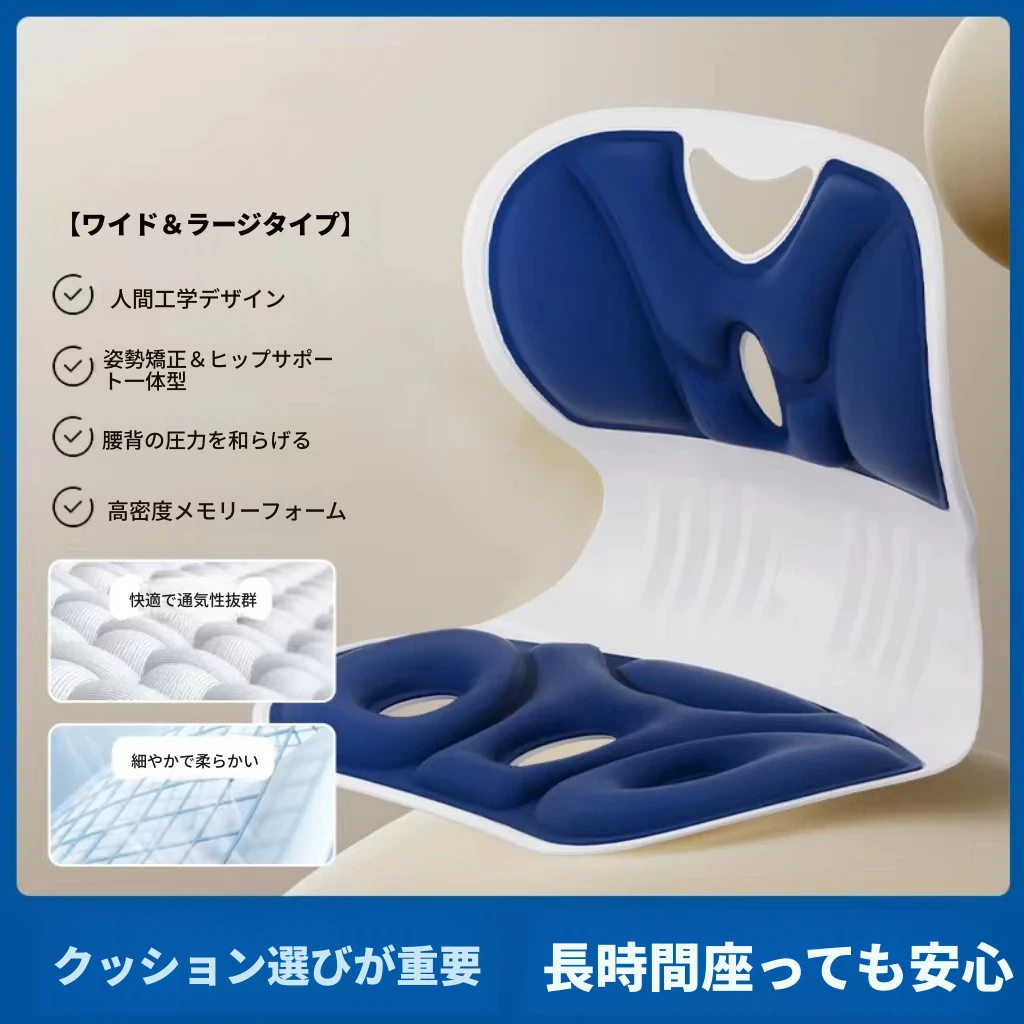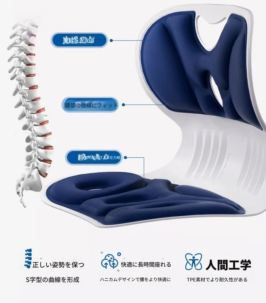 ブルー【三日月型OPP袋入り】一体型腰サポート椅子