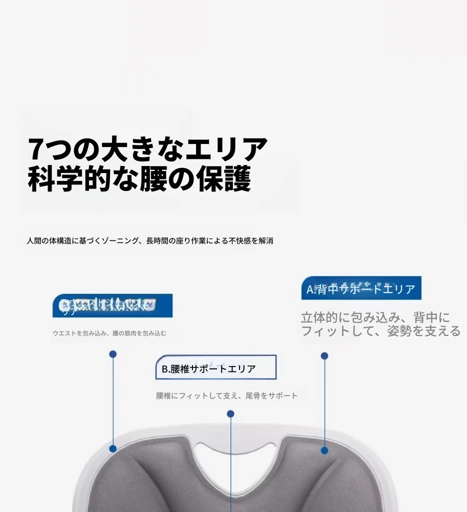 グレー【三日月型OPP袋入り】一体型腰サポート椅子