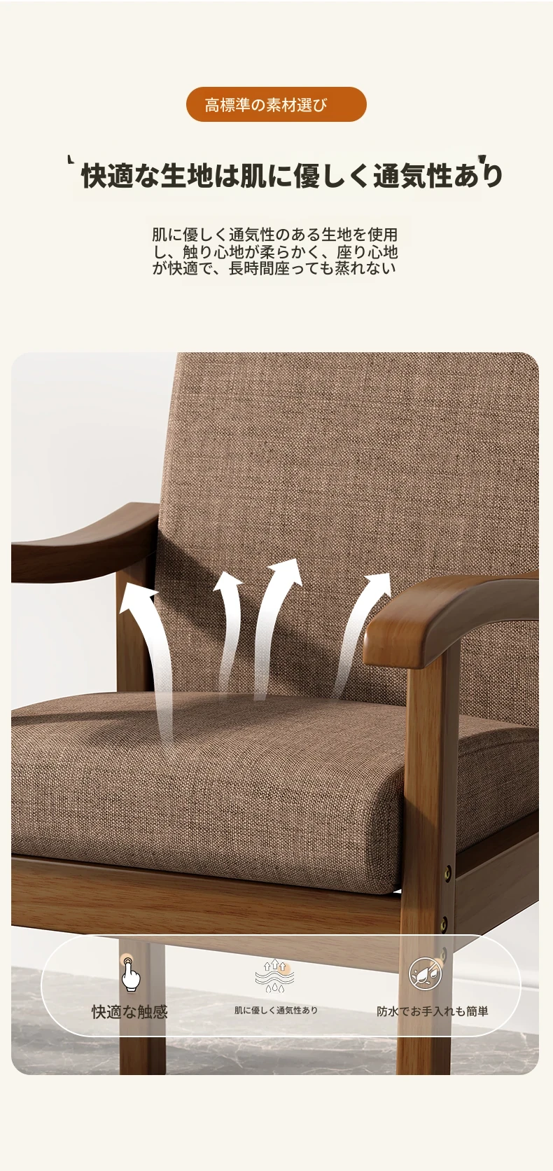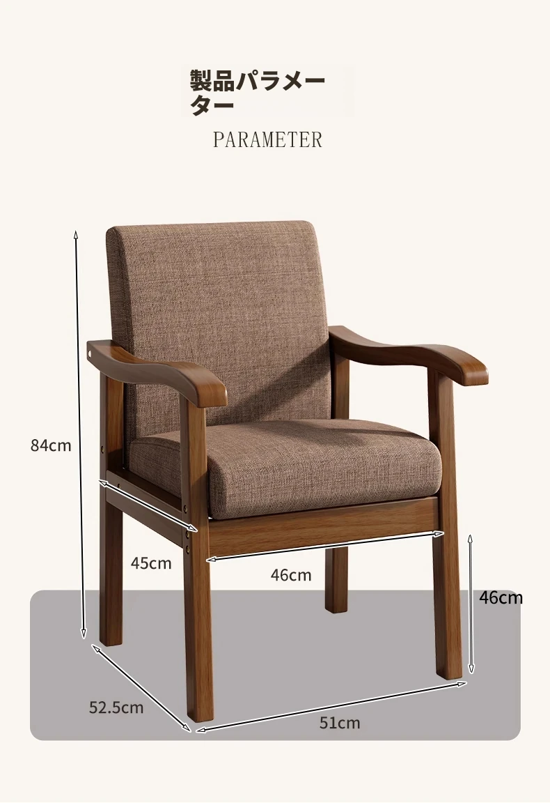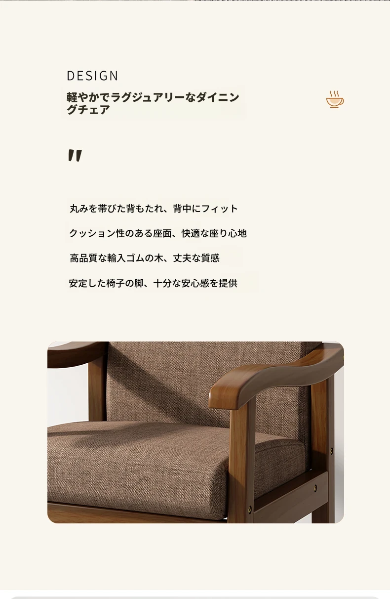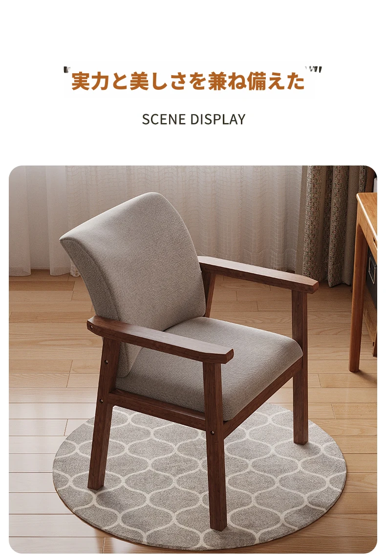 天然木製の背もたれ付き椅子|書斎・ダイニング・リビングに最適|長時間座っても疲れない|快適な学習・仕事環境を提供する、優れたデザインのアームチェア!