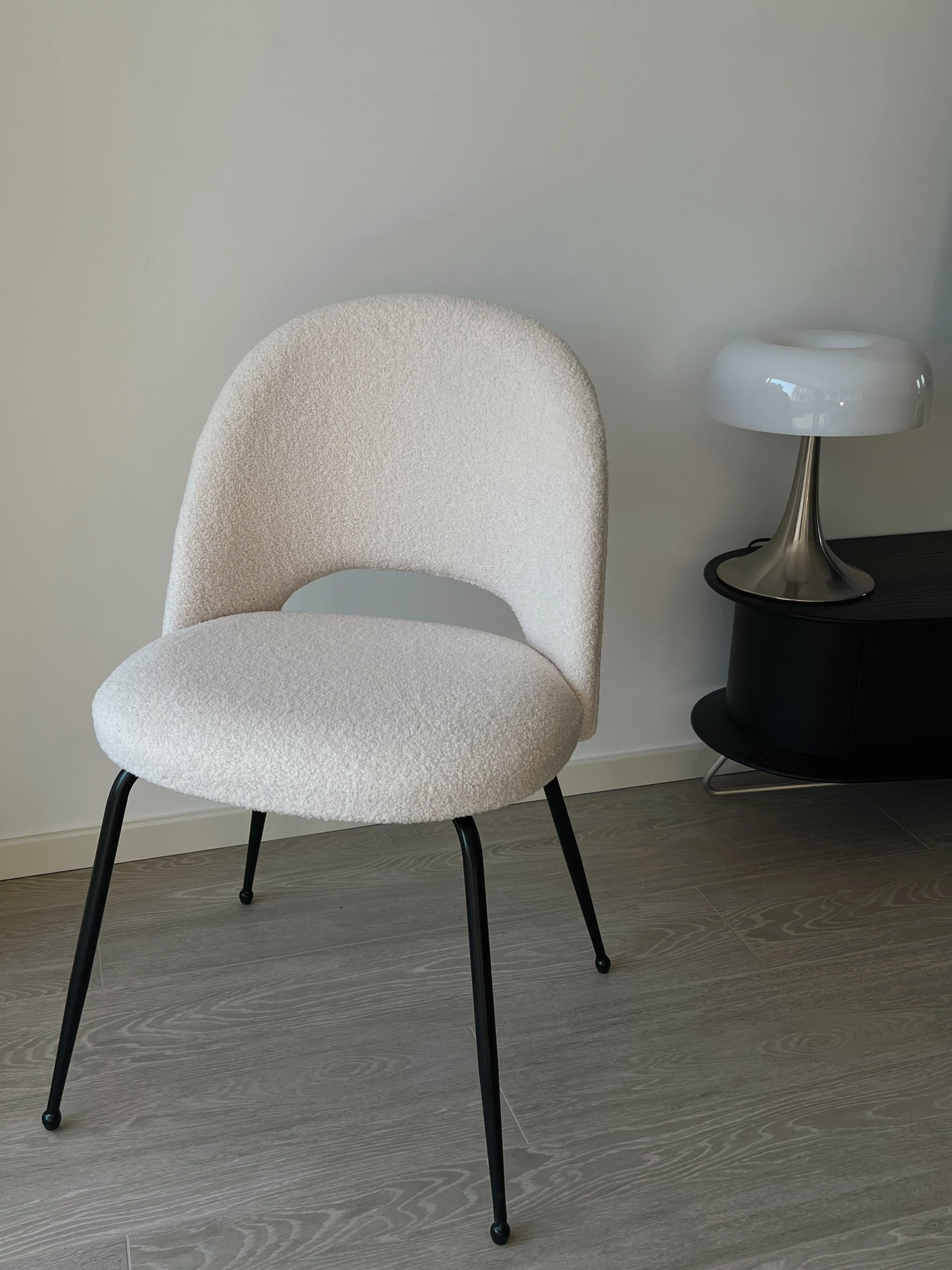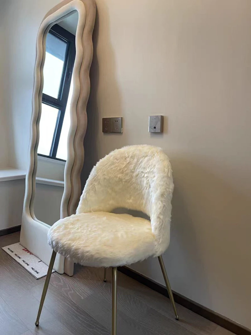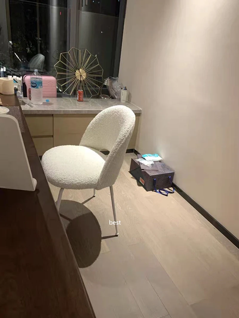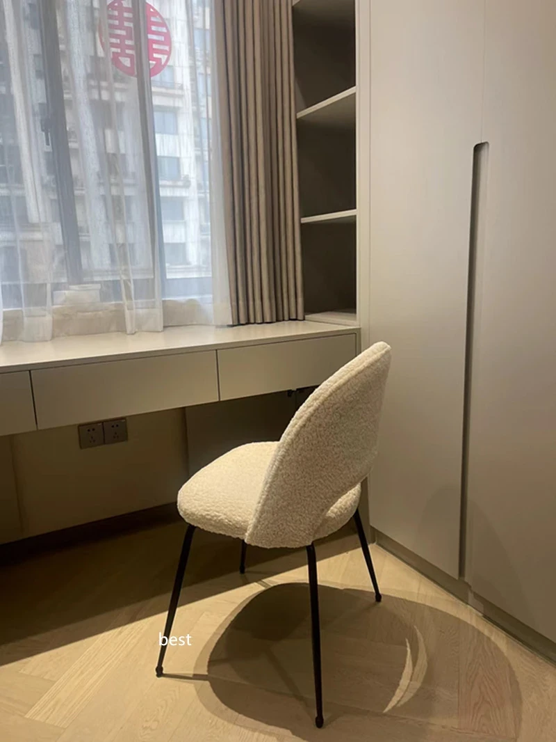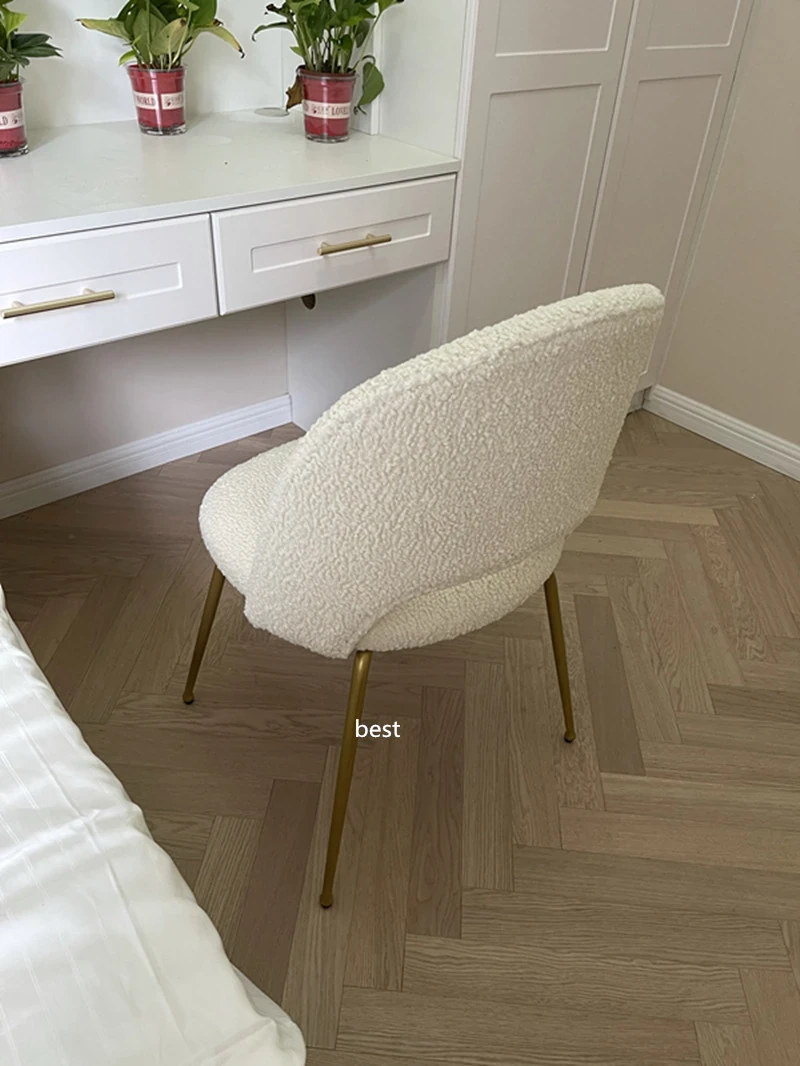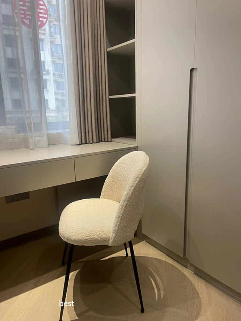 工場直販!軽やかな北欧スタイルのラグジュアリーなラムウールファブリック使用。小さなスペースにぴったりな化粧椅子や寝室・ダイニング用のチェア。快適さとデザイン性を兼ね備えた一品!