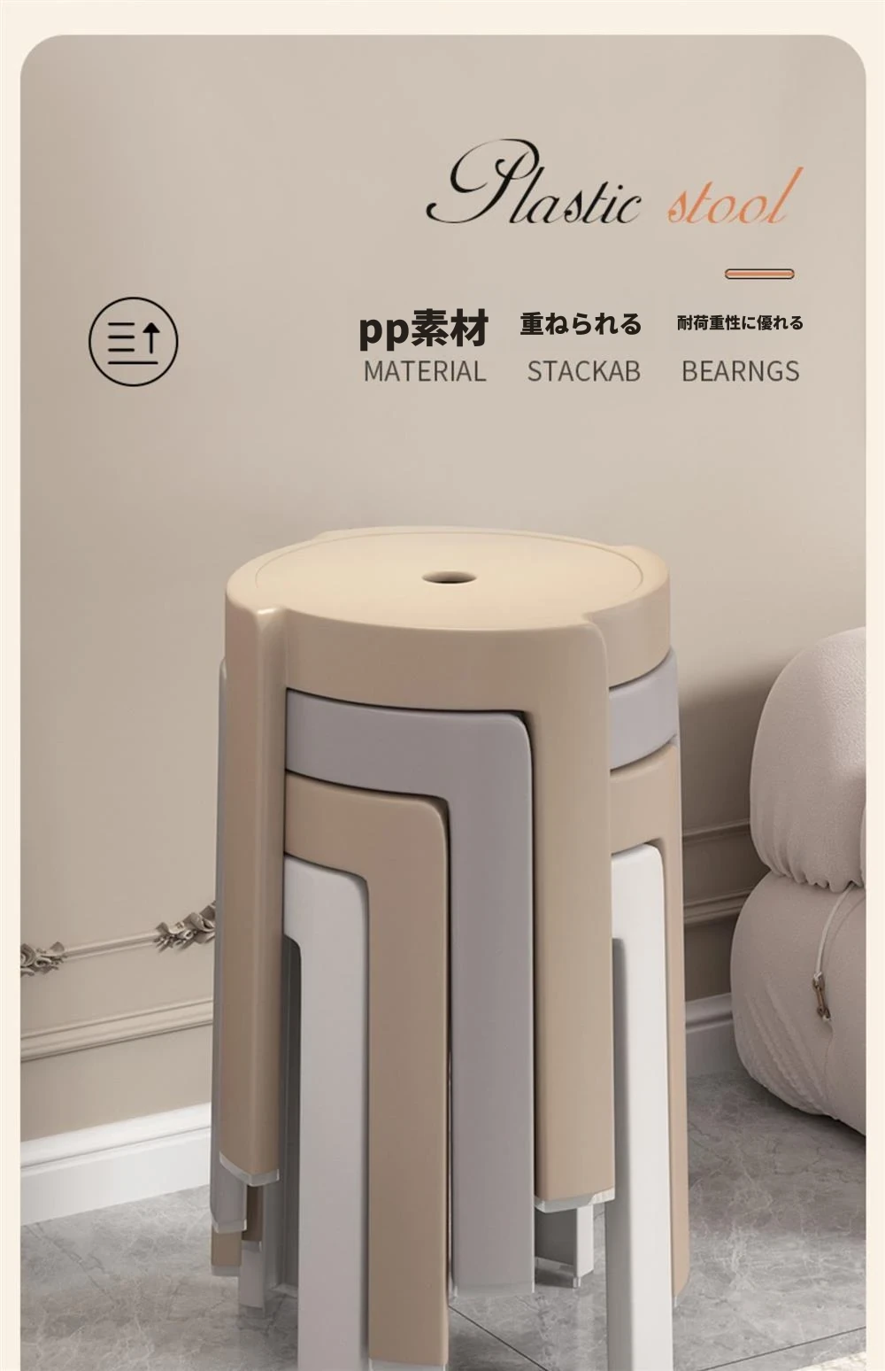 日本直輸入MUJIE厚底スタッキングチェア|シンプルでモダンなデザイン、家庭やダイニングテーブルにぴったり!おしゃれで使いやすい、どんなインテリアにも合わせやすい一品です。