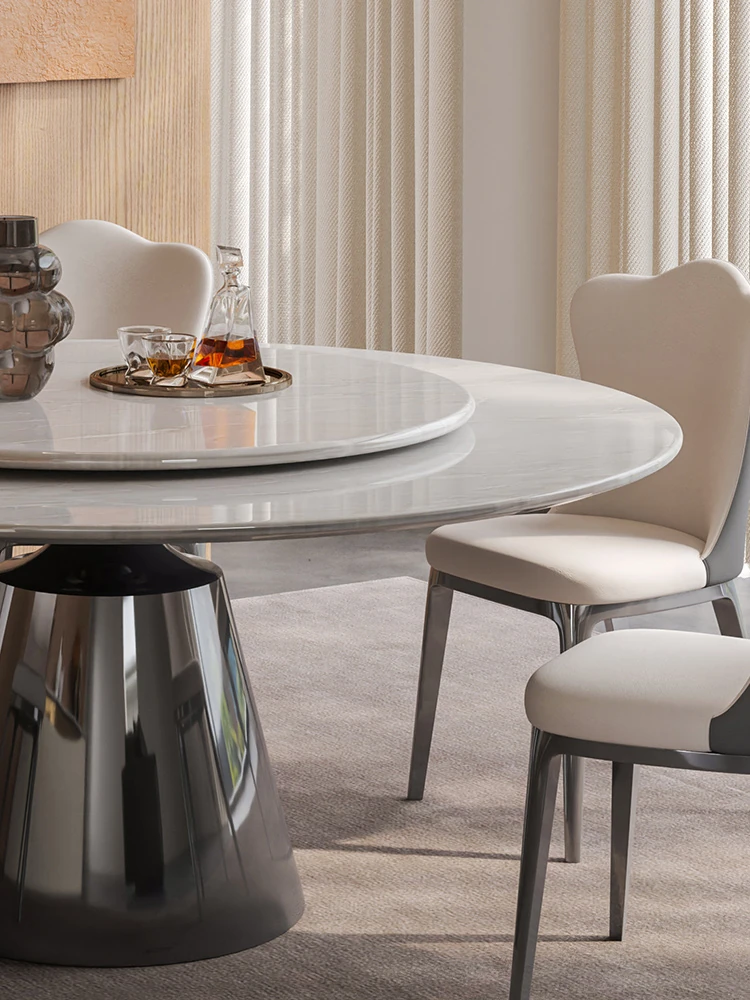 ヴェネツィアブラウン・天然ラグジュアリーストーン円形ダイニングテーブル+雲朵本革ダイニングチェア*4