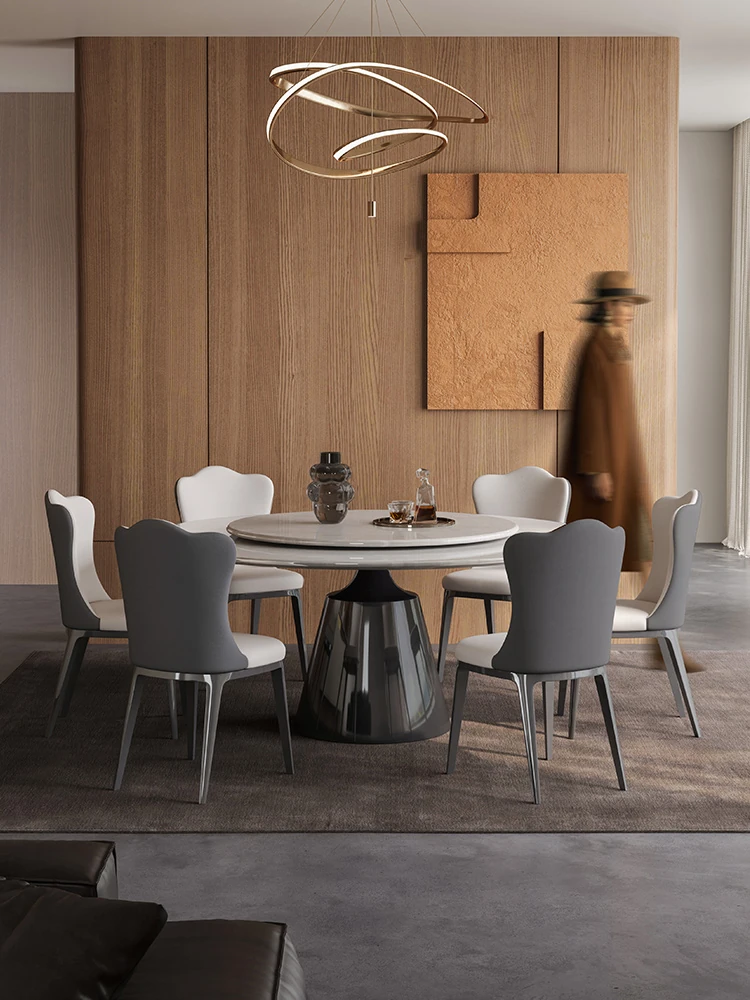 ヴェネツィアブラウン・天然ラグジュアリーストーン円形ダイニングテーブル+雲朵本革ダイニングチェア*8