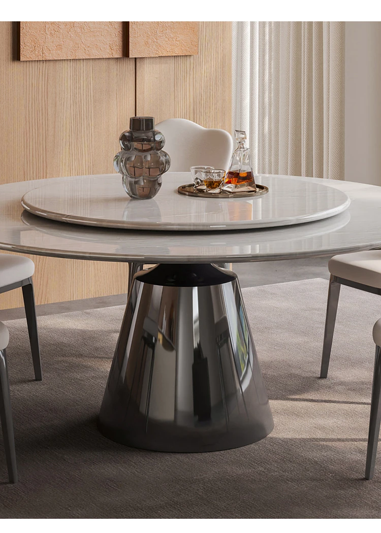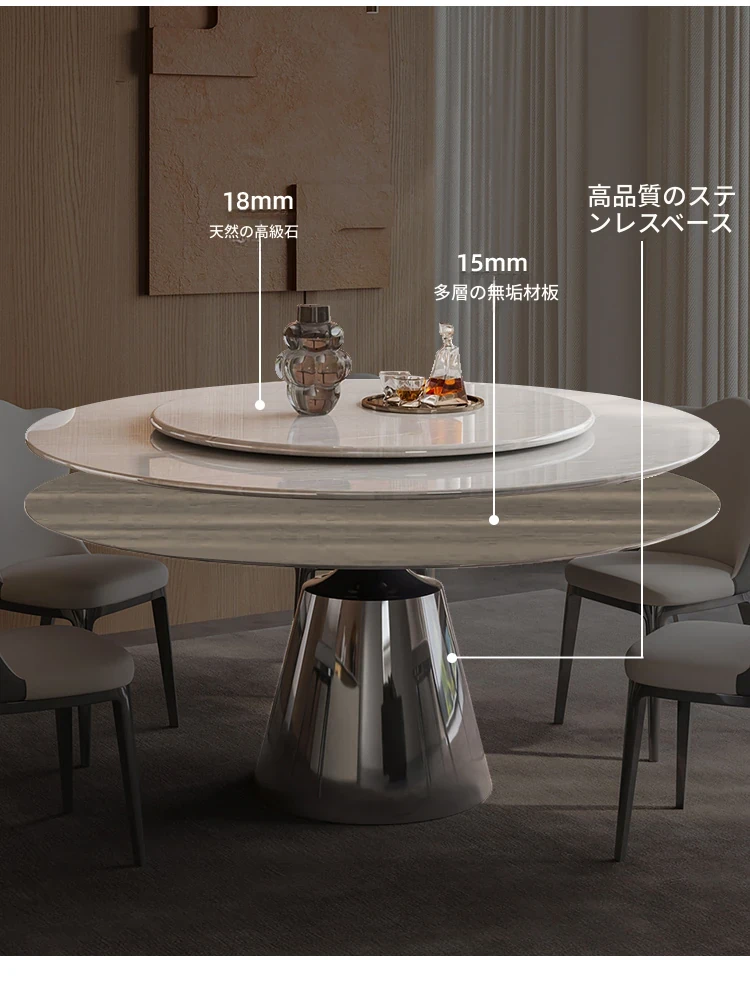 ヴェネツィアブラウン・天然ラグジュアリーストーン円形ダイニングテーブル【回転盤付き】