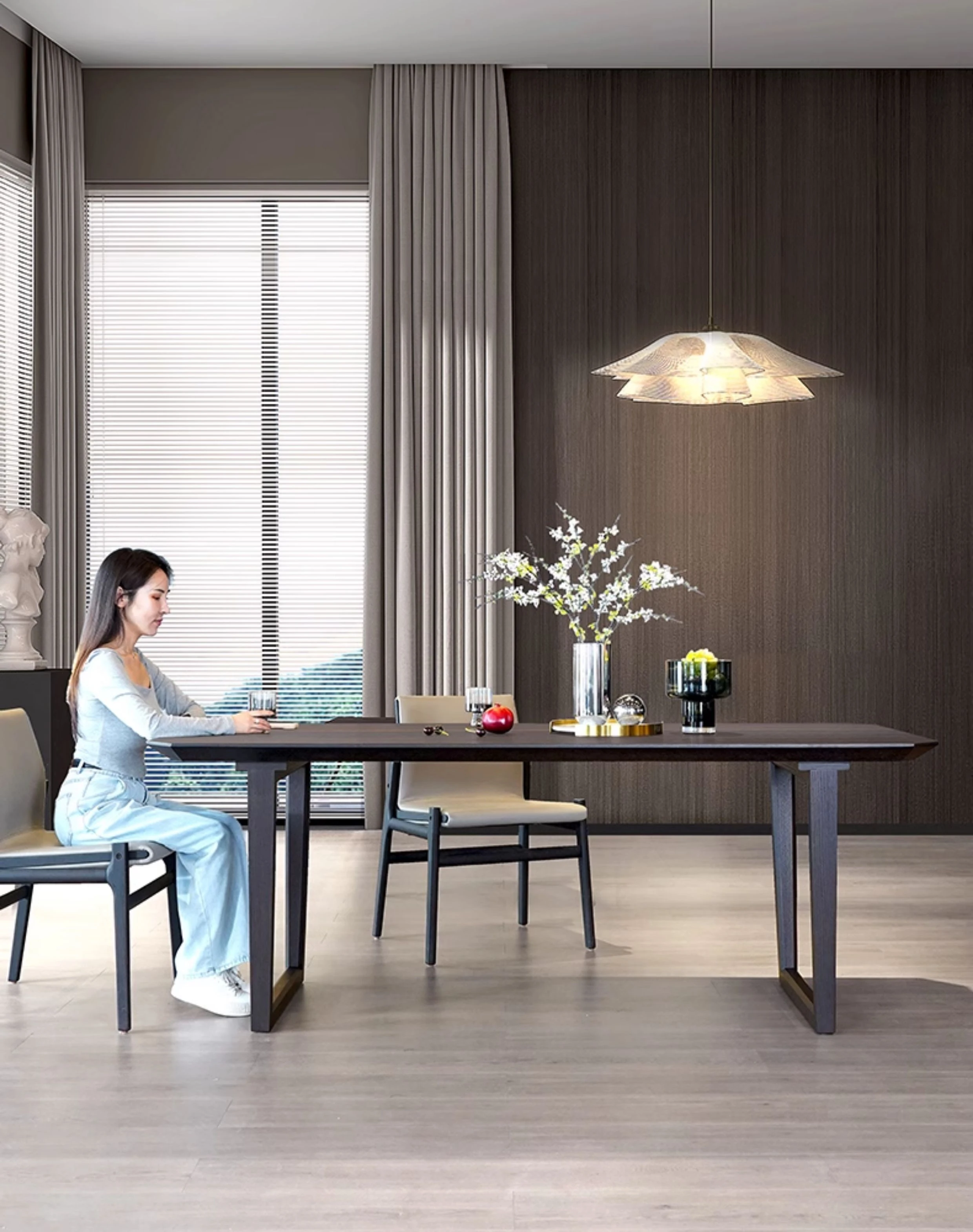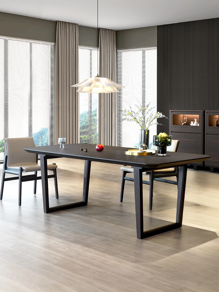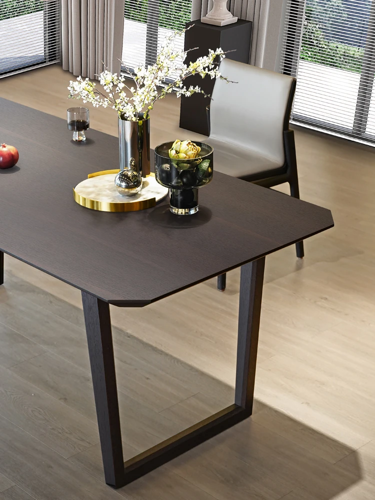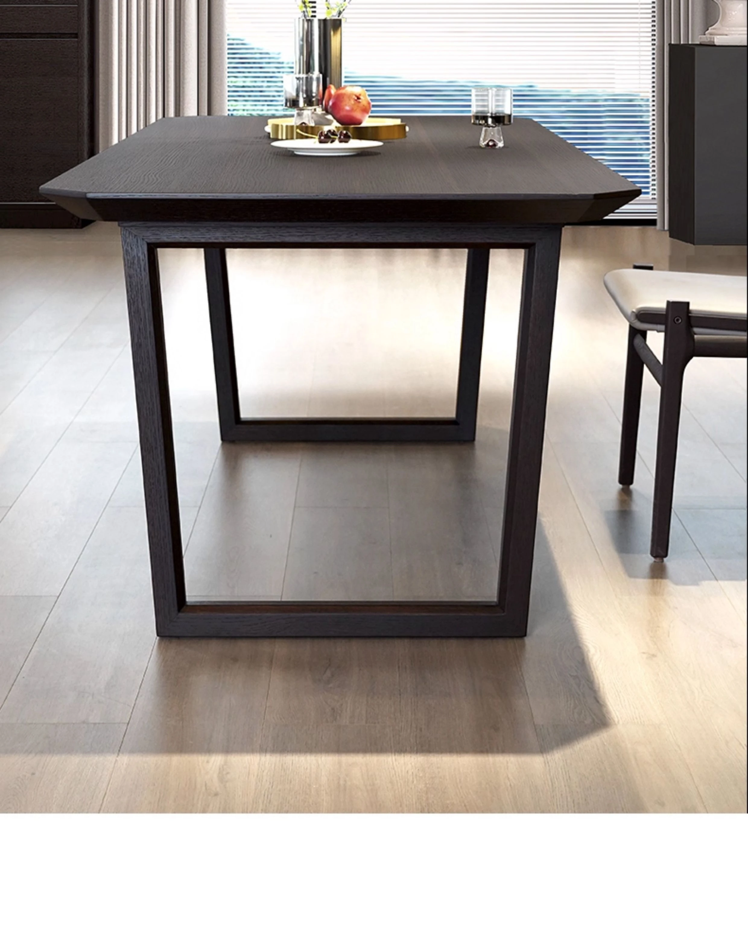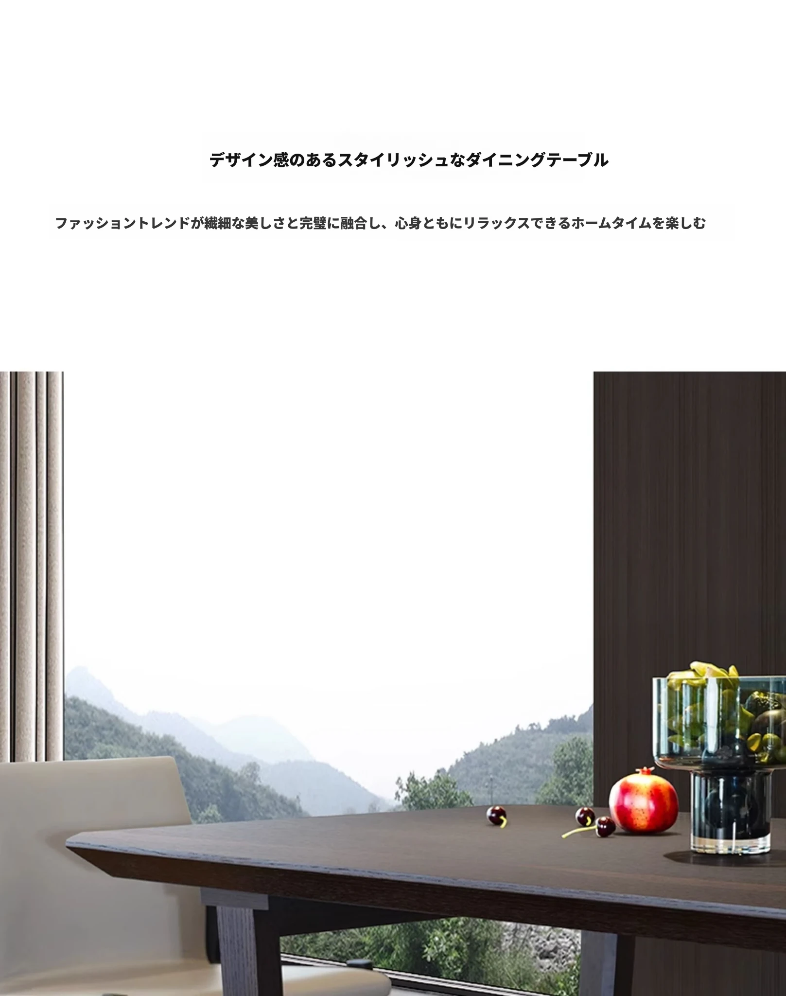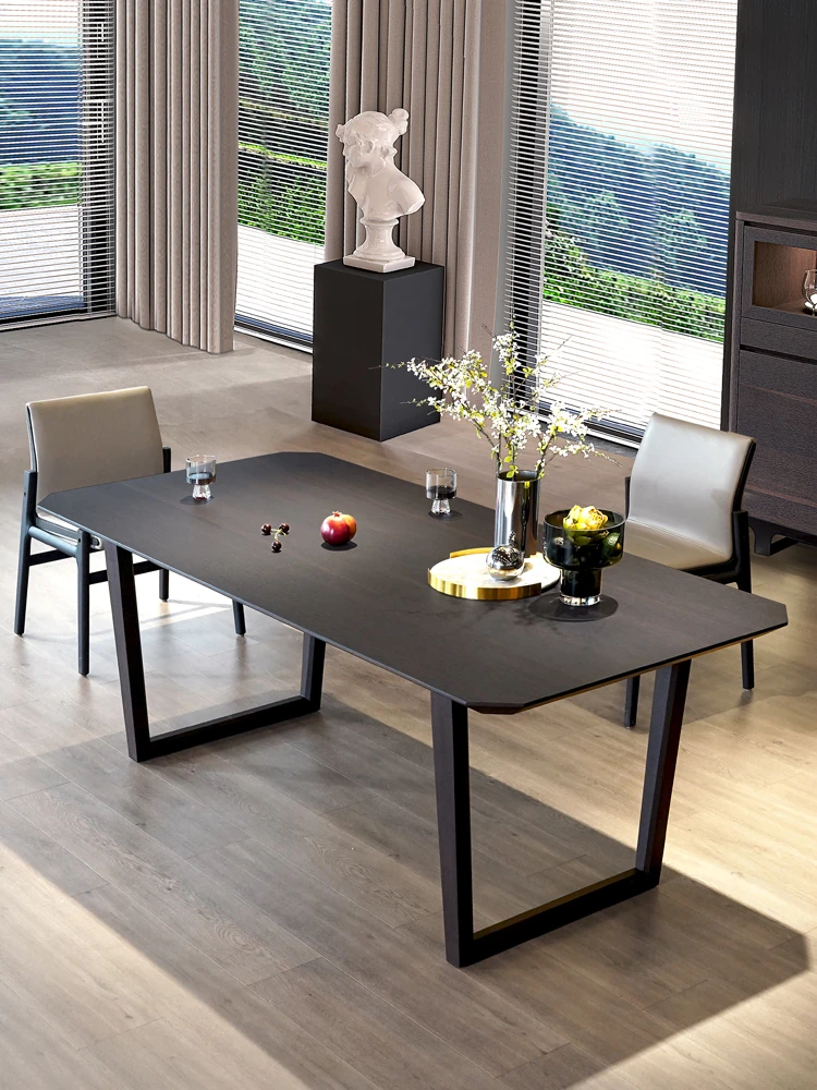 イタリアンミニマリストデザインのダイニングテーブルセット - シンプルで現代的な長方形テーブルと椅子の組み合わせ、小型住宅に最適なスタイリッシュな食卓。