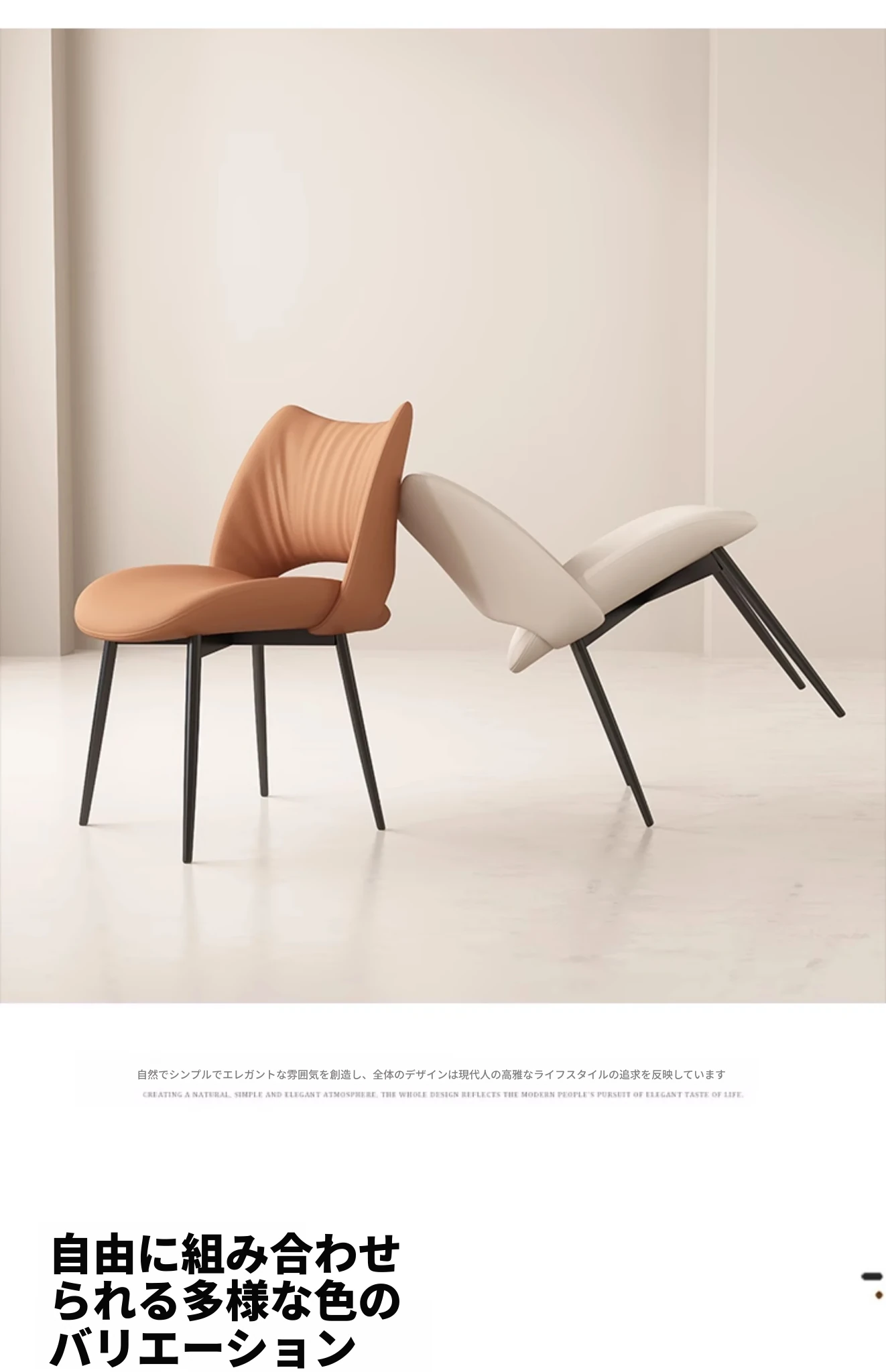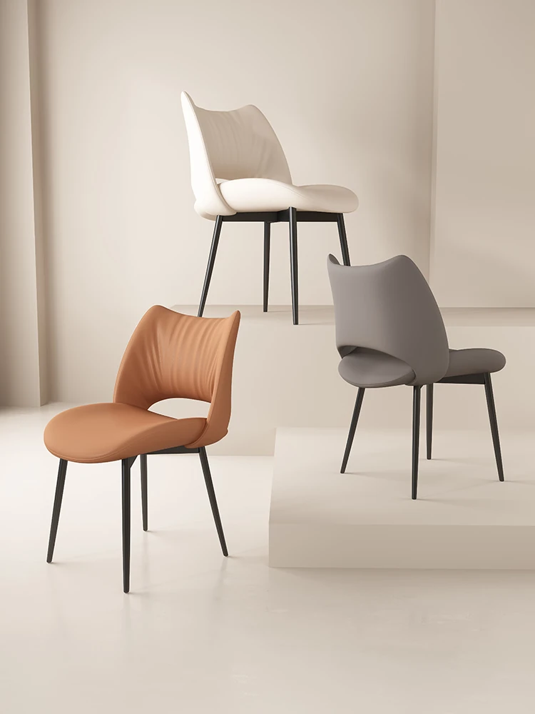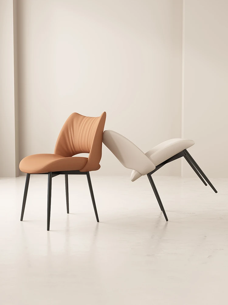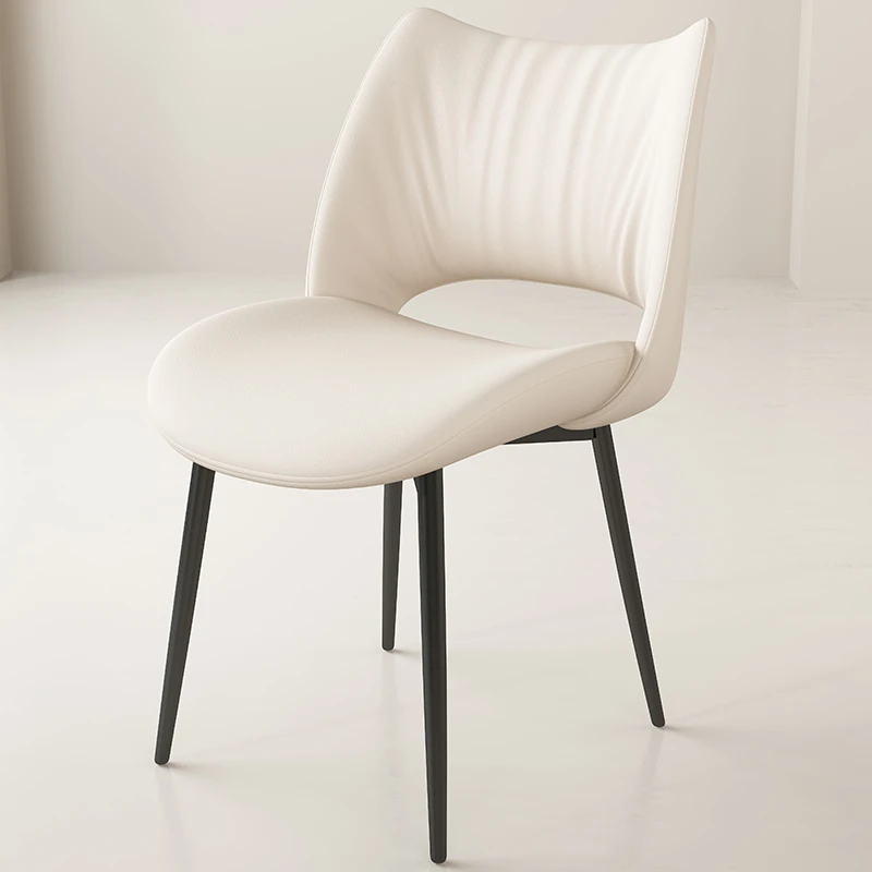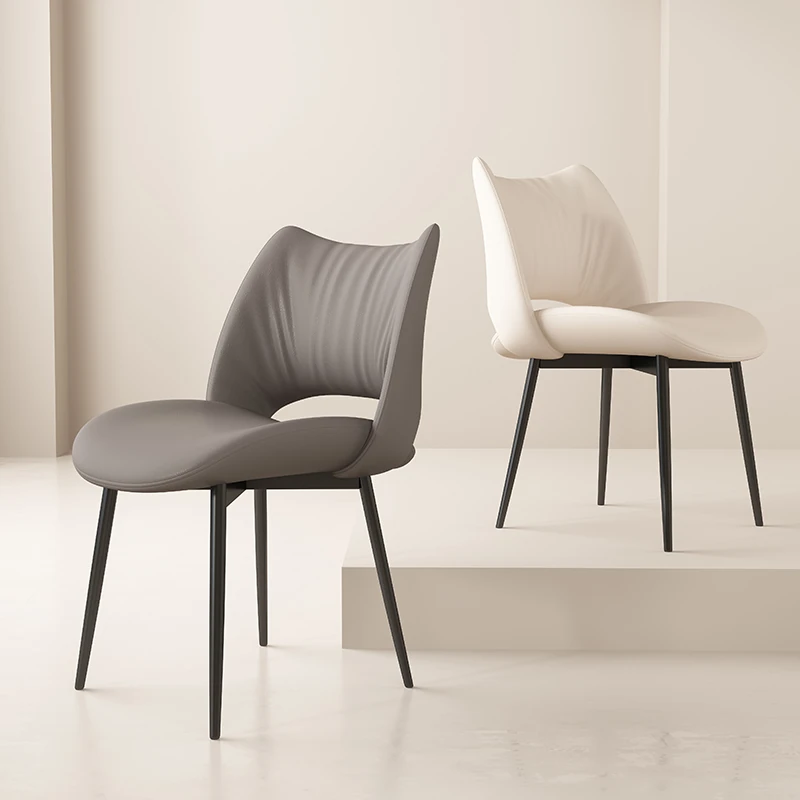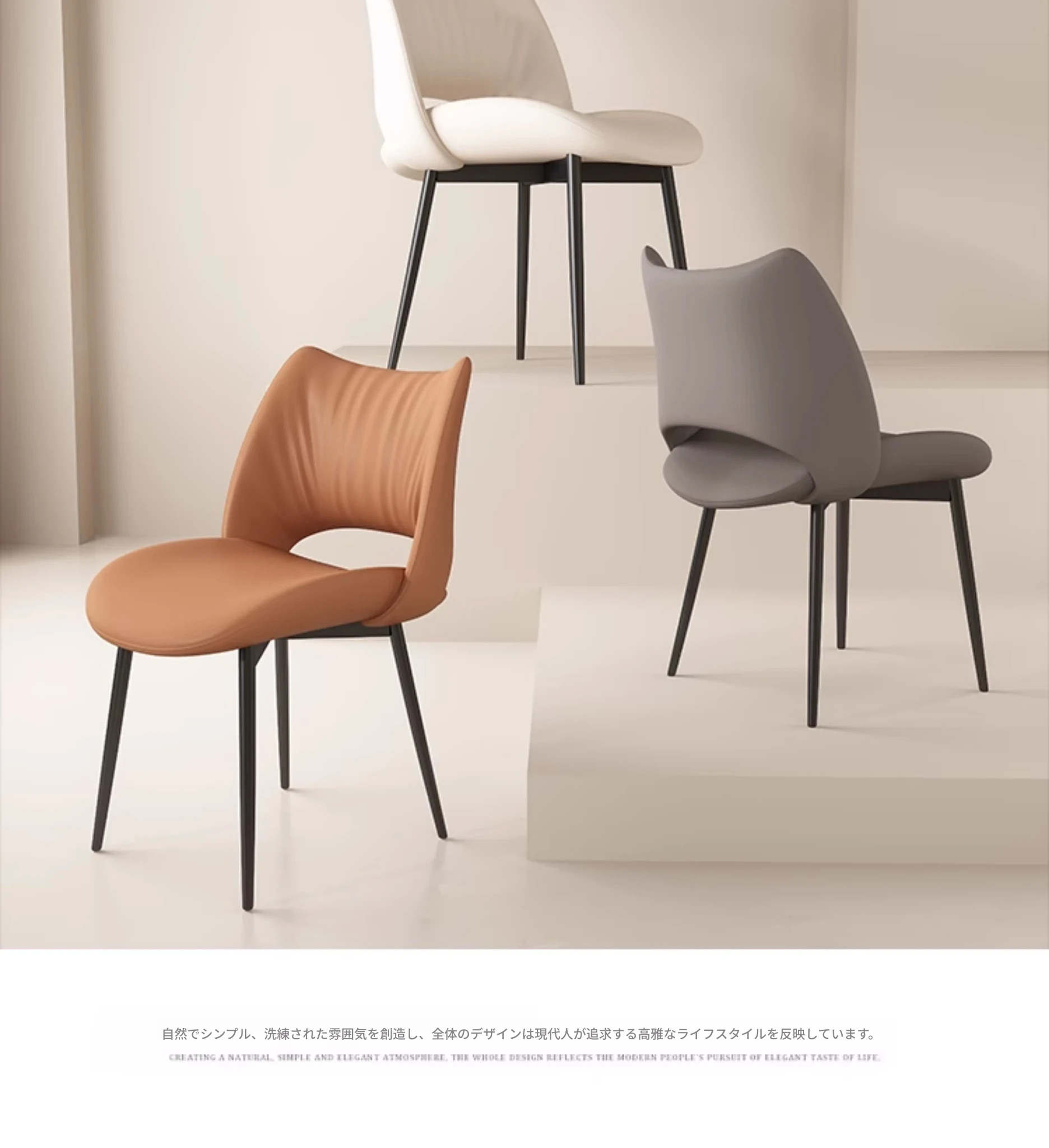 イタリアンミニマリストダイニングチェア|高級レザー使用|家庭やホテルに最適|洗練されたデザイン|クリーミーカラーの背もたれで優雅な空間を演出!