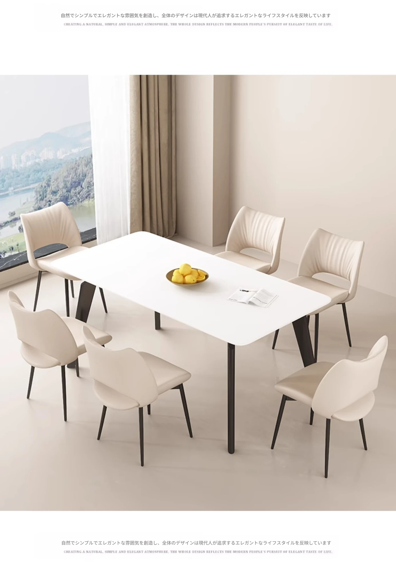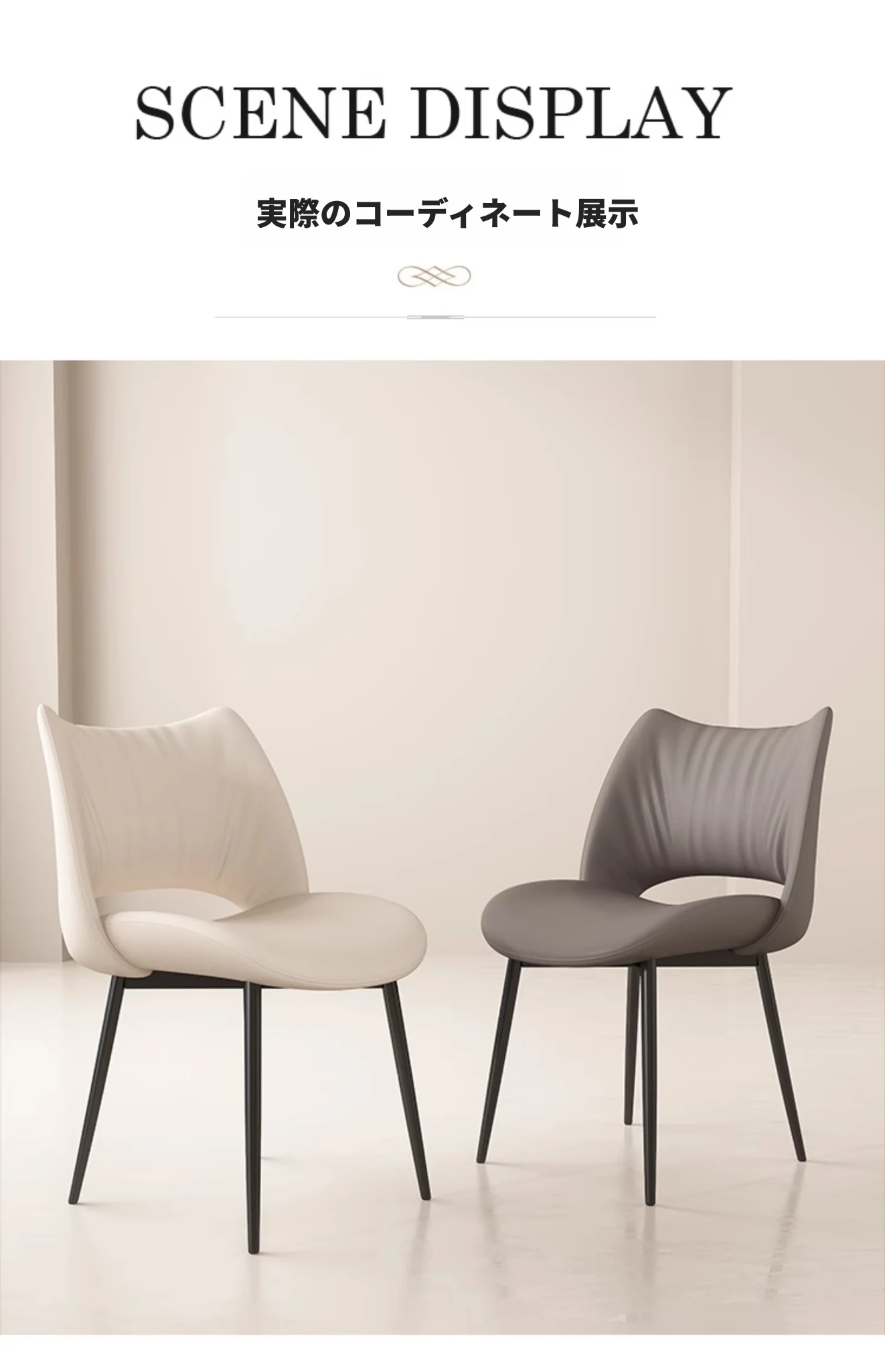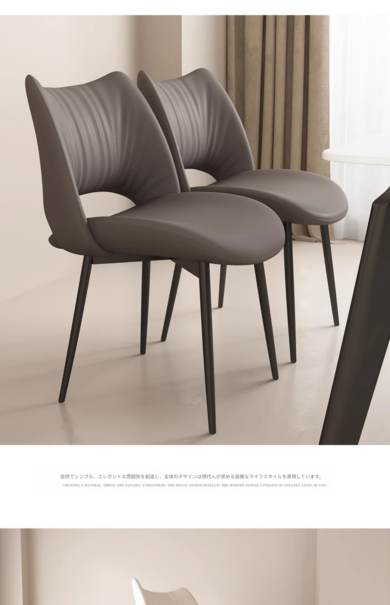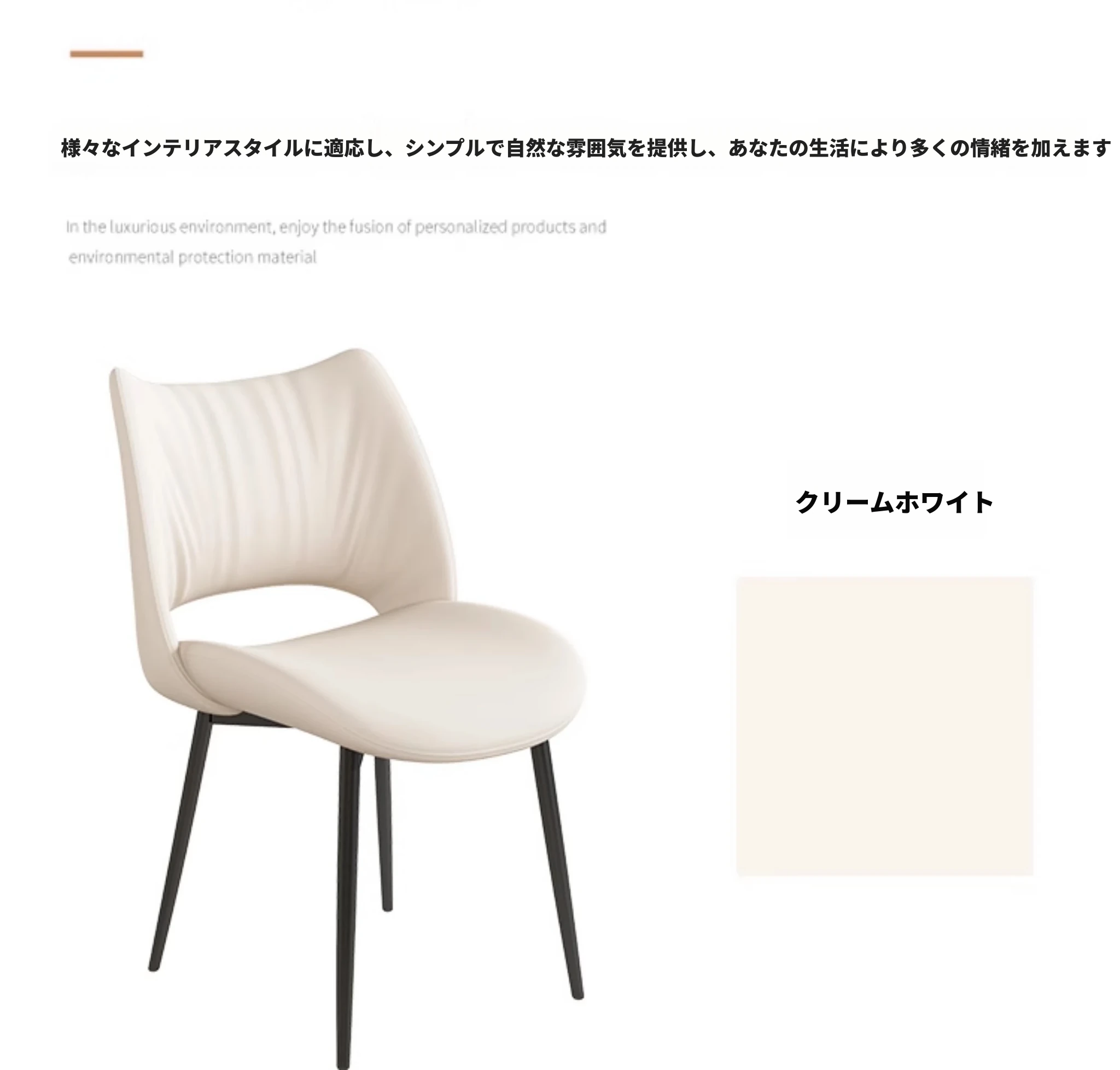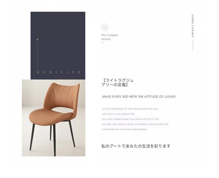 イタリアンミニマリストダイニングチェア|高級レザー使用|家庭やホテルに最適|洗練されたデザイン|クリーミーカラーの背もたれで優雅な空間を演出!
