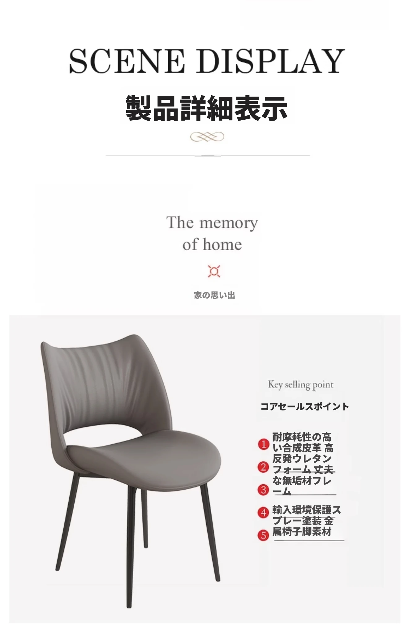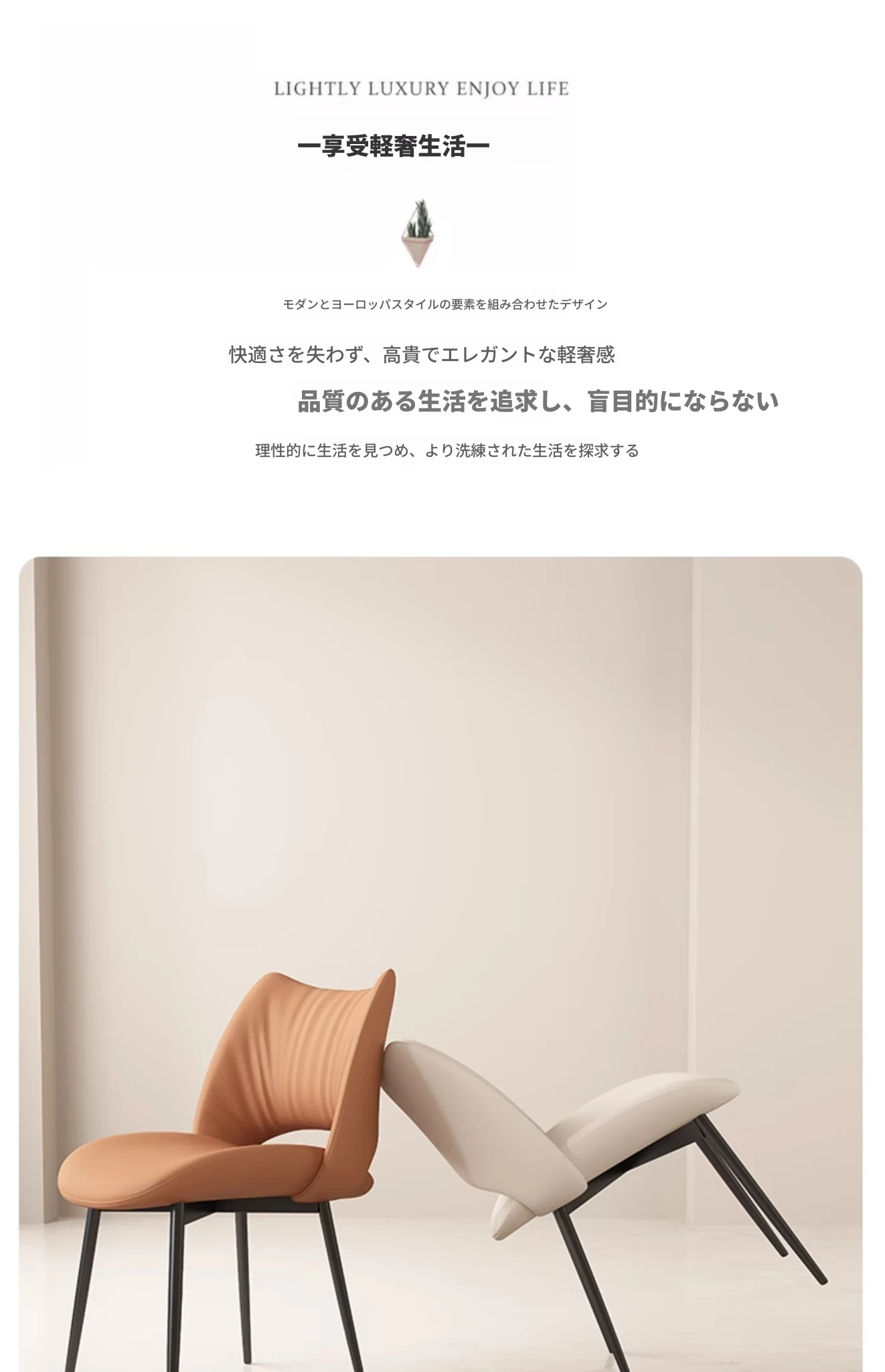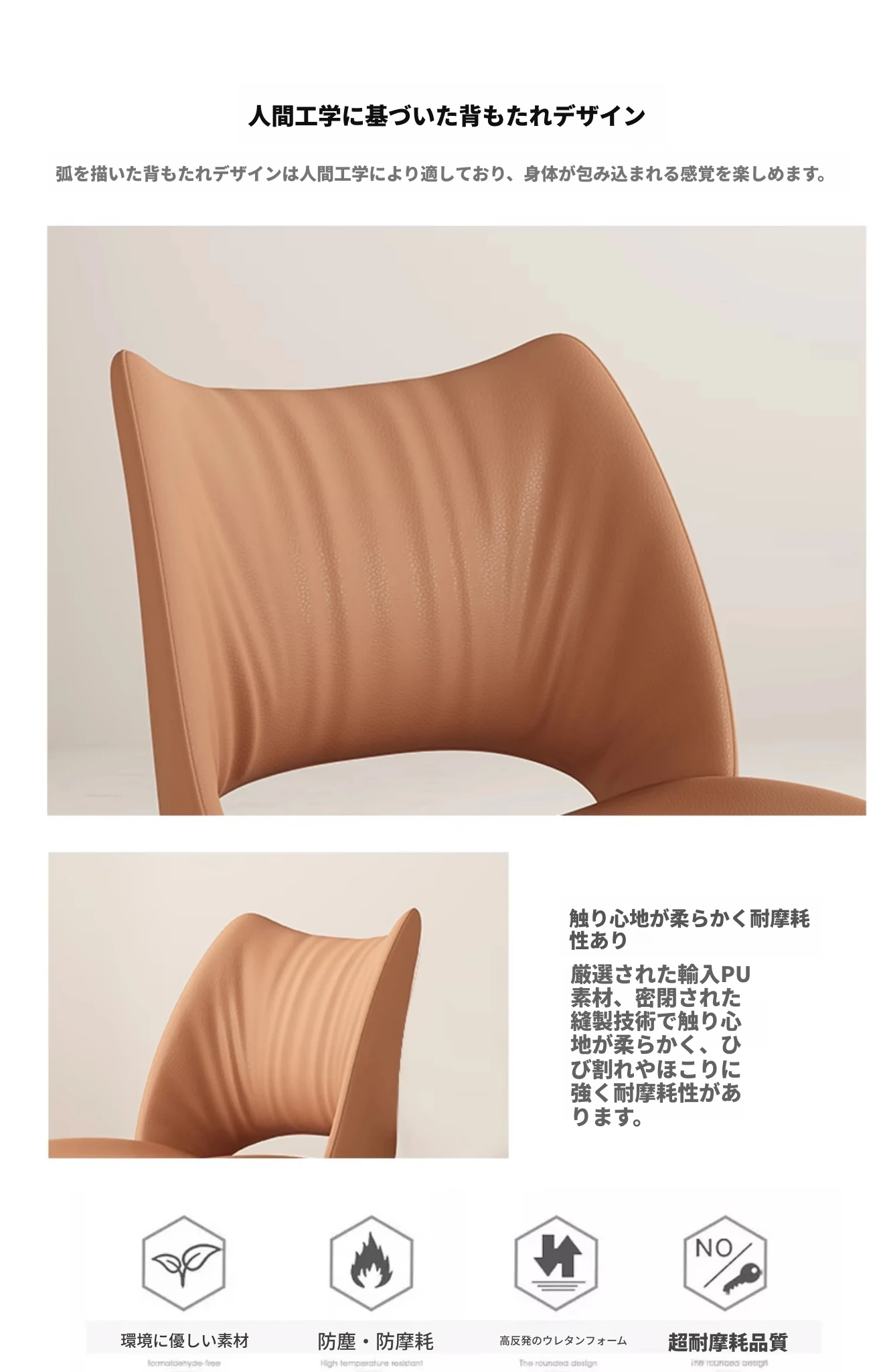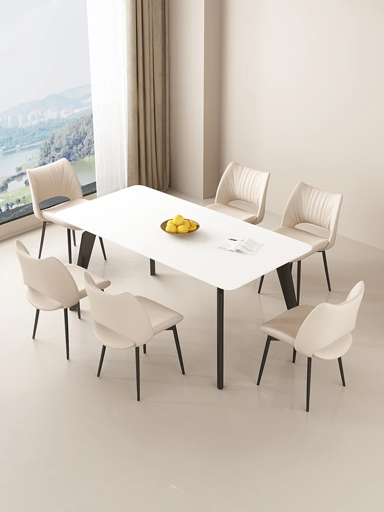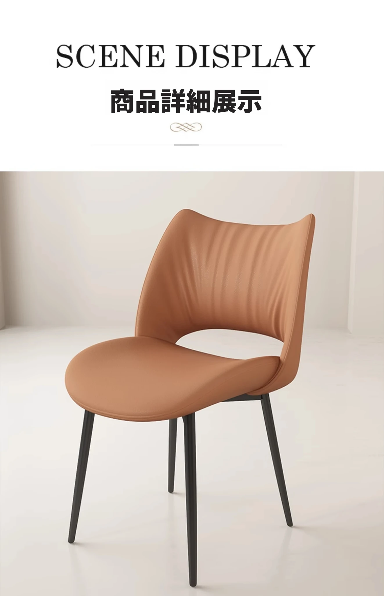 イタリアンミニマリストダイニングチェア|高級レザー使用|家庭やホテルに最適|洗練されたデザイン|クリーミーカラーの背もたれで優雅な空間を演出!